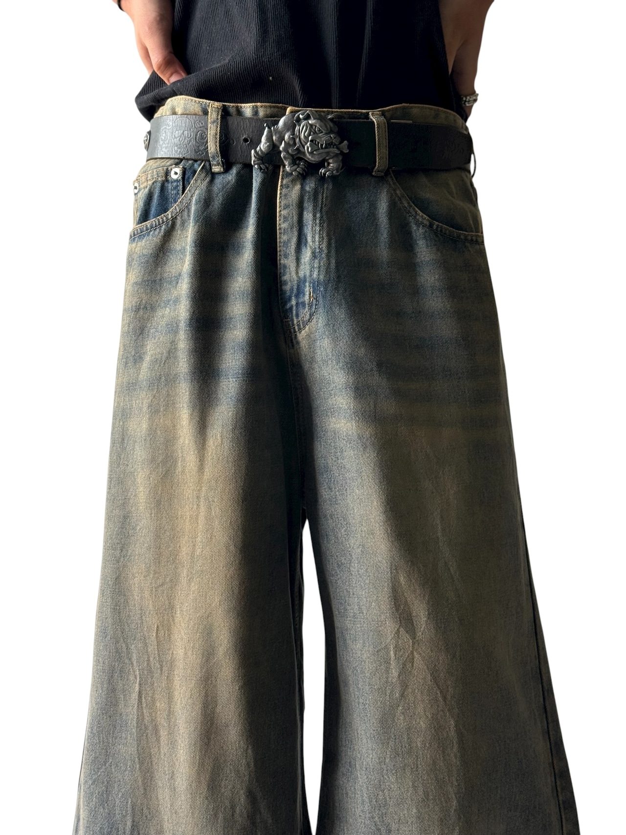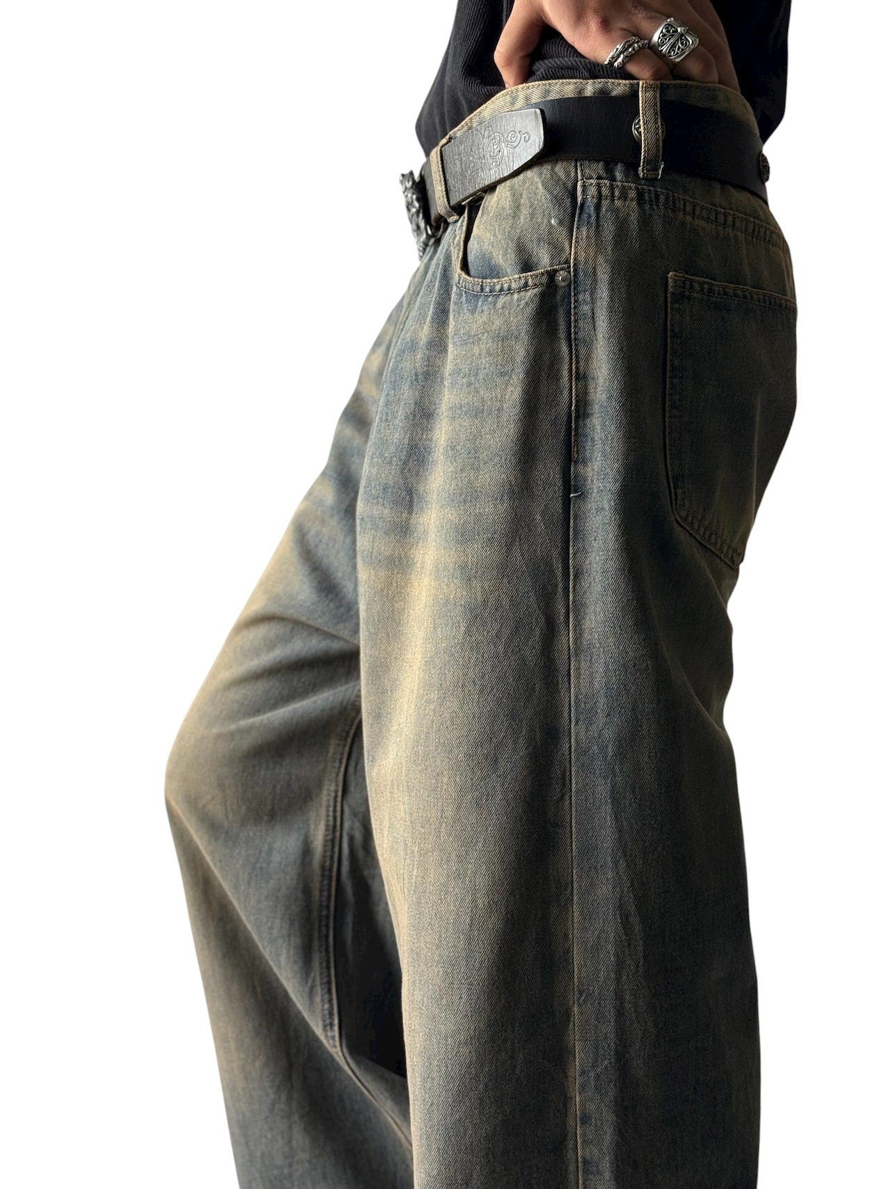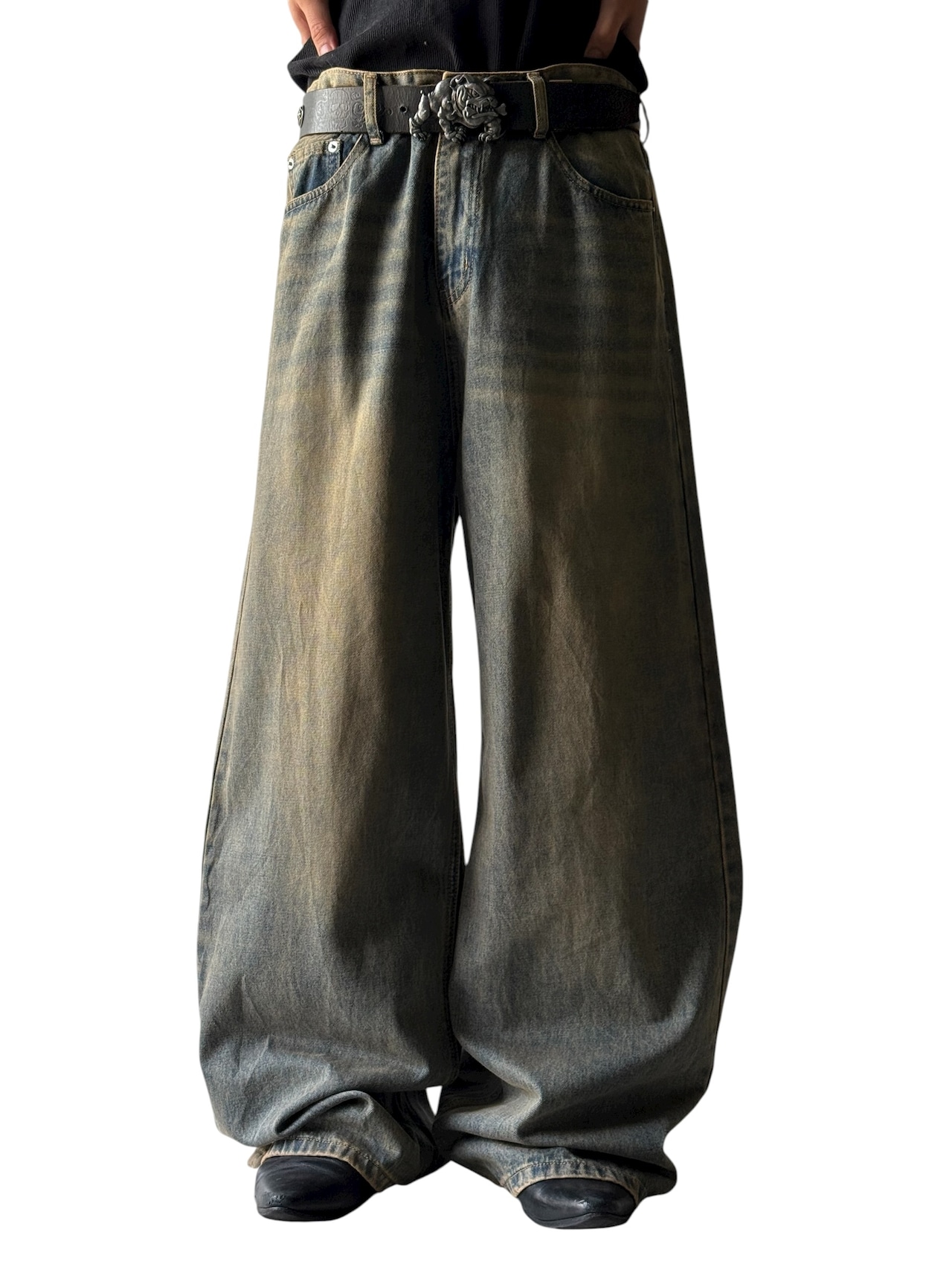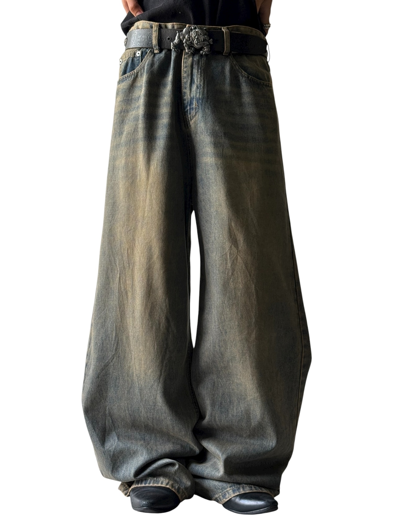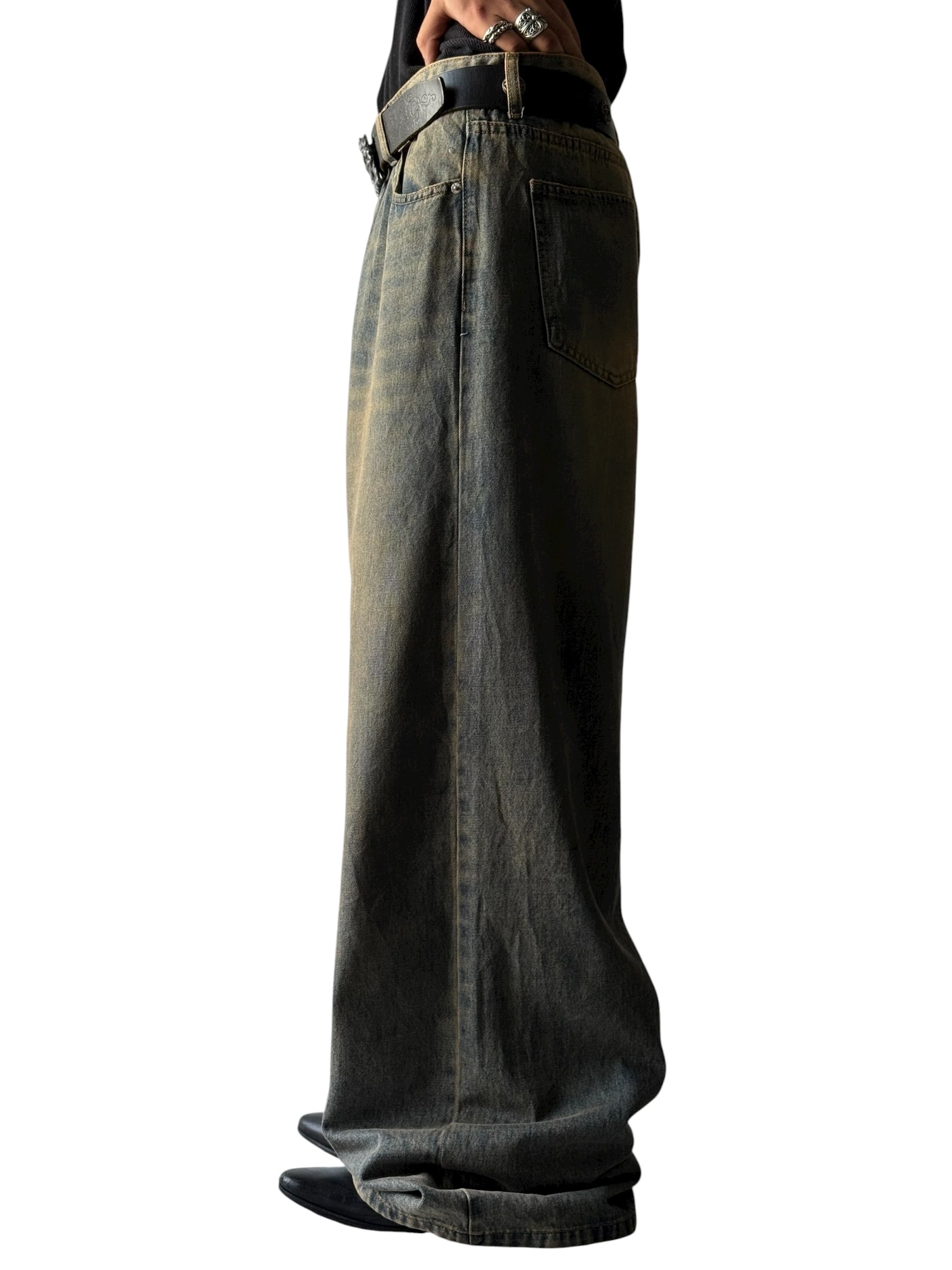 テーパード無しでズドンと落ちる太さと丈感が魅力のワイドレッグデニムパンツ‼️