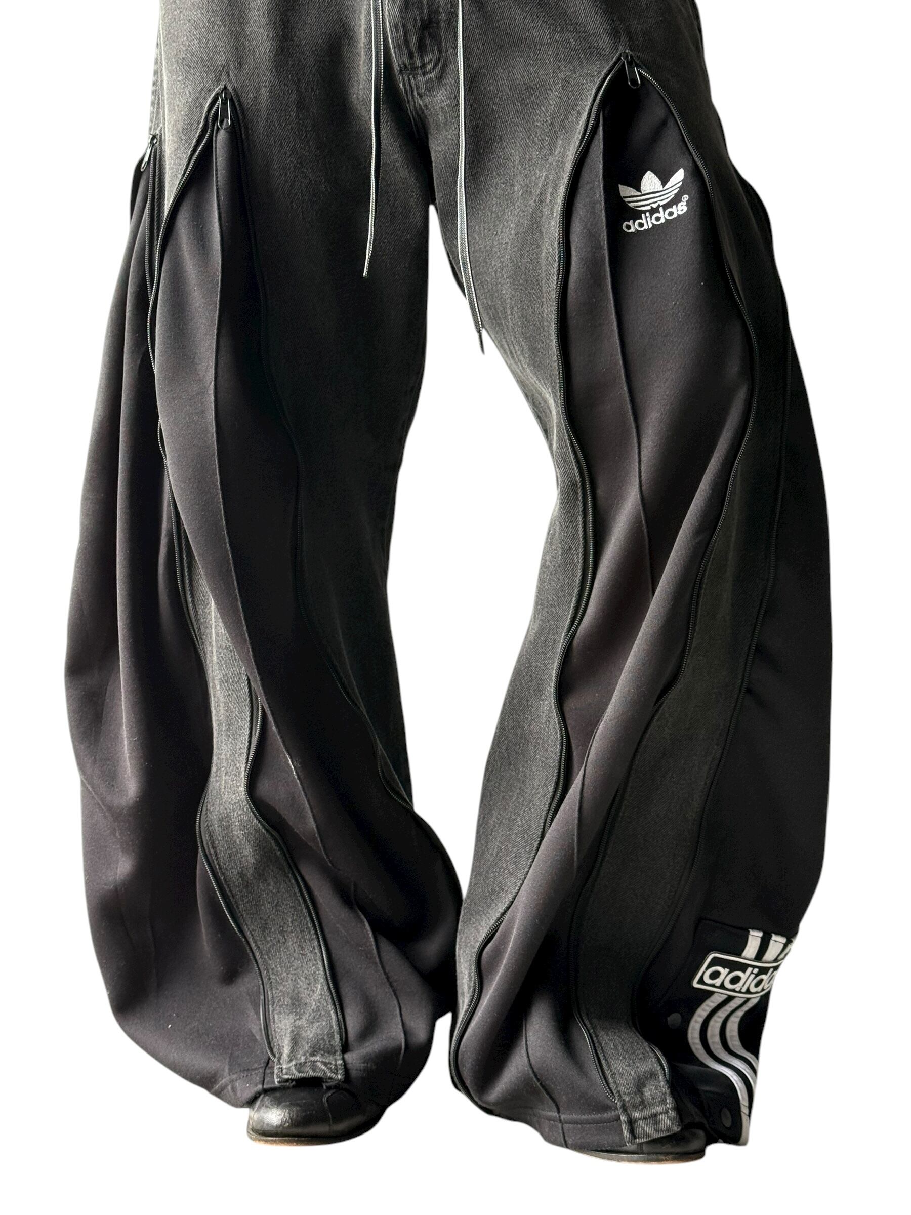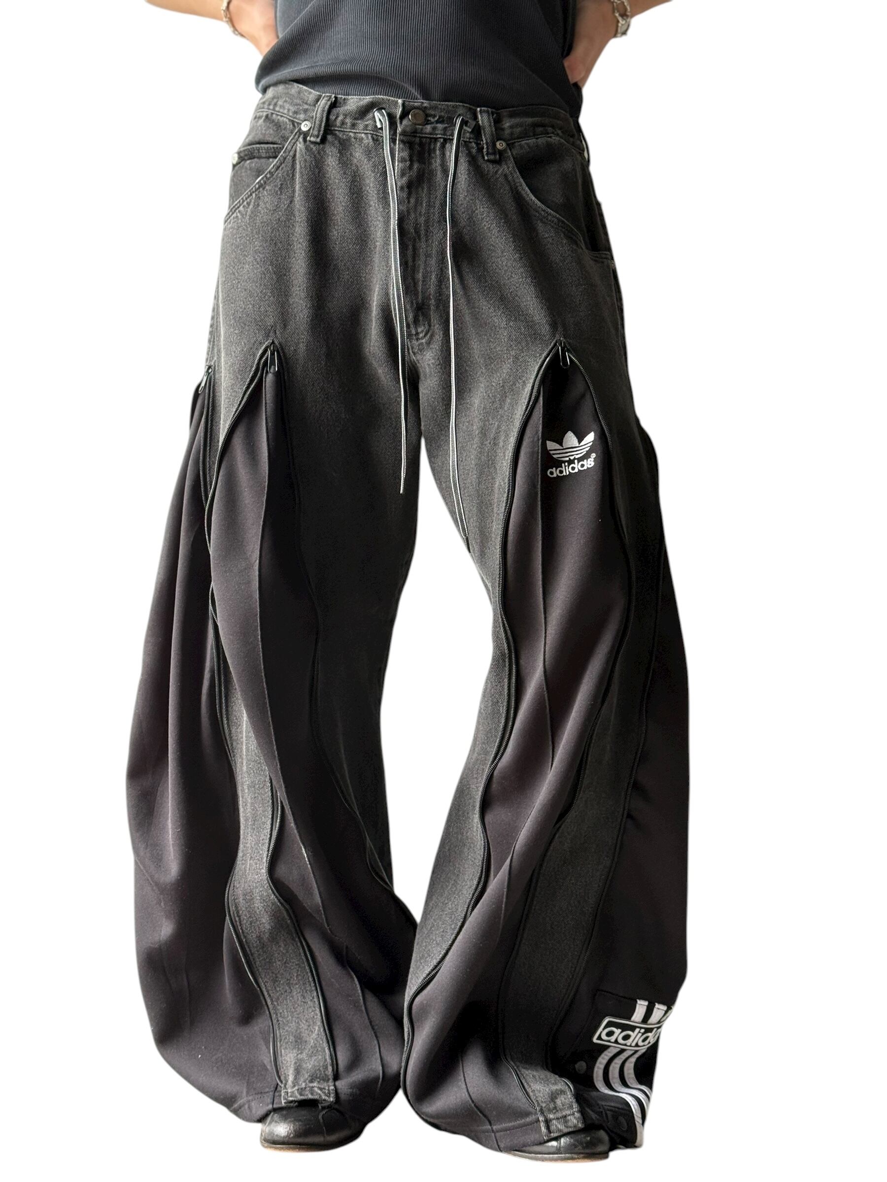 トラックパンツをドッキングさせた極上ワイドフレアシルエットに変貌を遂げたとてつもないカスタムデザインがめちゃくちゃ映える1本‼️