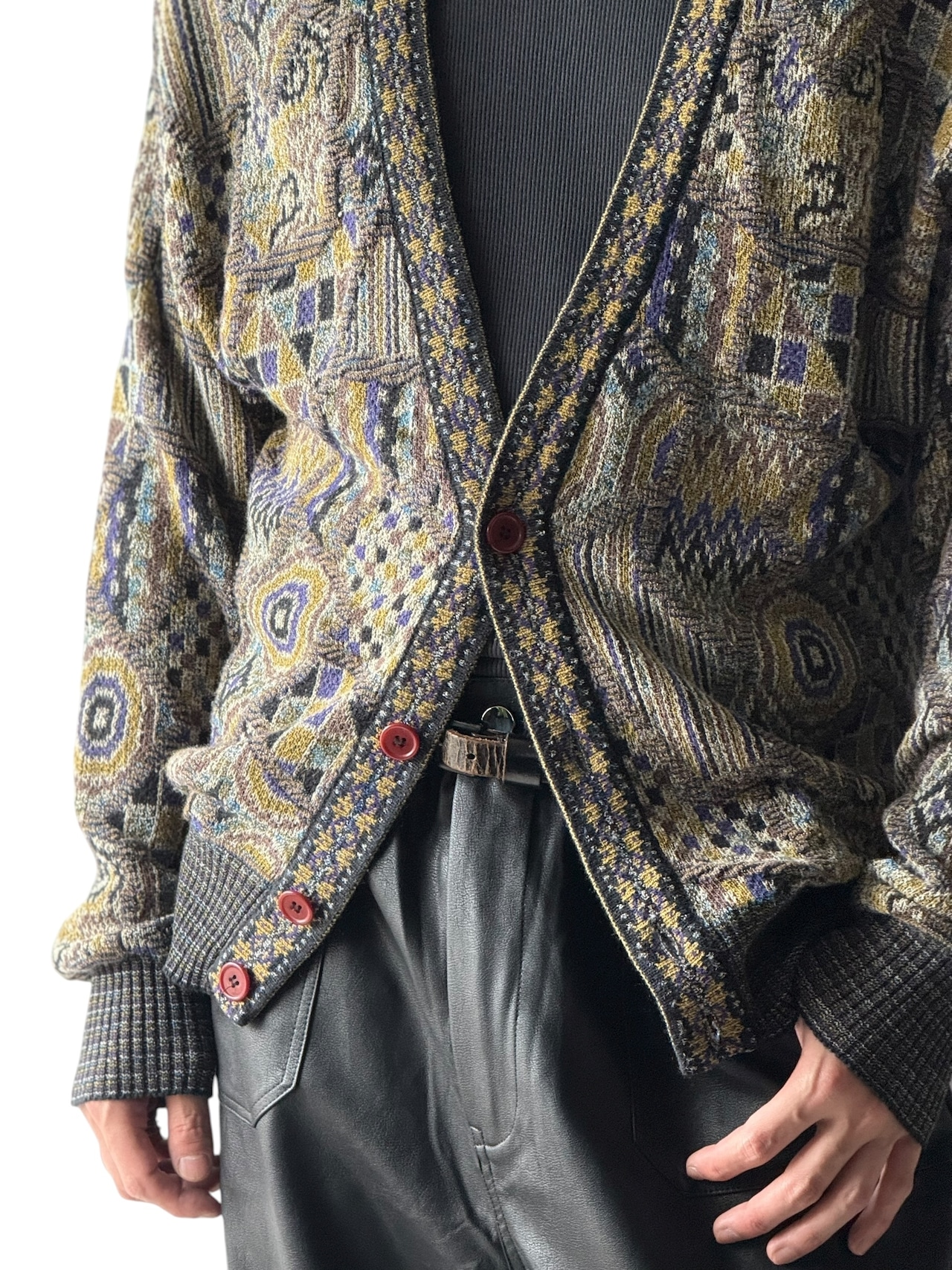 ジャガード編みで、マルチな柄パターンがお洒落なイタリア製ユーロニットカーディガン‼️