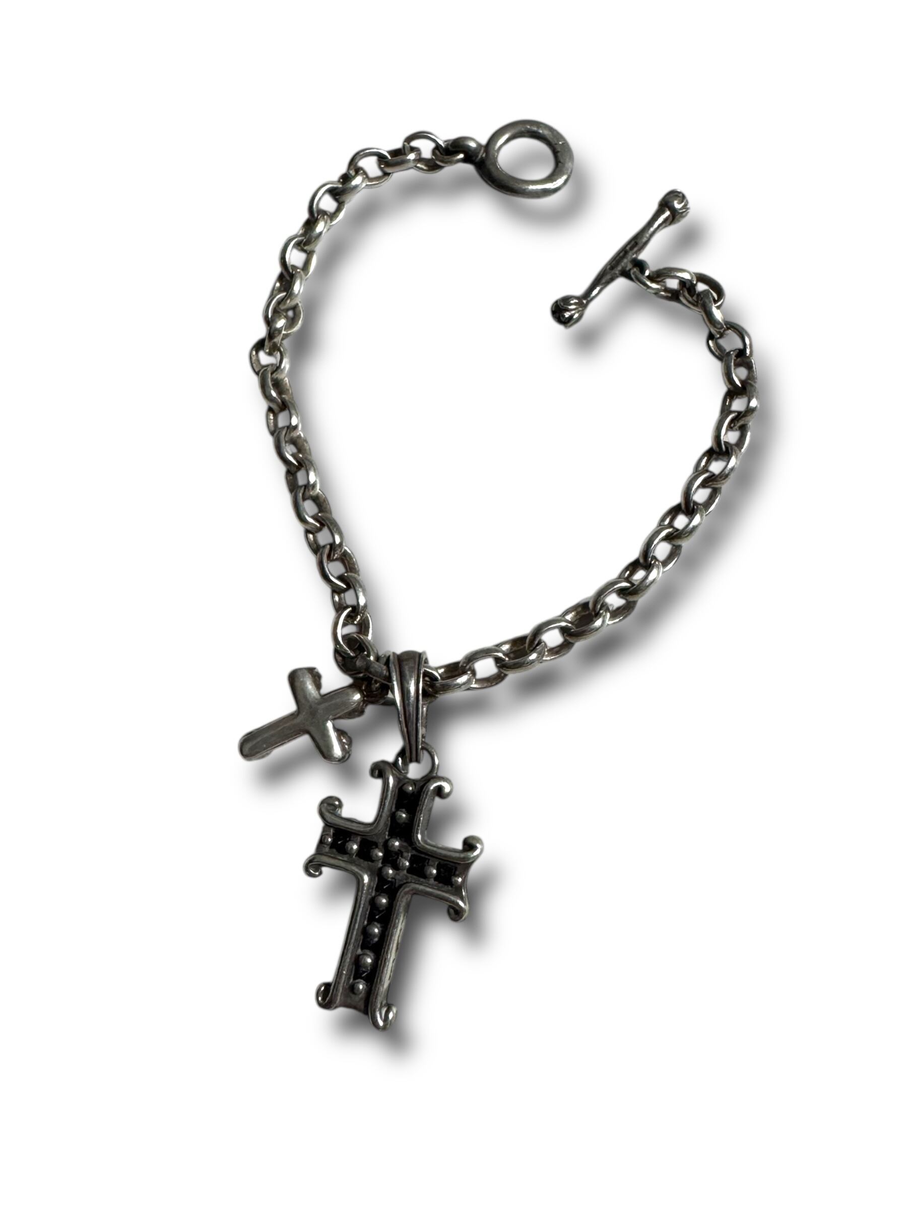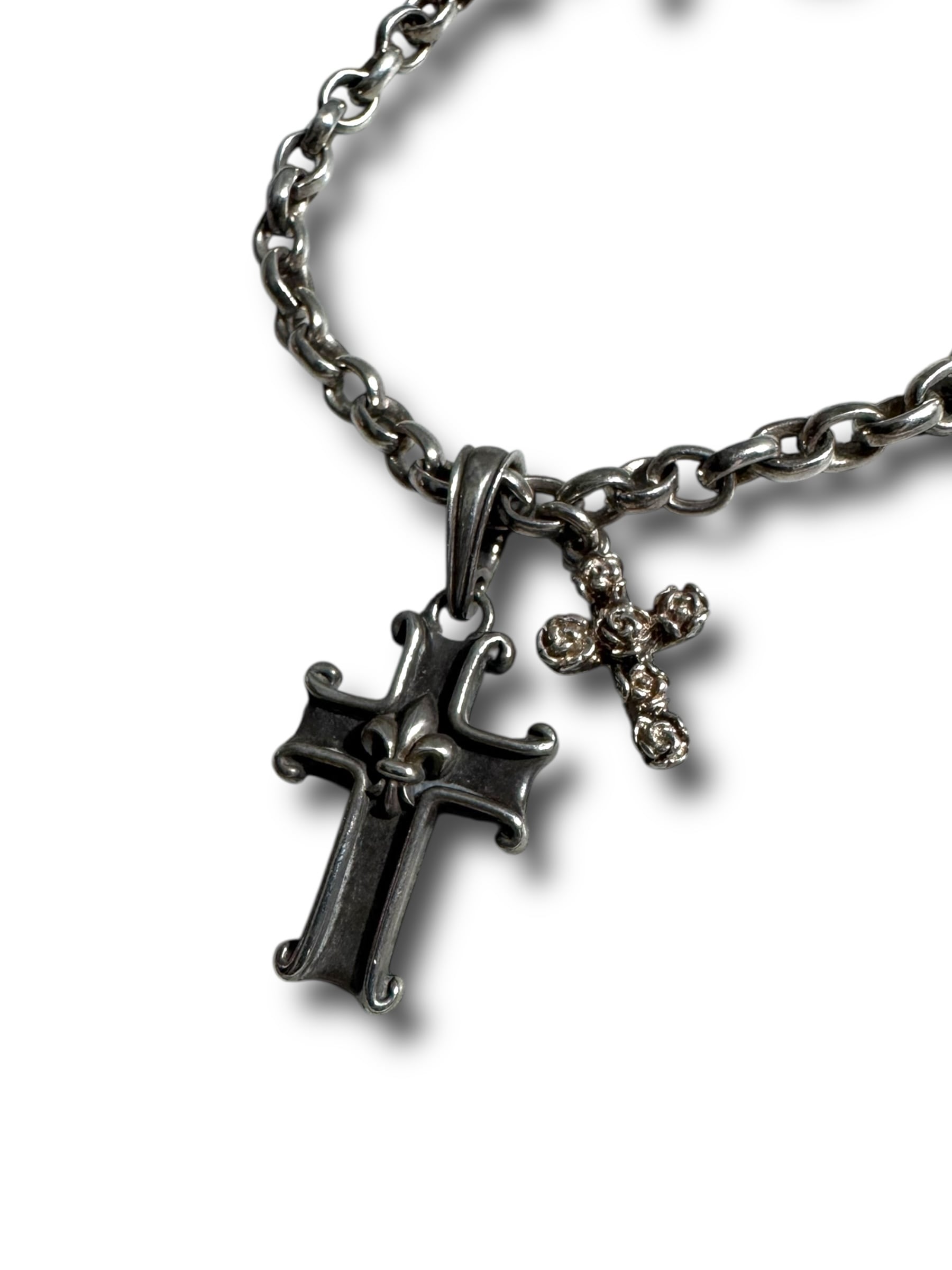 ♾ vtg sv jewelry ♾ double cross & rose charm motif design bracelet sv925 ・
