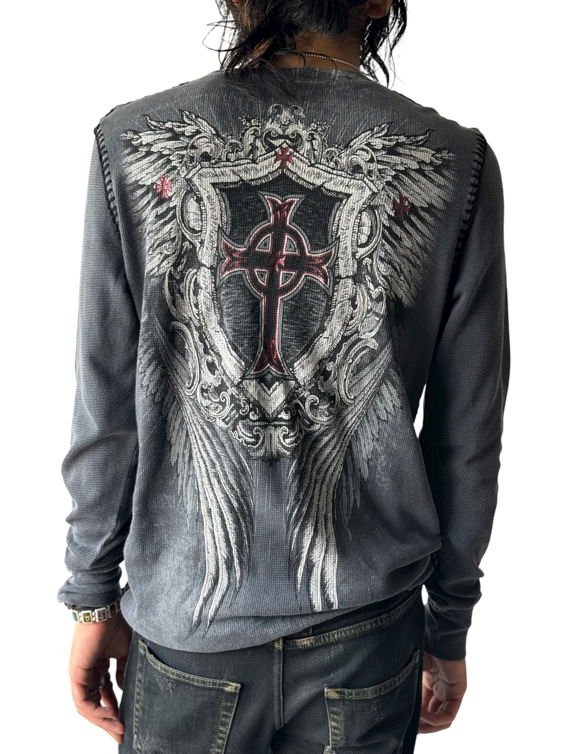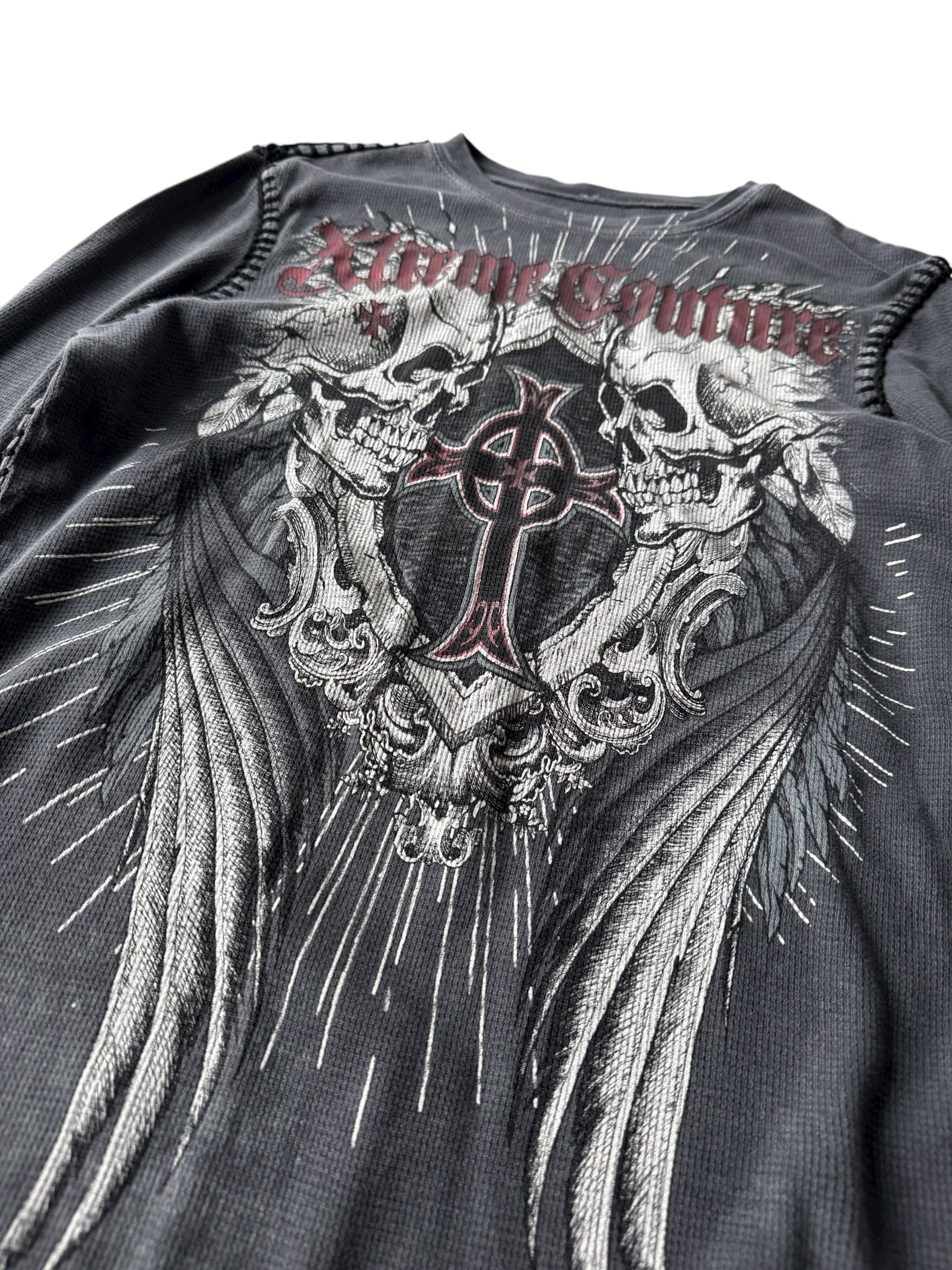♾XTREME COUTURE♾ y2k skull wing stitch work design thermal size S