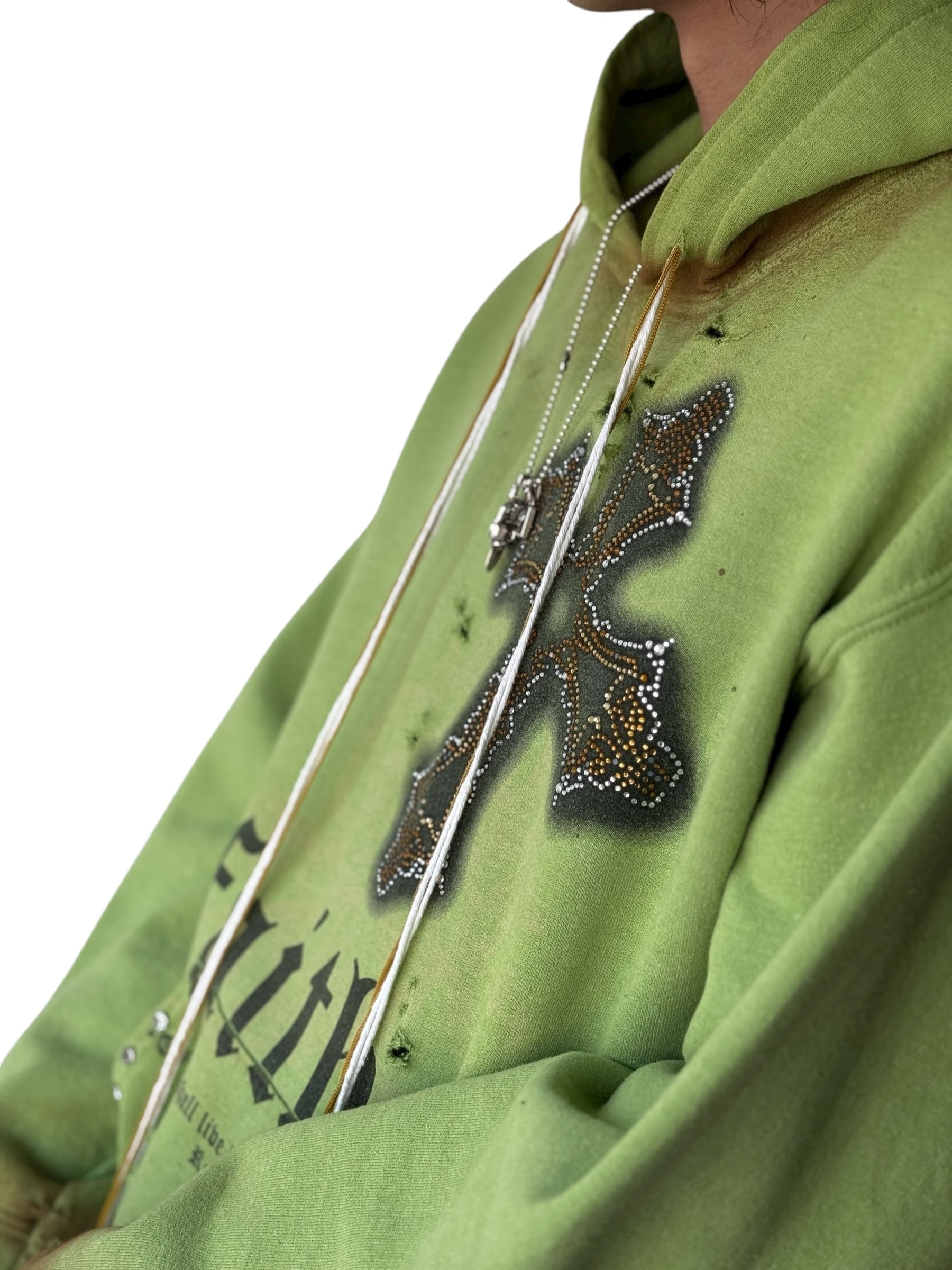 ♾ design used ♾ dirty custom design cross Rhinestone hoodie size M