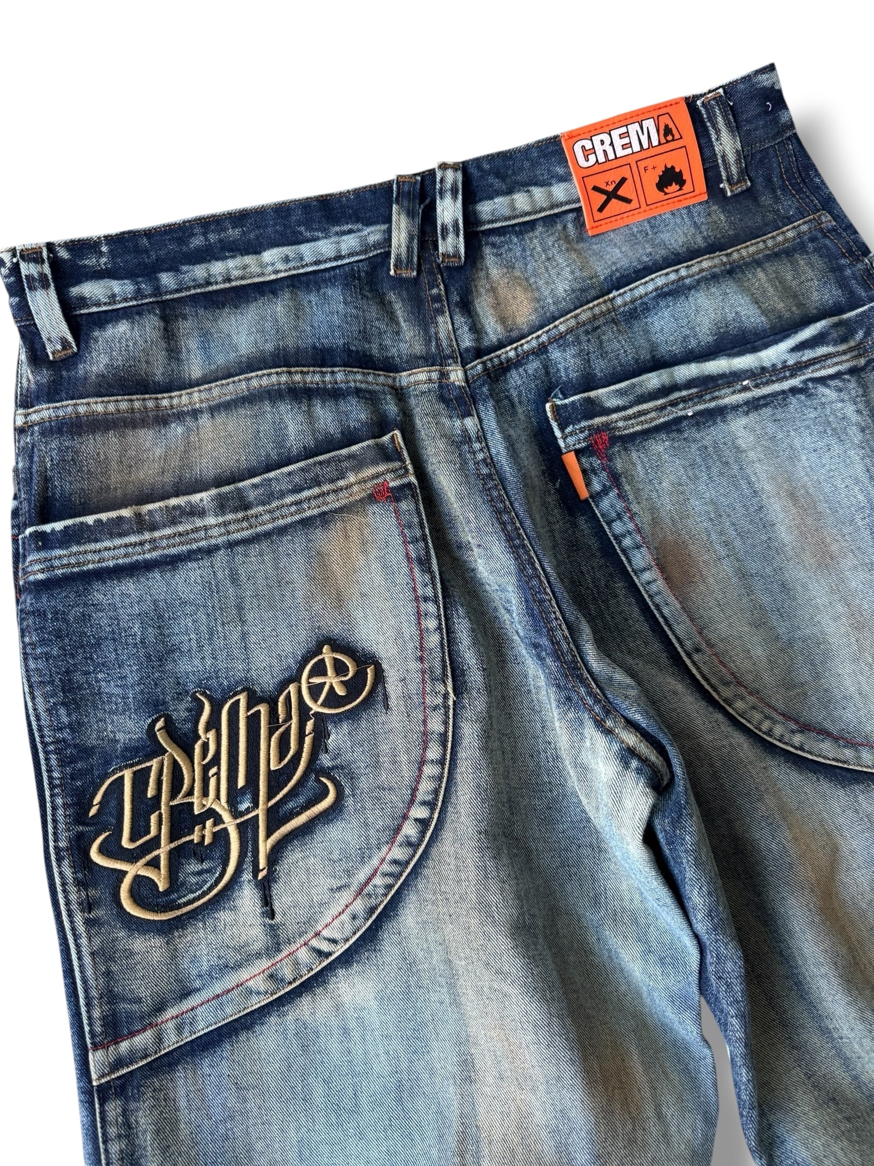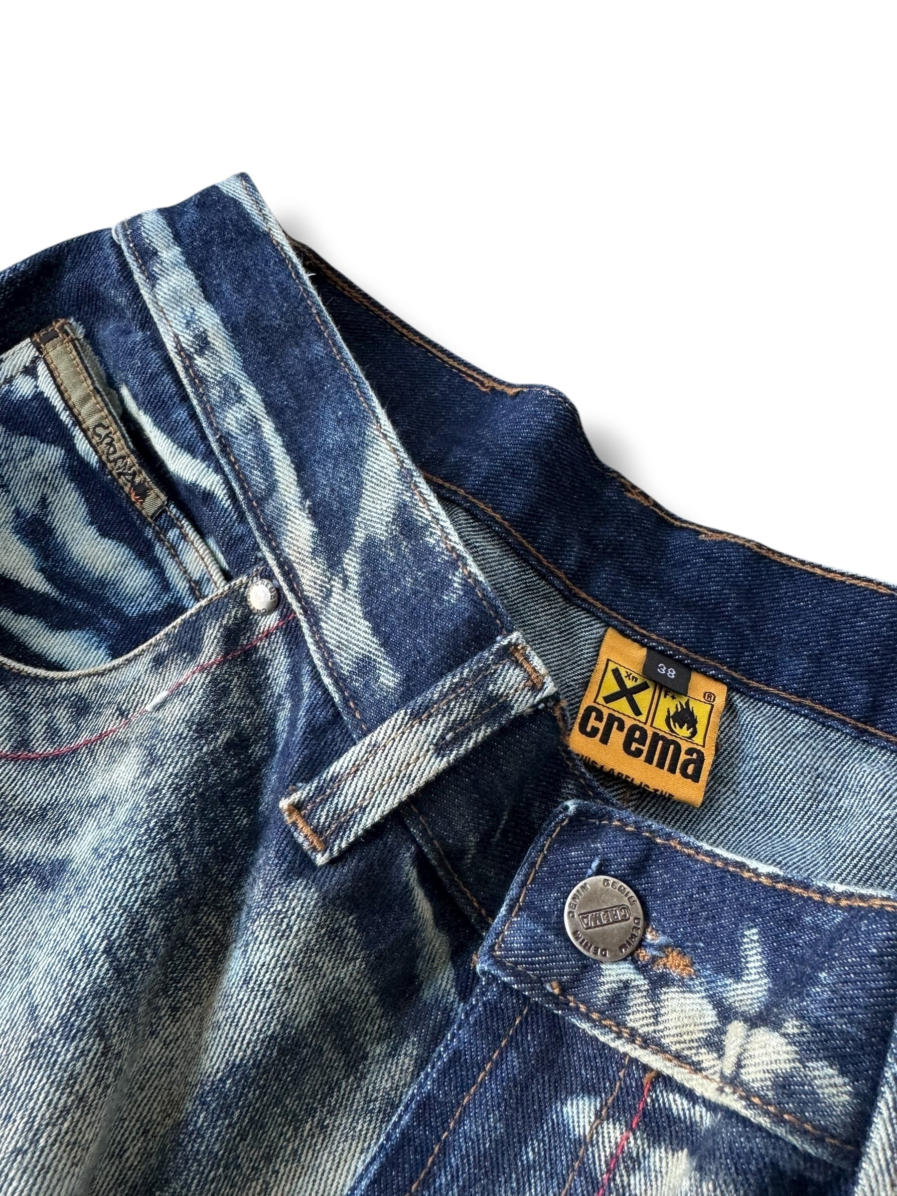 ♾crema♾ dusty coating design mega wide buggy chemical denim pants size38