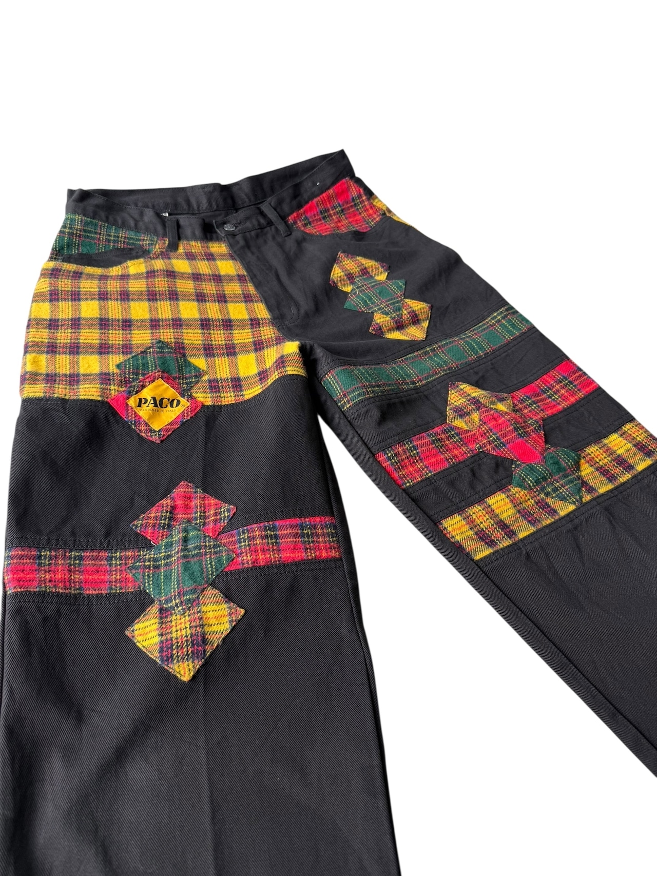 【PACO】"DESIGED IN ITALY" various Tartan check patchwork design Black denim pants