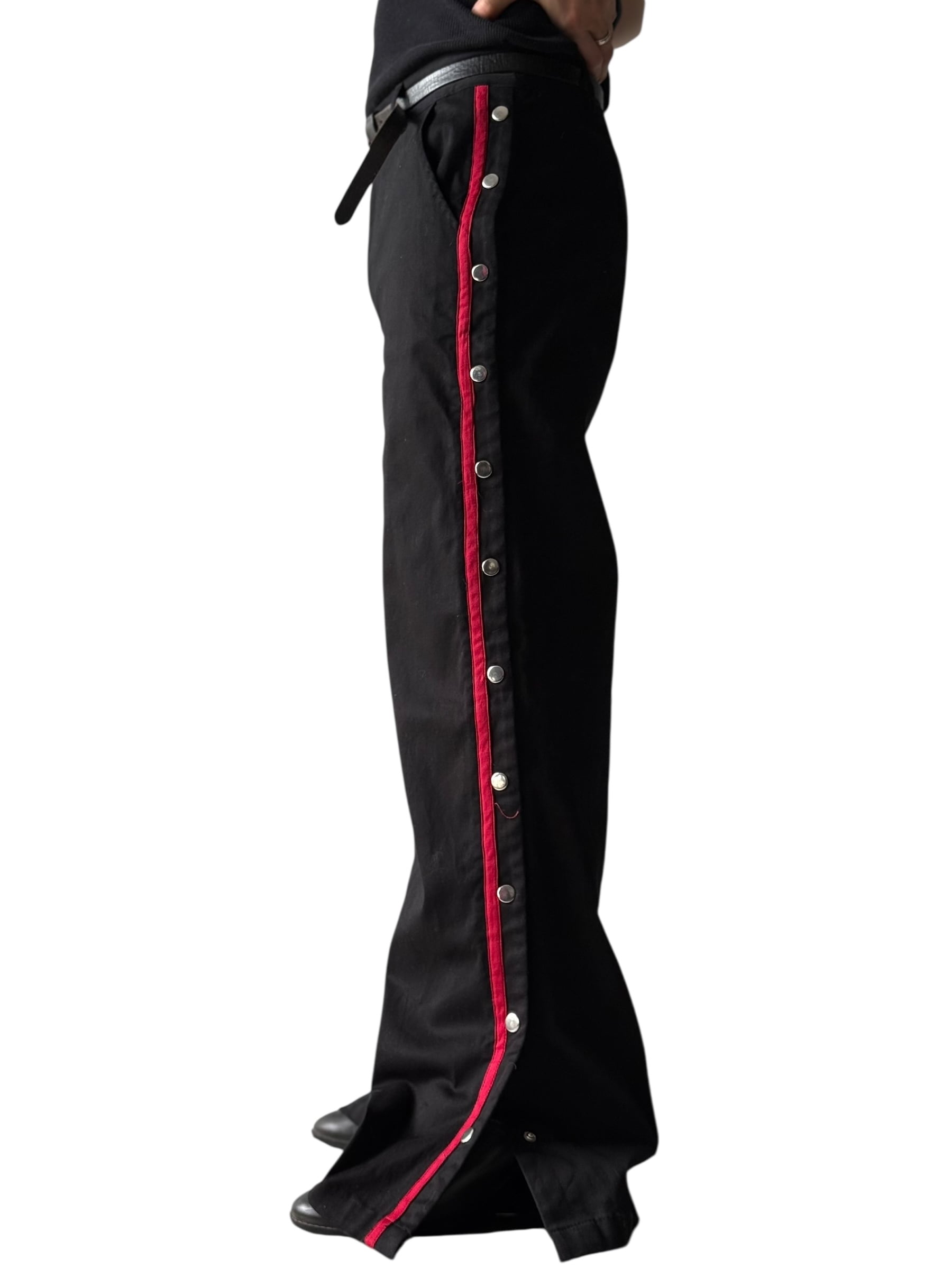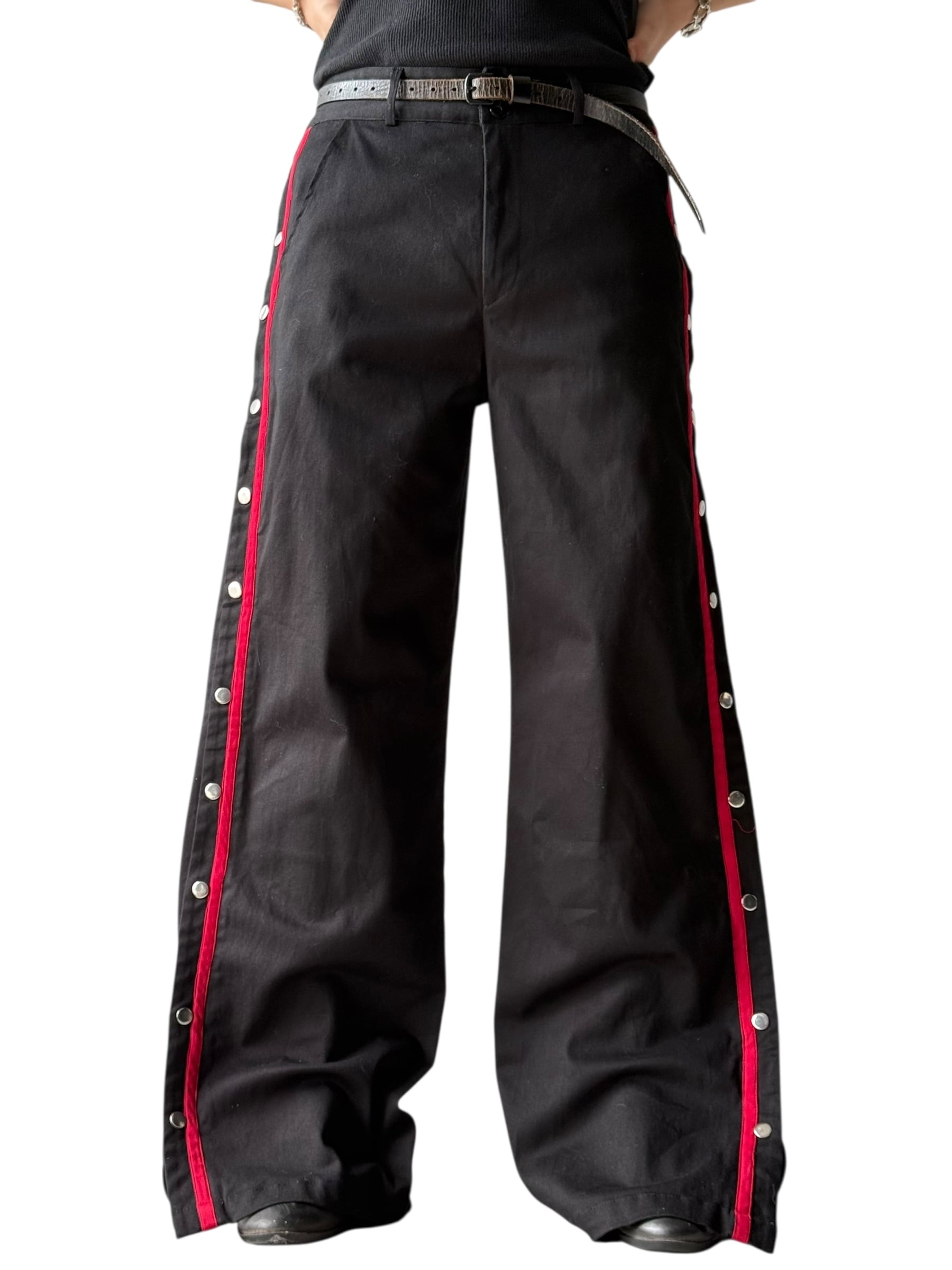 サイドスナップがいいアクセントになってそのサイドに入った赤のラインがコーディネートをワンランクアップさせちゃいます!✨