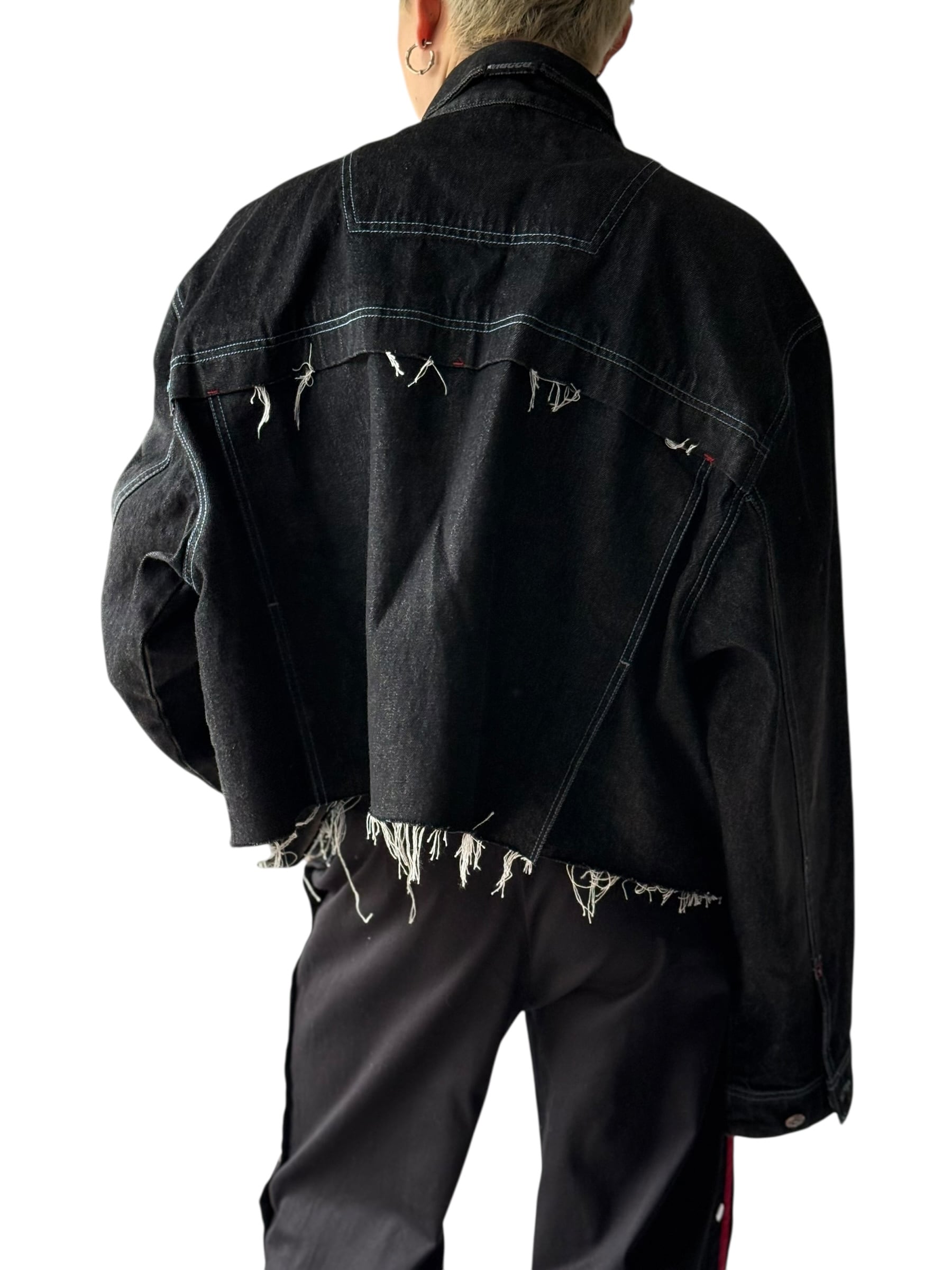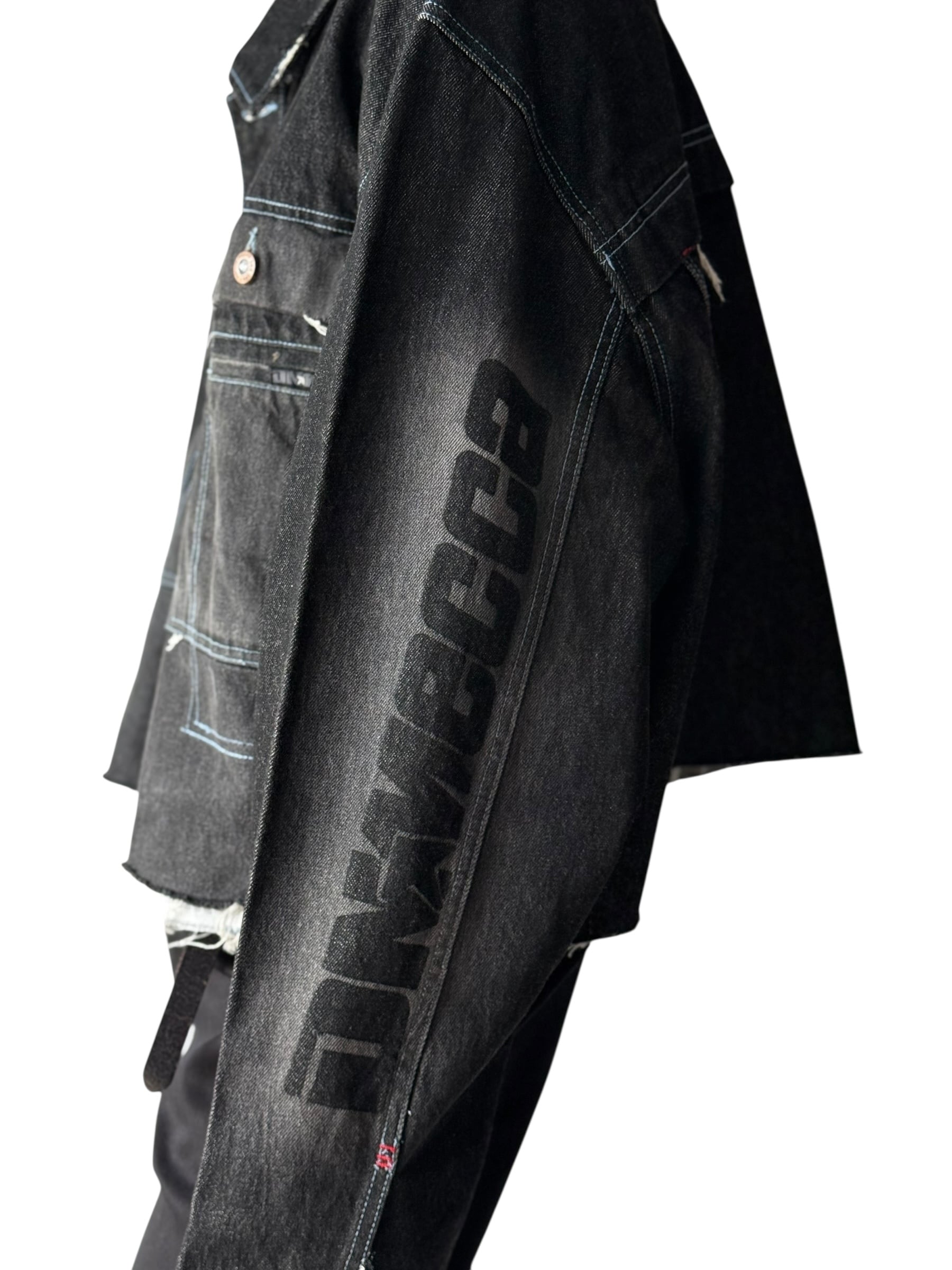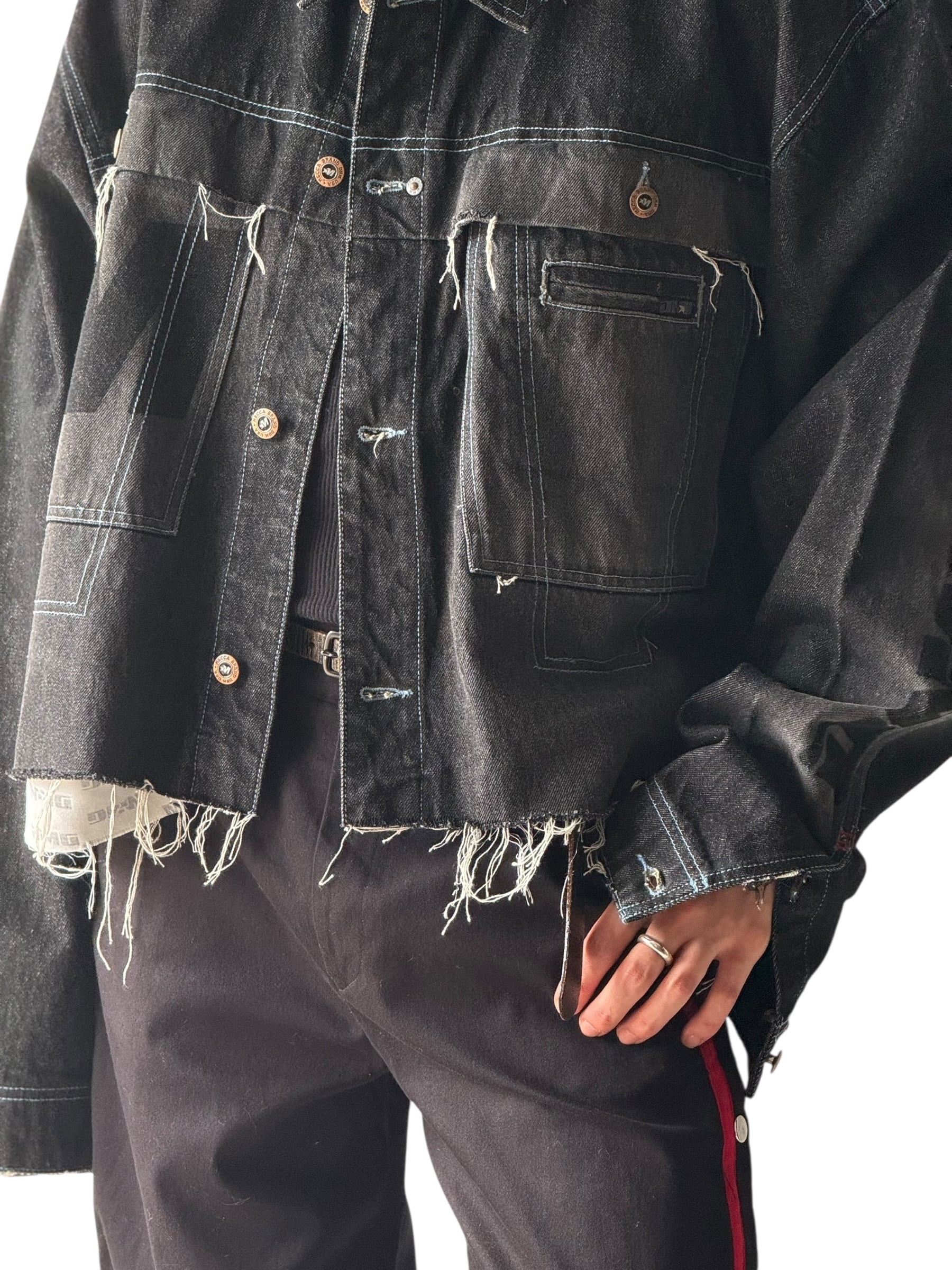 ショート丈にリメイクされたカスタムデザインデニムトラッカージャケットの入荷✨️