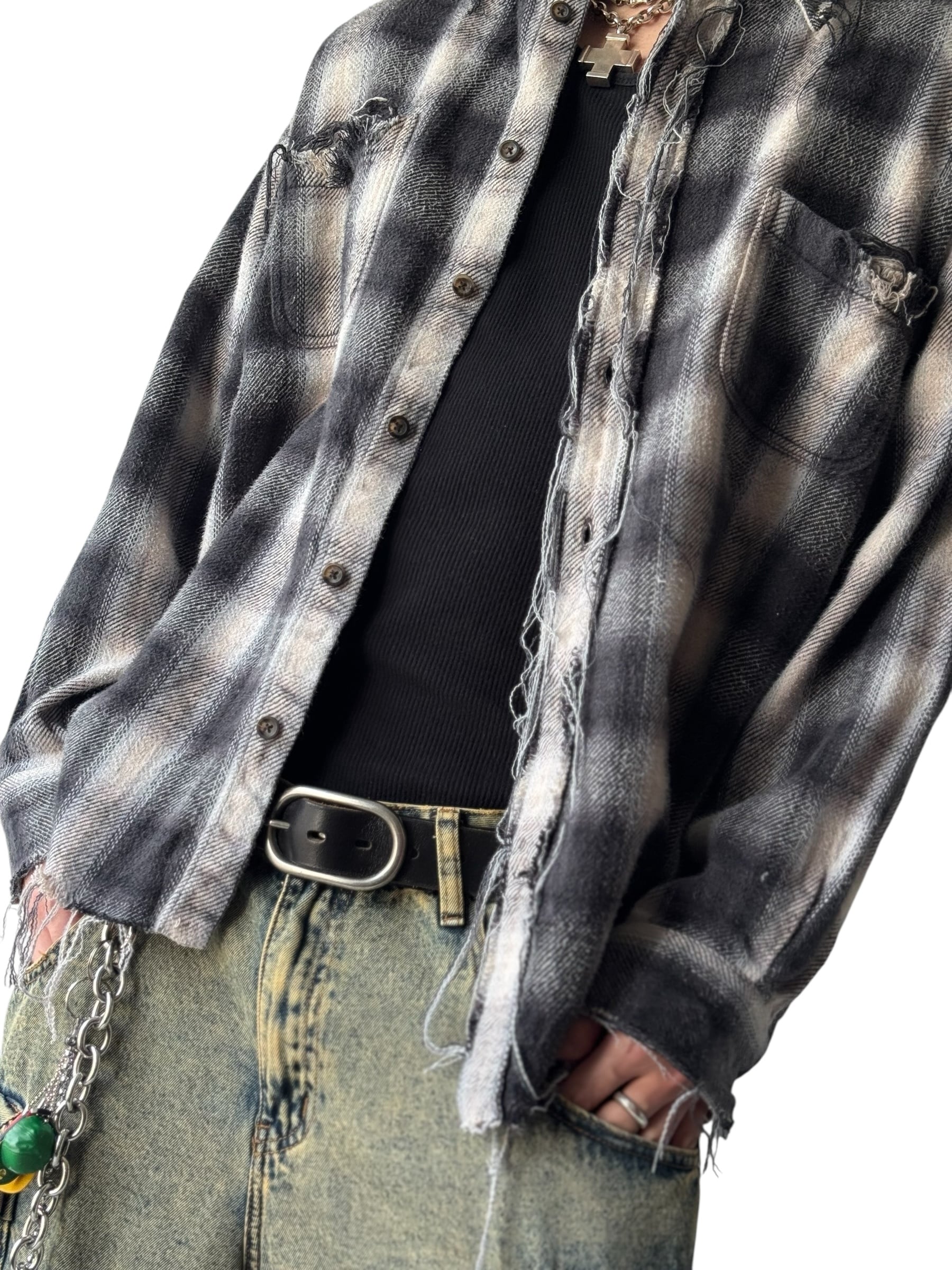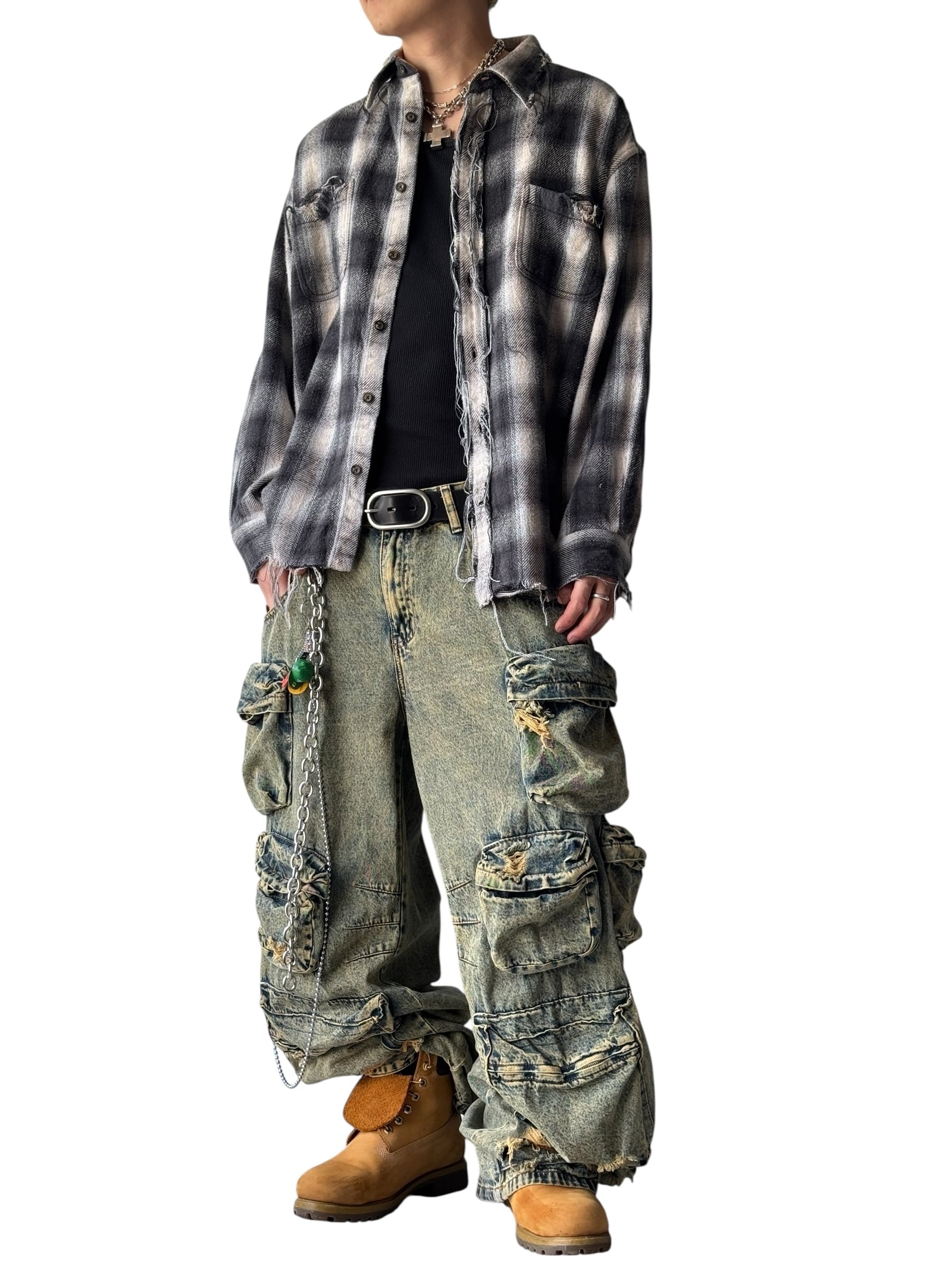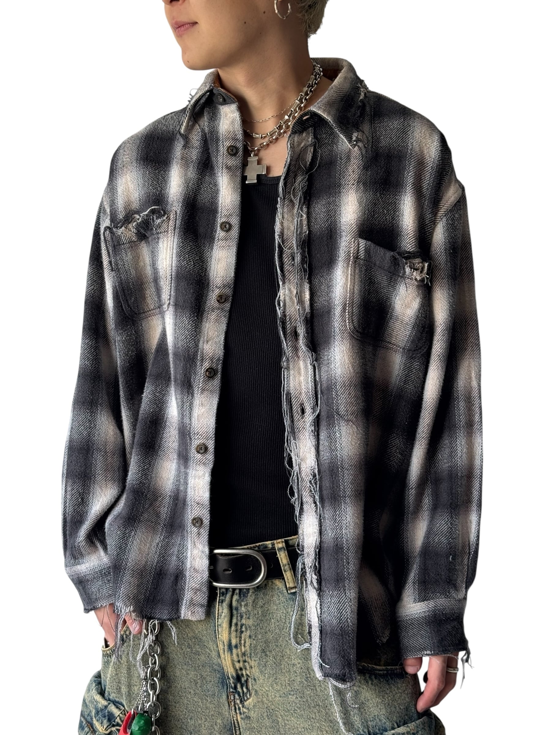 ️無敵のデザインクラッシュヘビーネルチェックシャツ。