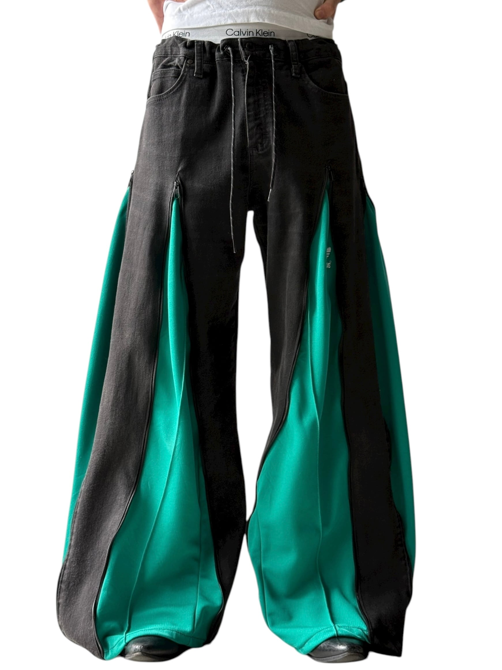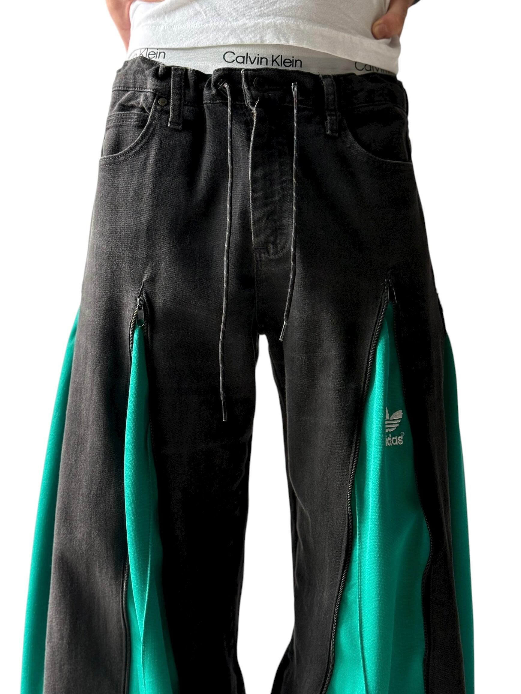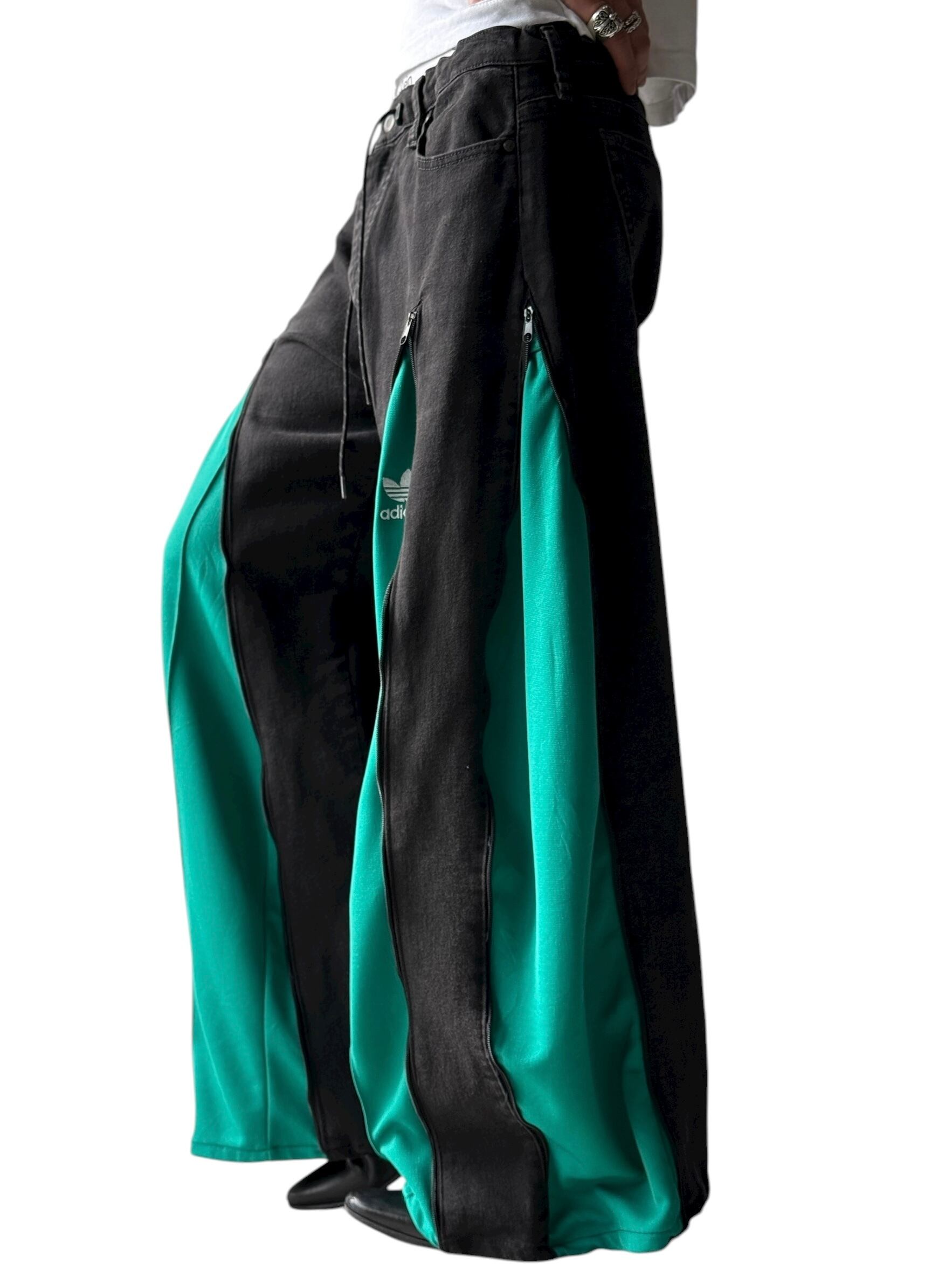 トラックパンツをドッキングさせたような極上ワイドフレアシルエットに変貌を遂げたとてつもないカスタムデザインがめちゃくちゃ映える1本‼️
