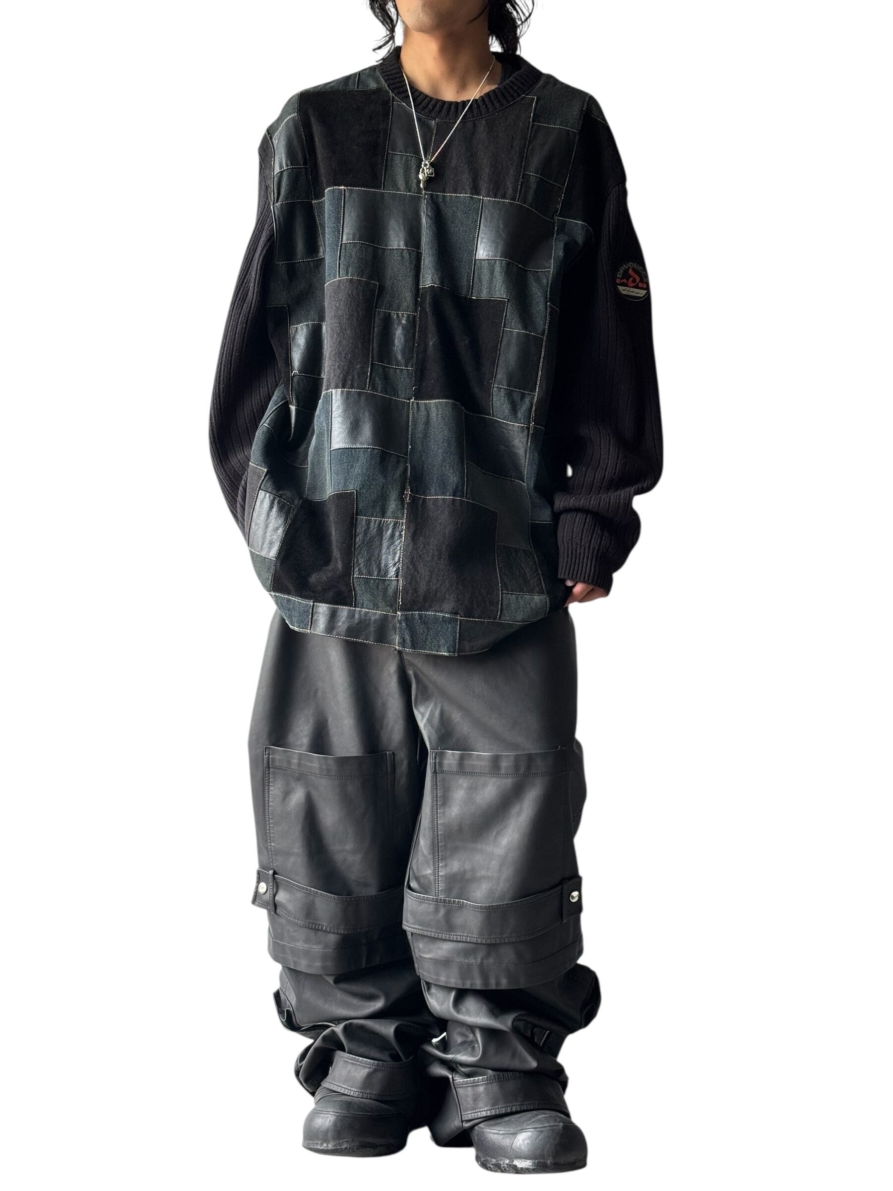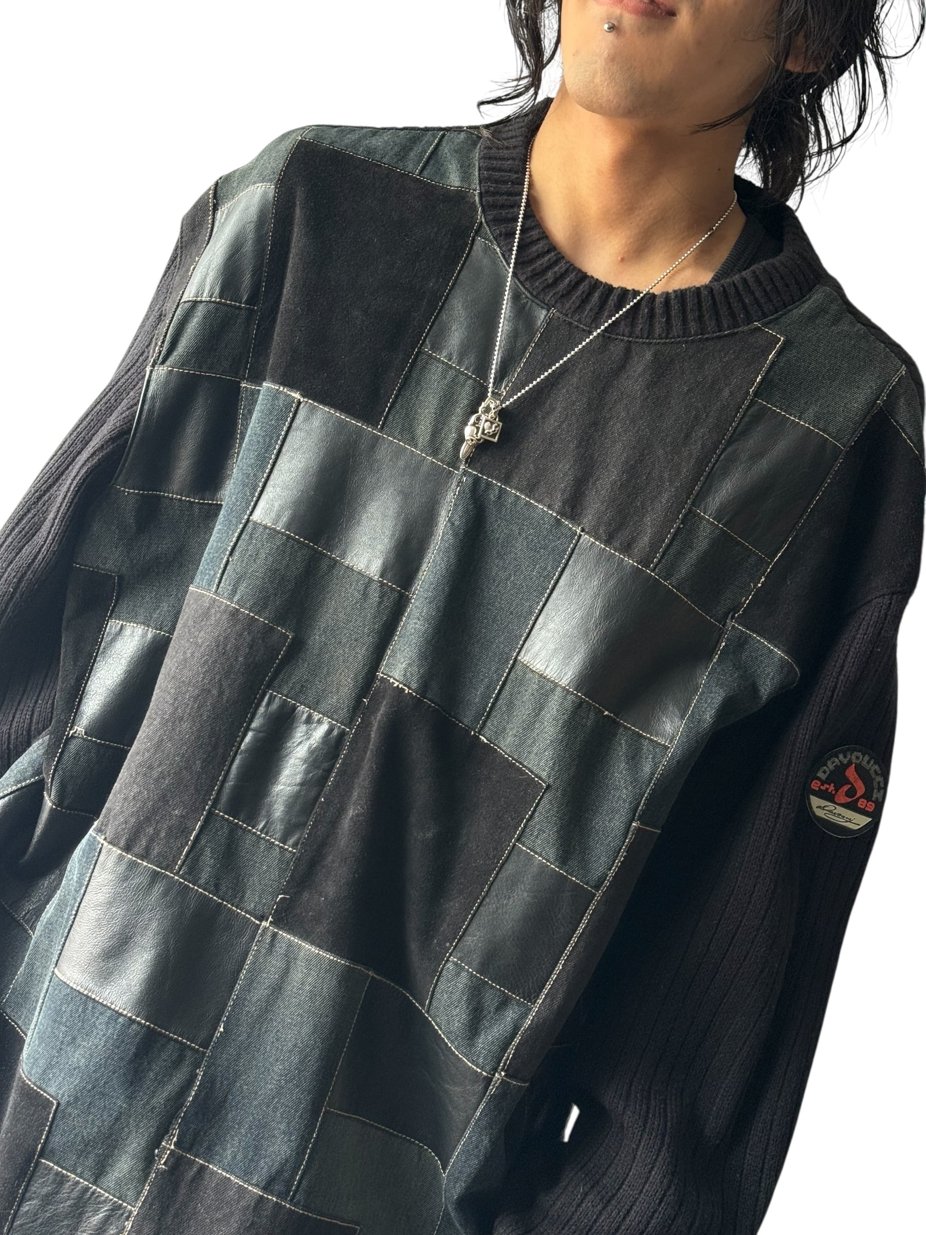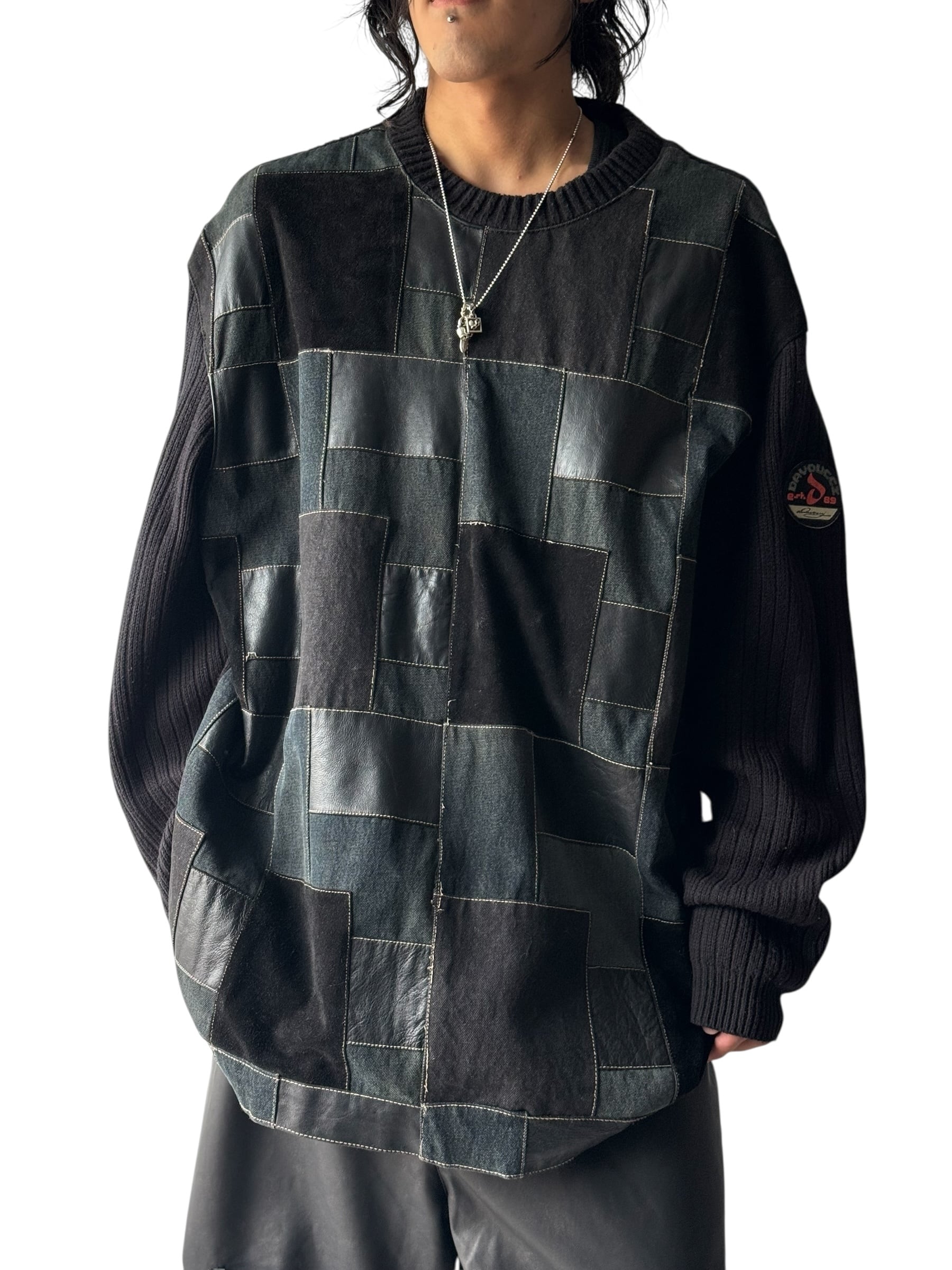 ♾DAVOUCCI♾ leather switching panel design over sized knit size2XL
