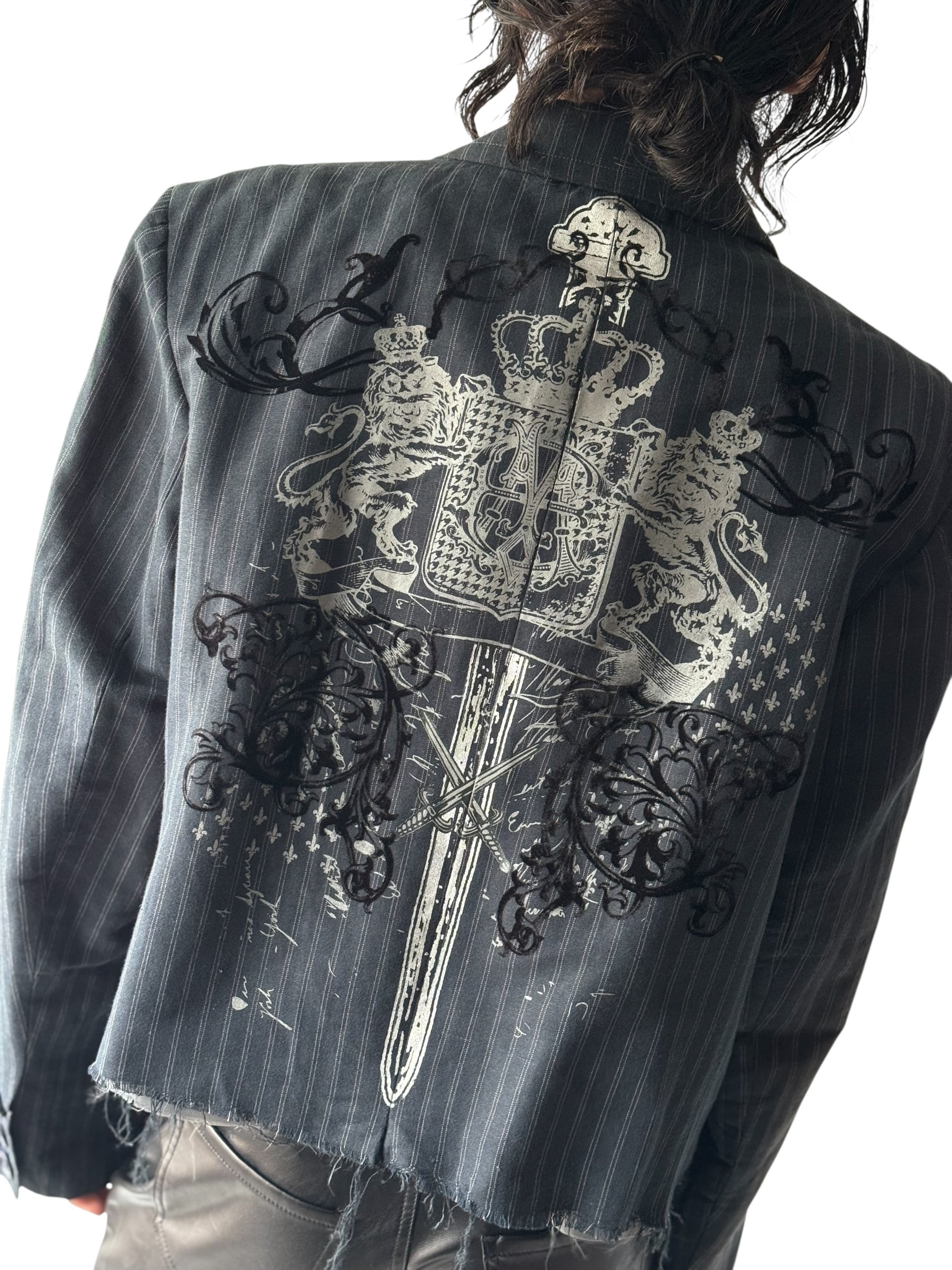 ♾MARC ECKO♾ cut off custom design short length embroidery&Dagger design tailored jacket size XXL