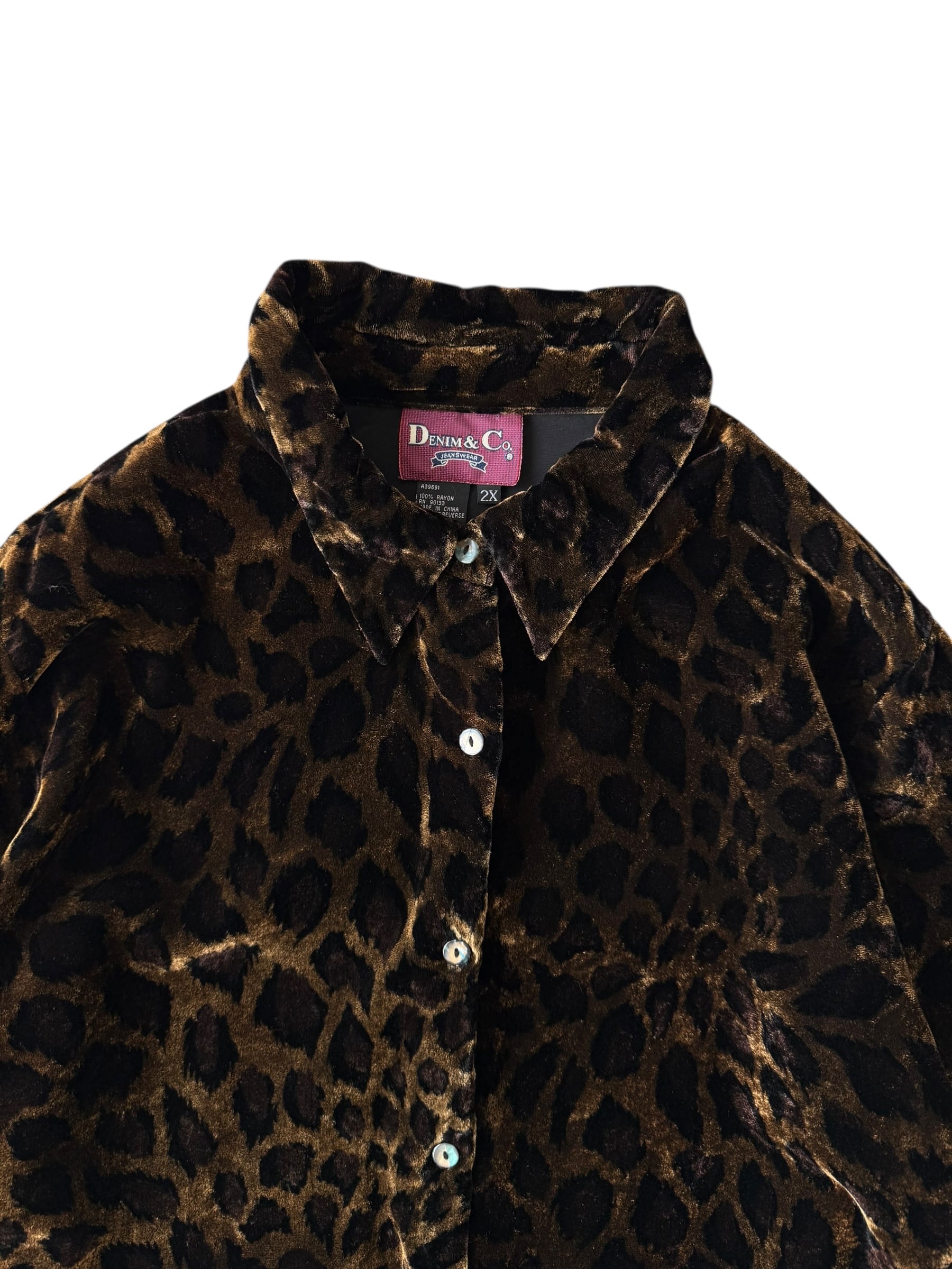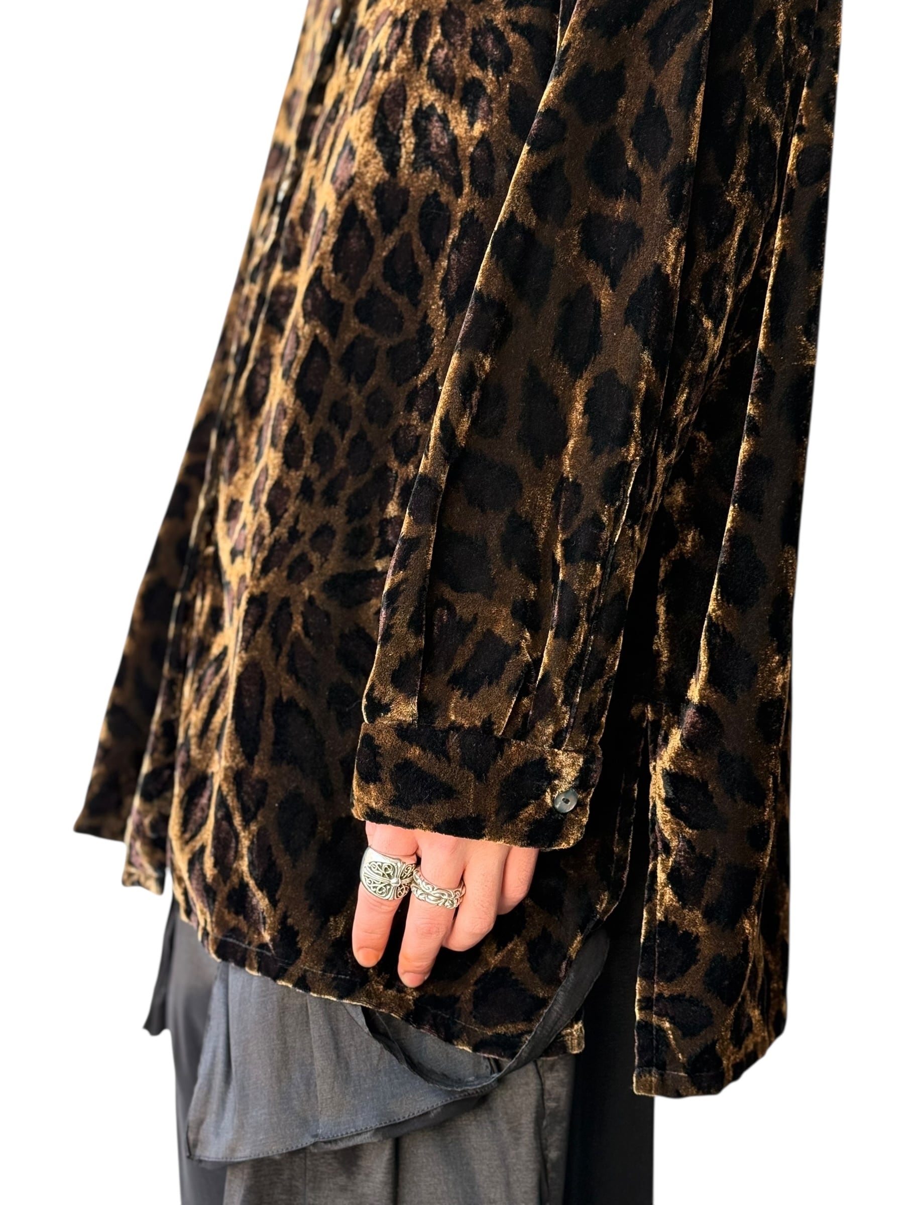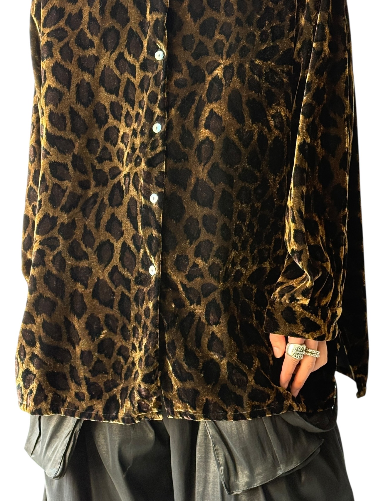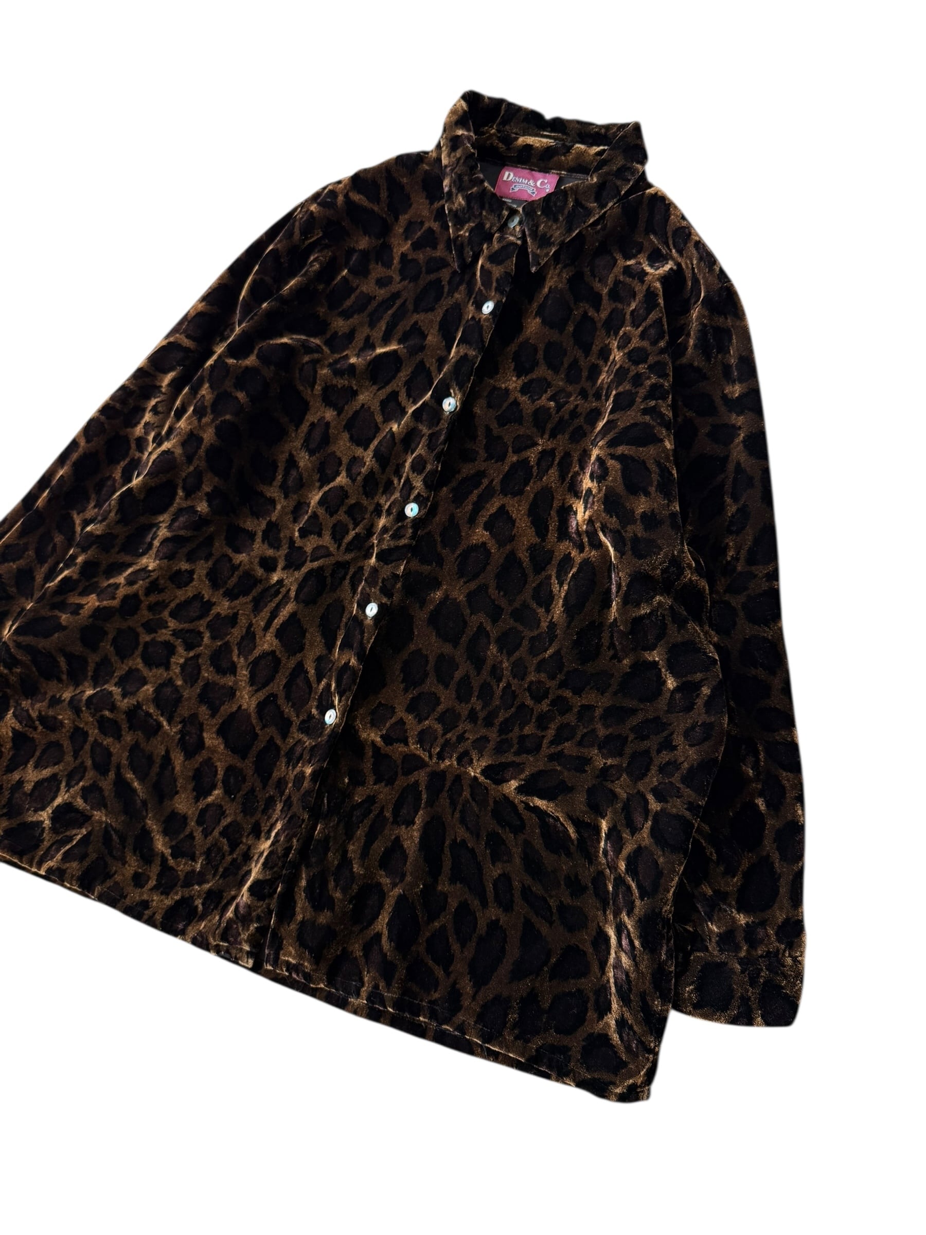 【DENIM&CO.】Leopard puttern Velvet L/S Shirt