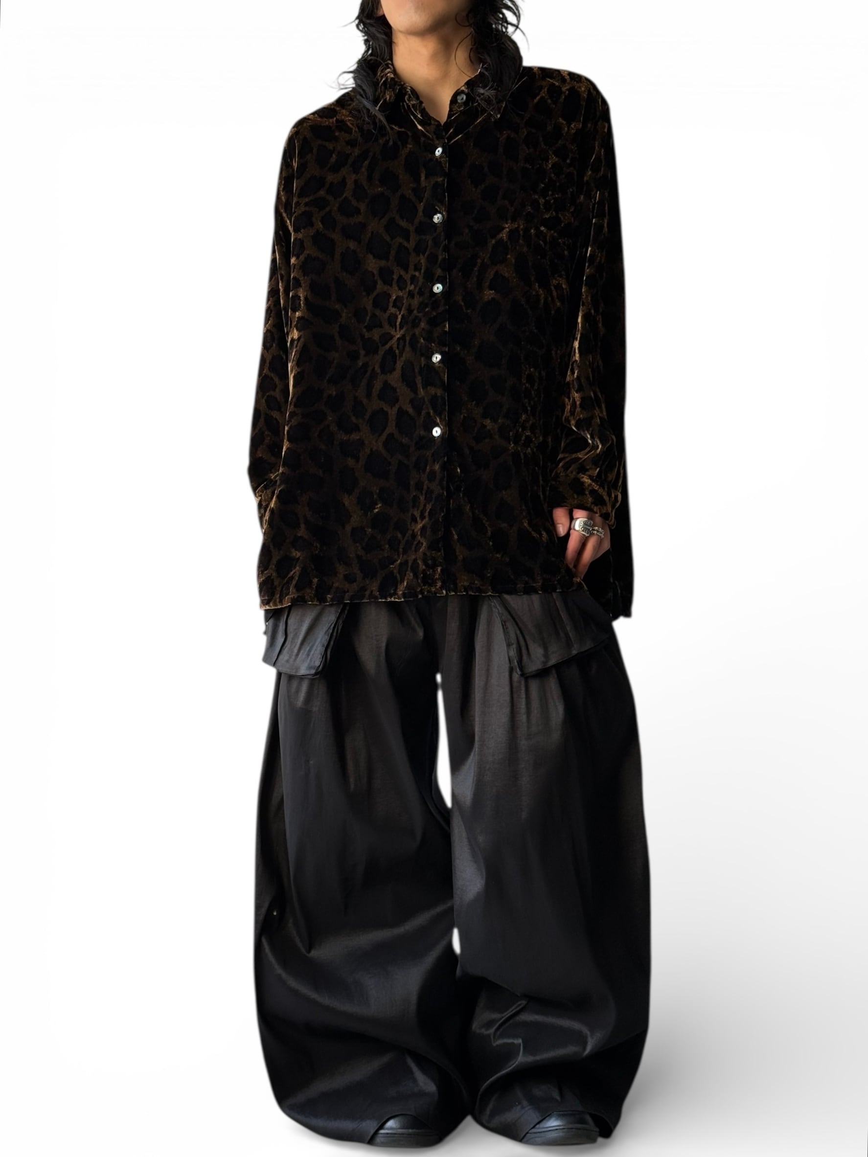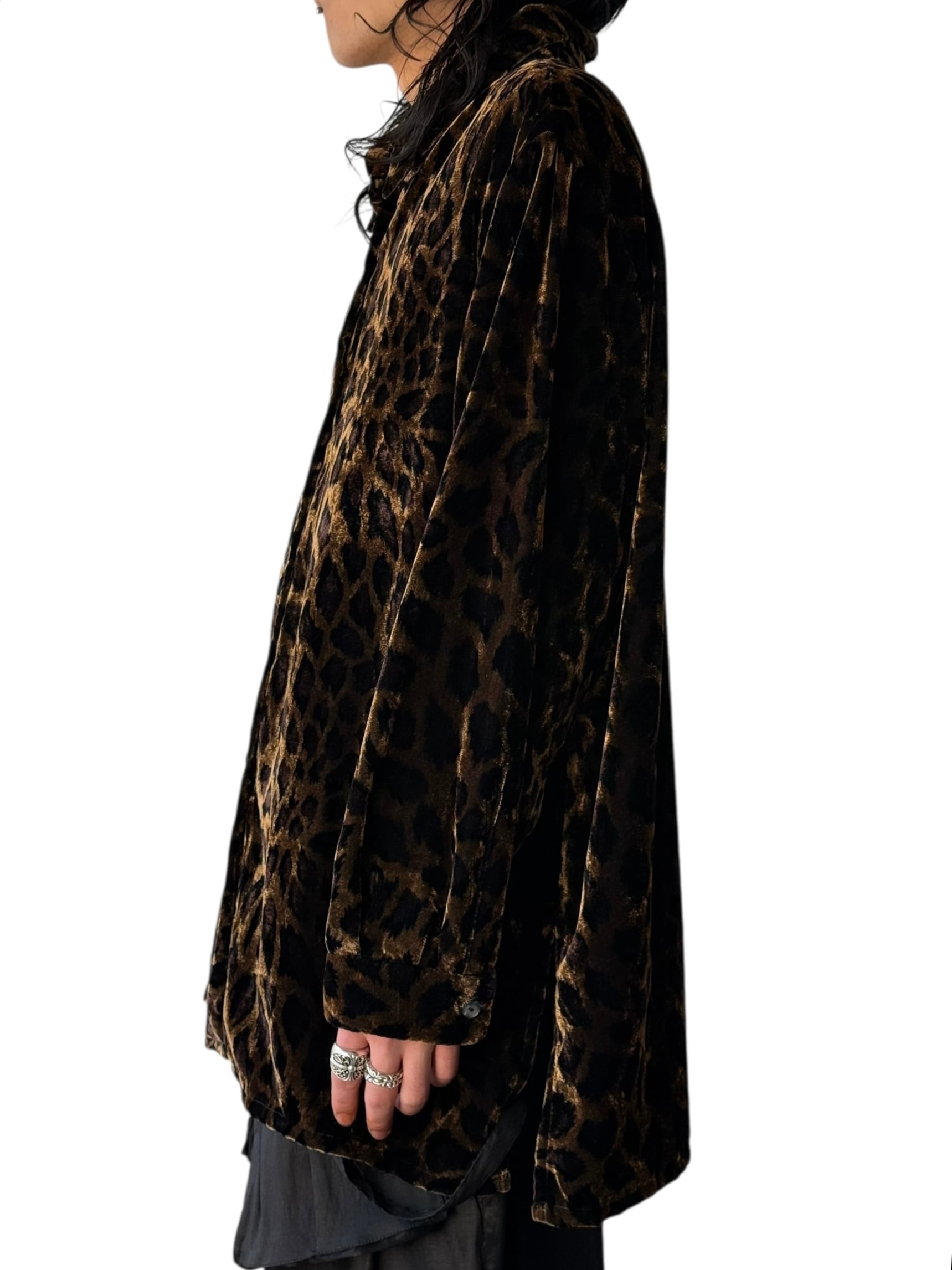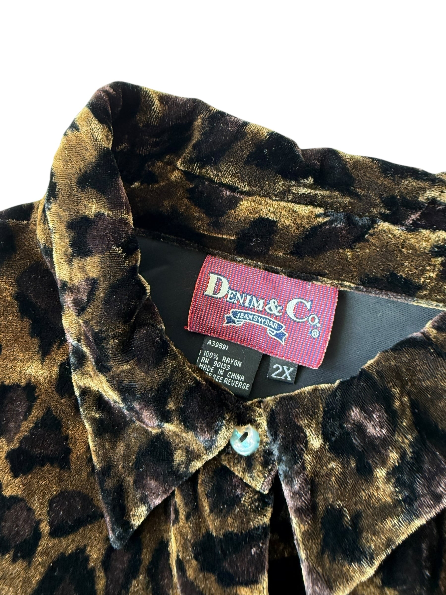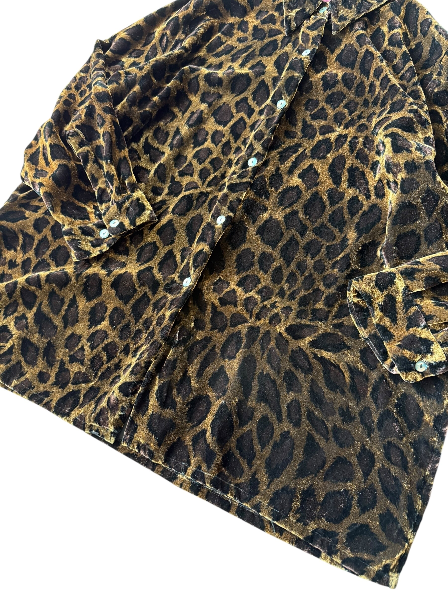 【DENIM&CO.】Leopard puttern Velvet L/S Shirt