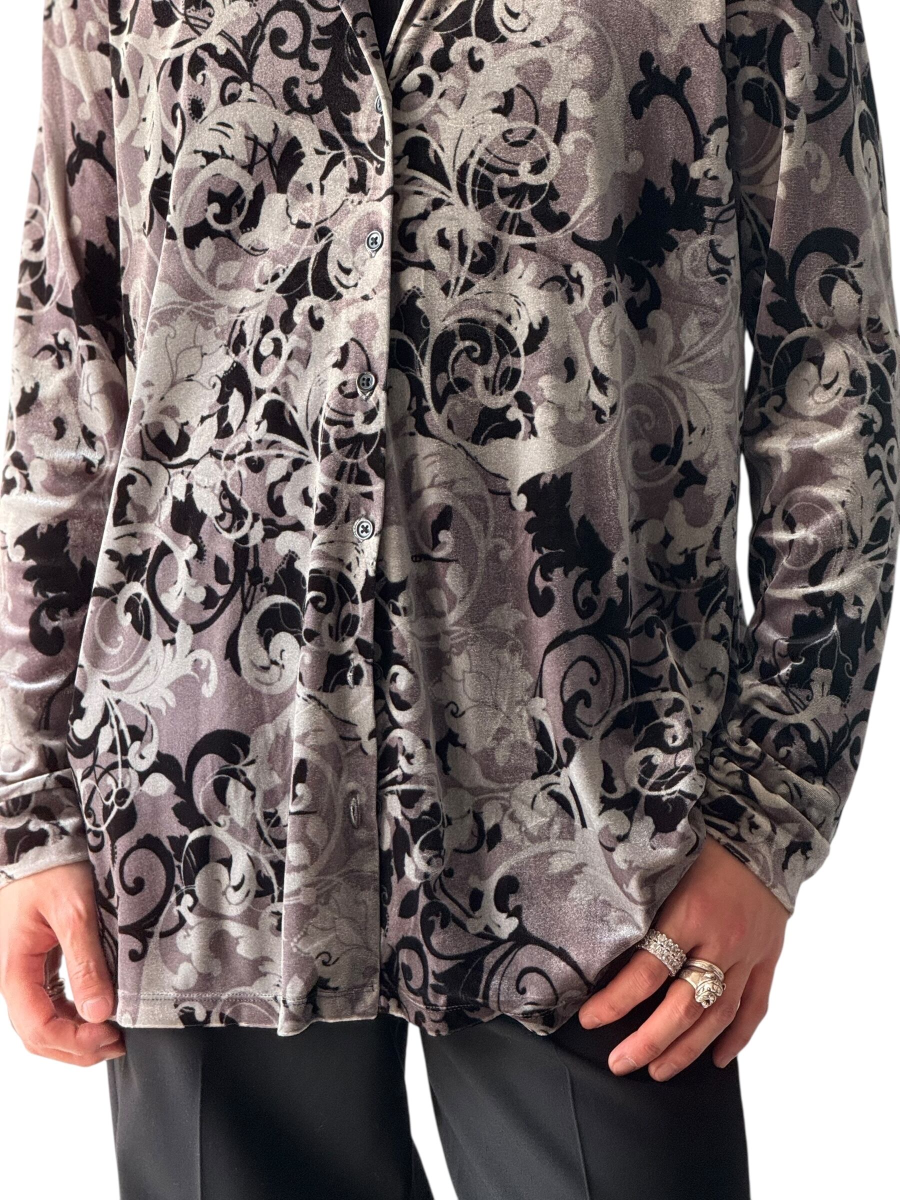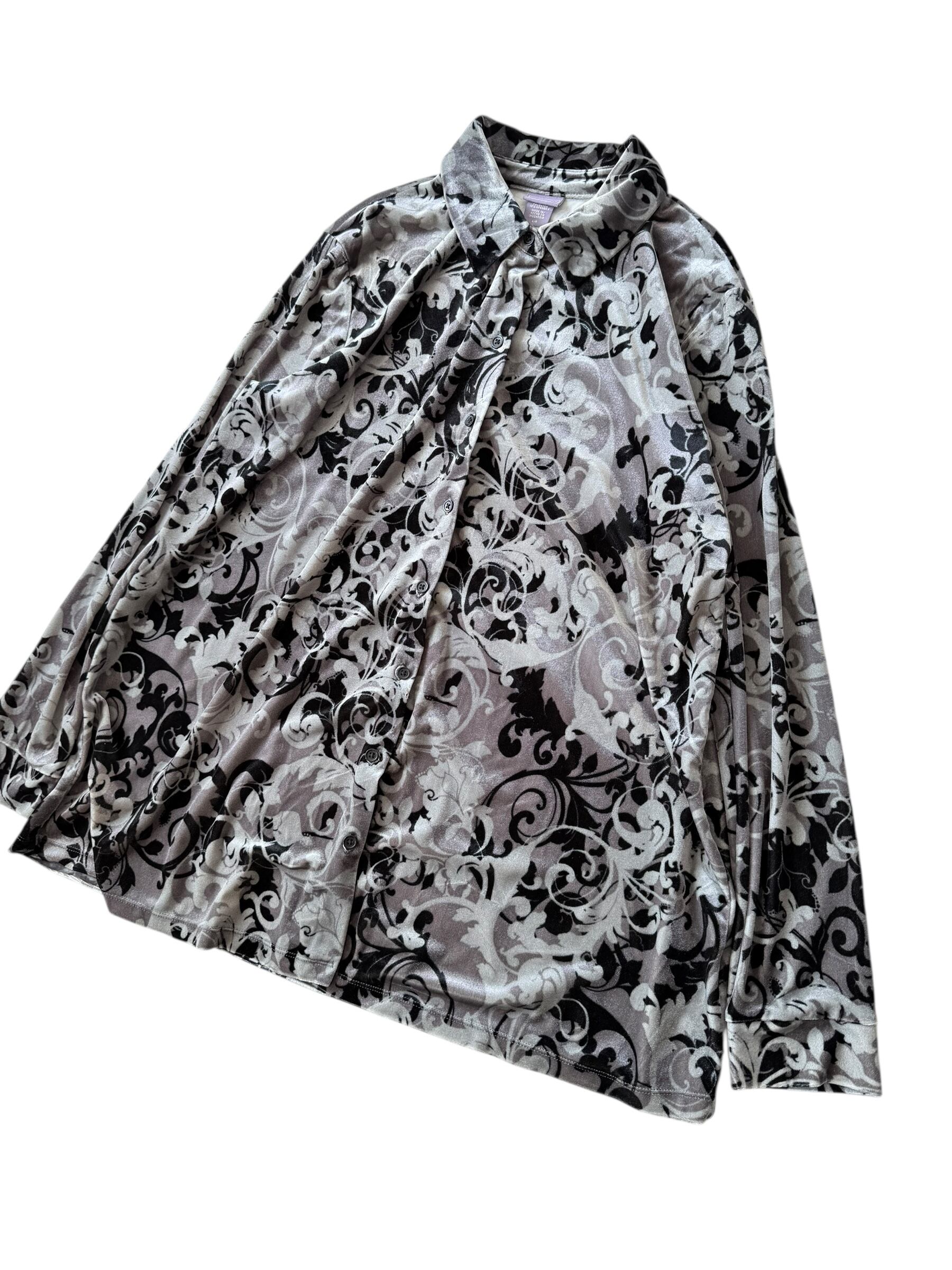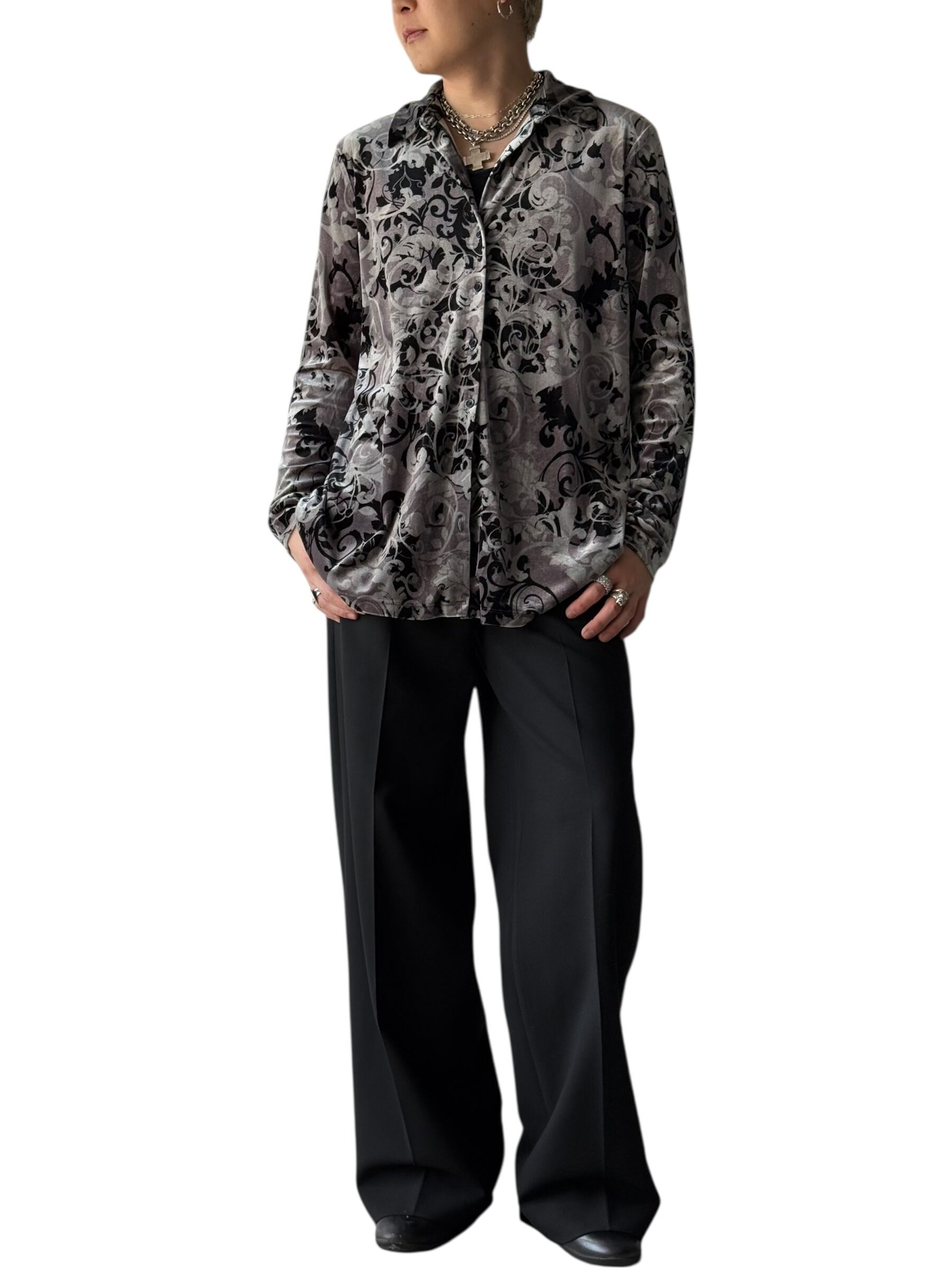 【Laura Scott】 Floral shadow pattern Velvet shirt