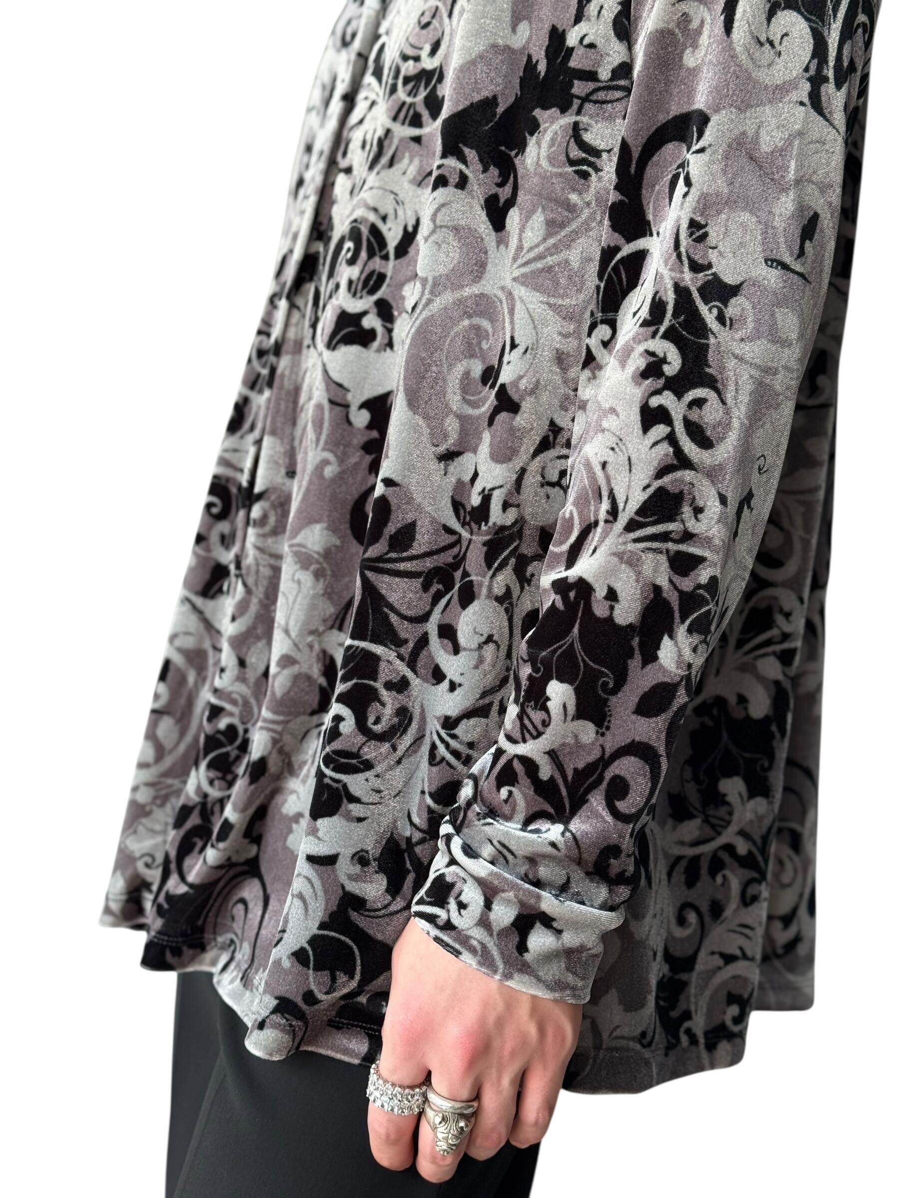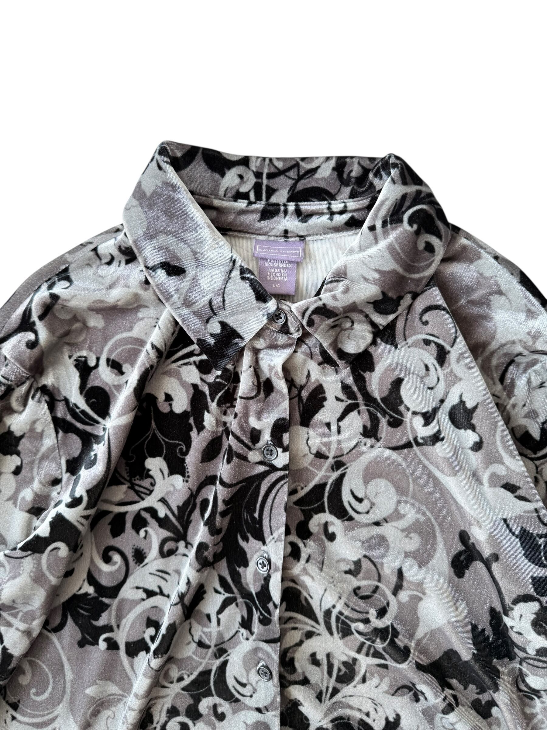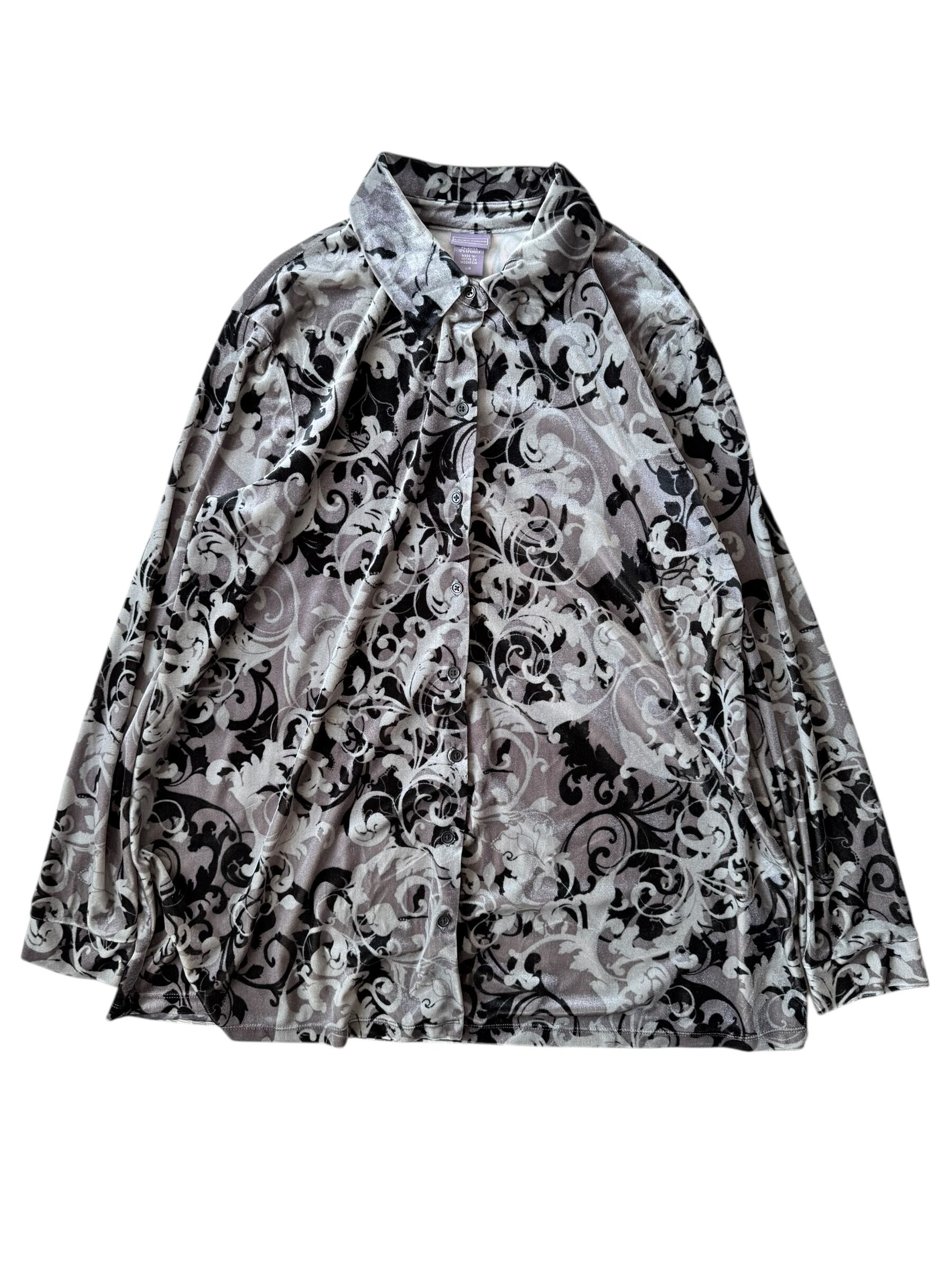 【Laura Scott】 Floral shadow pattern Velvet shirt