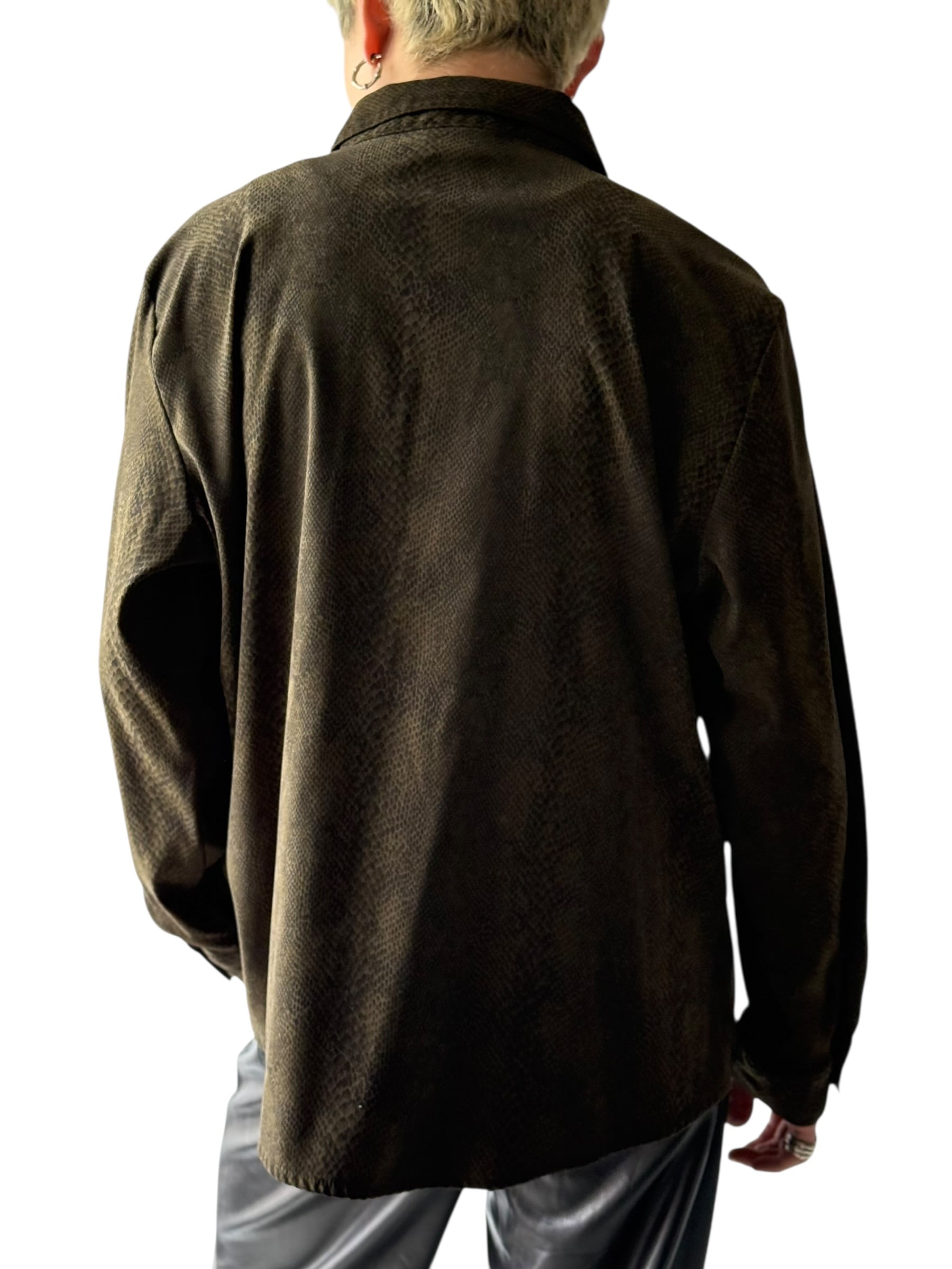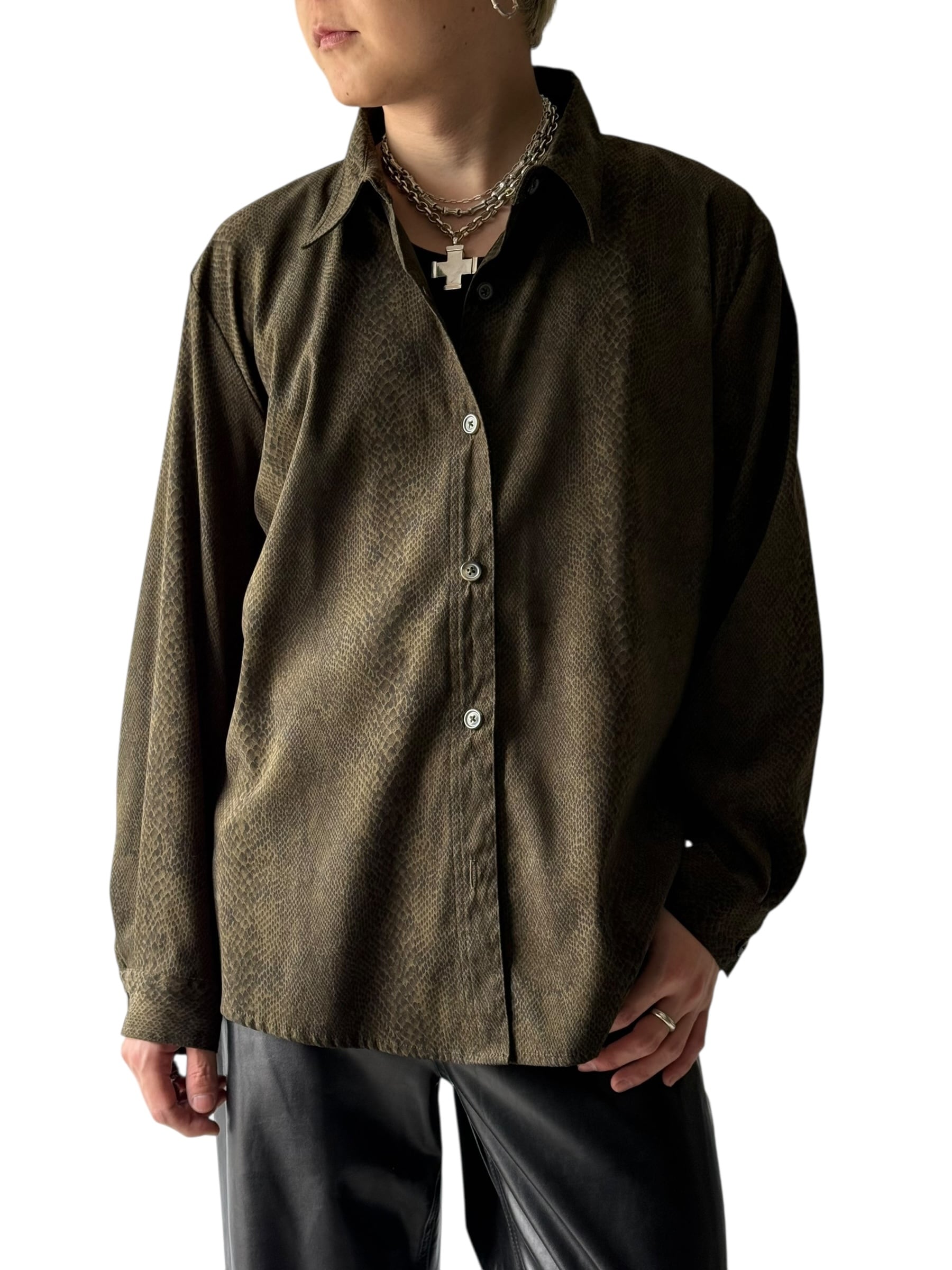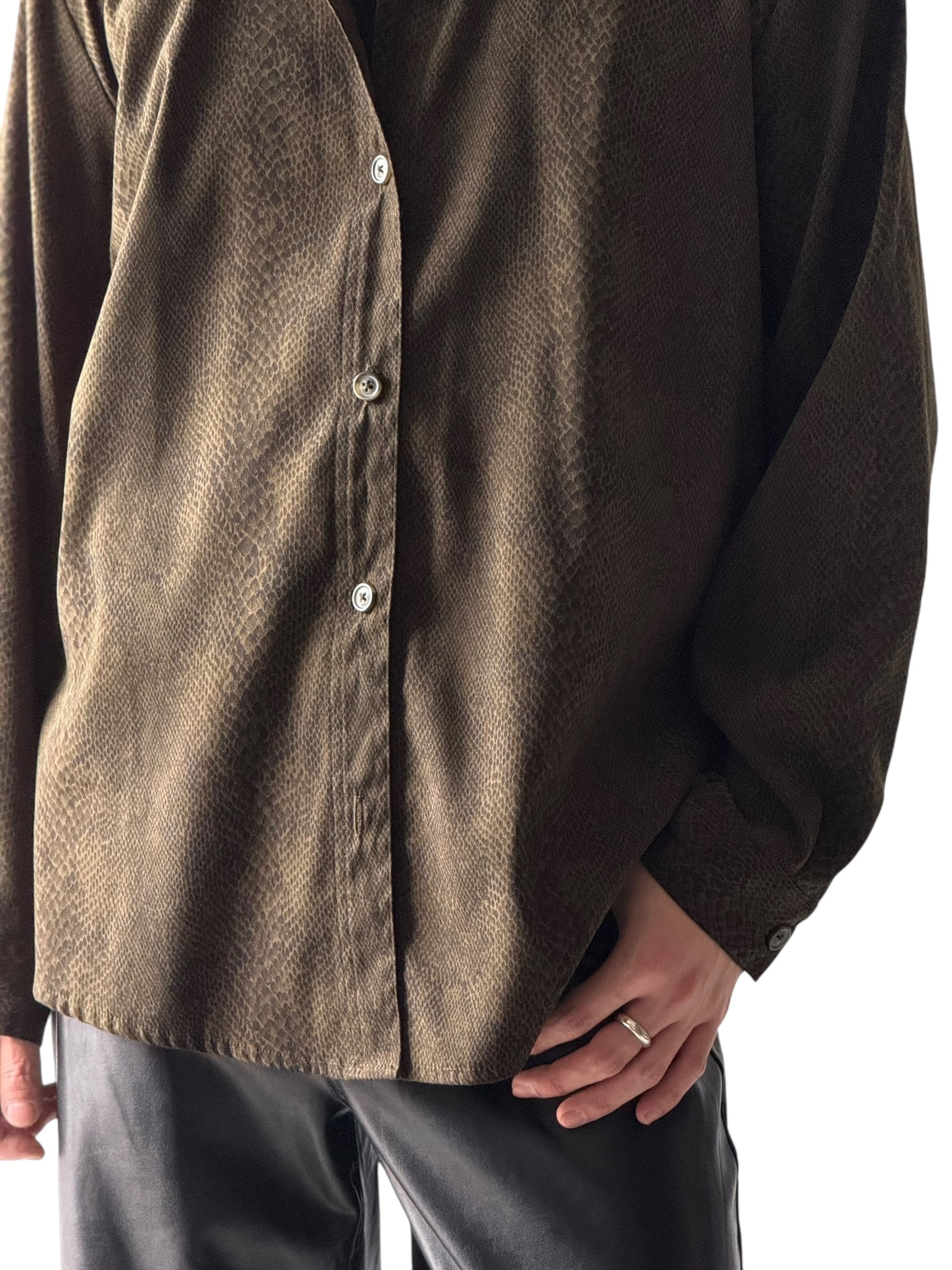 【ERIN LONDON】Python print faux suede shirt / Khaki