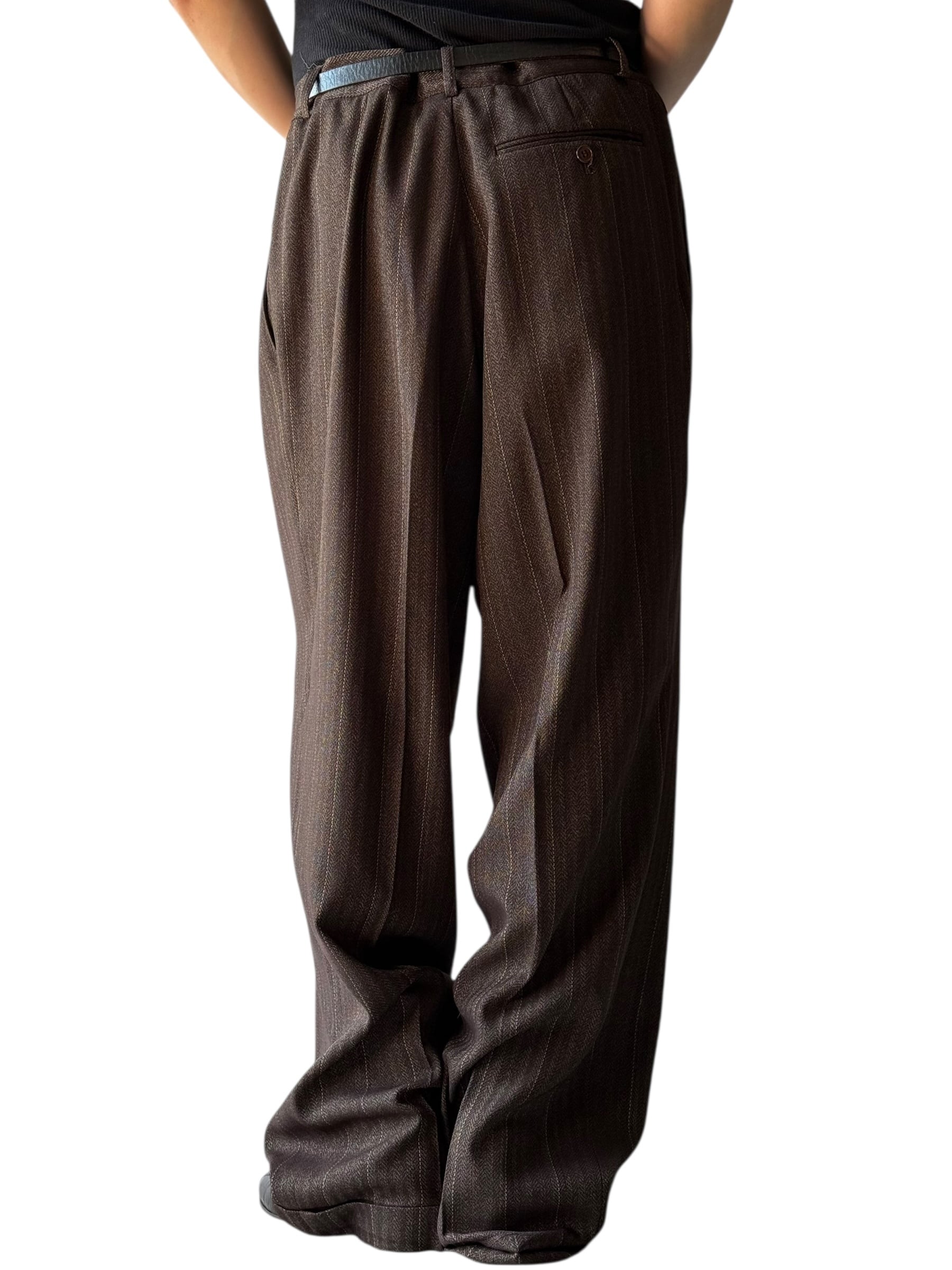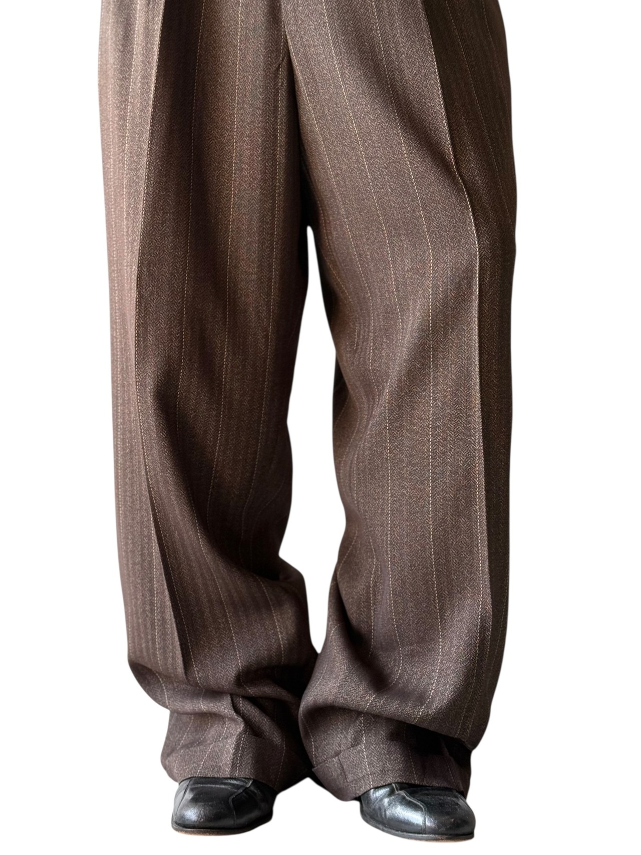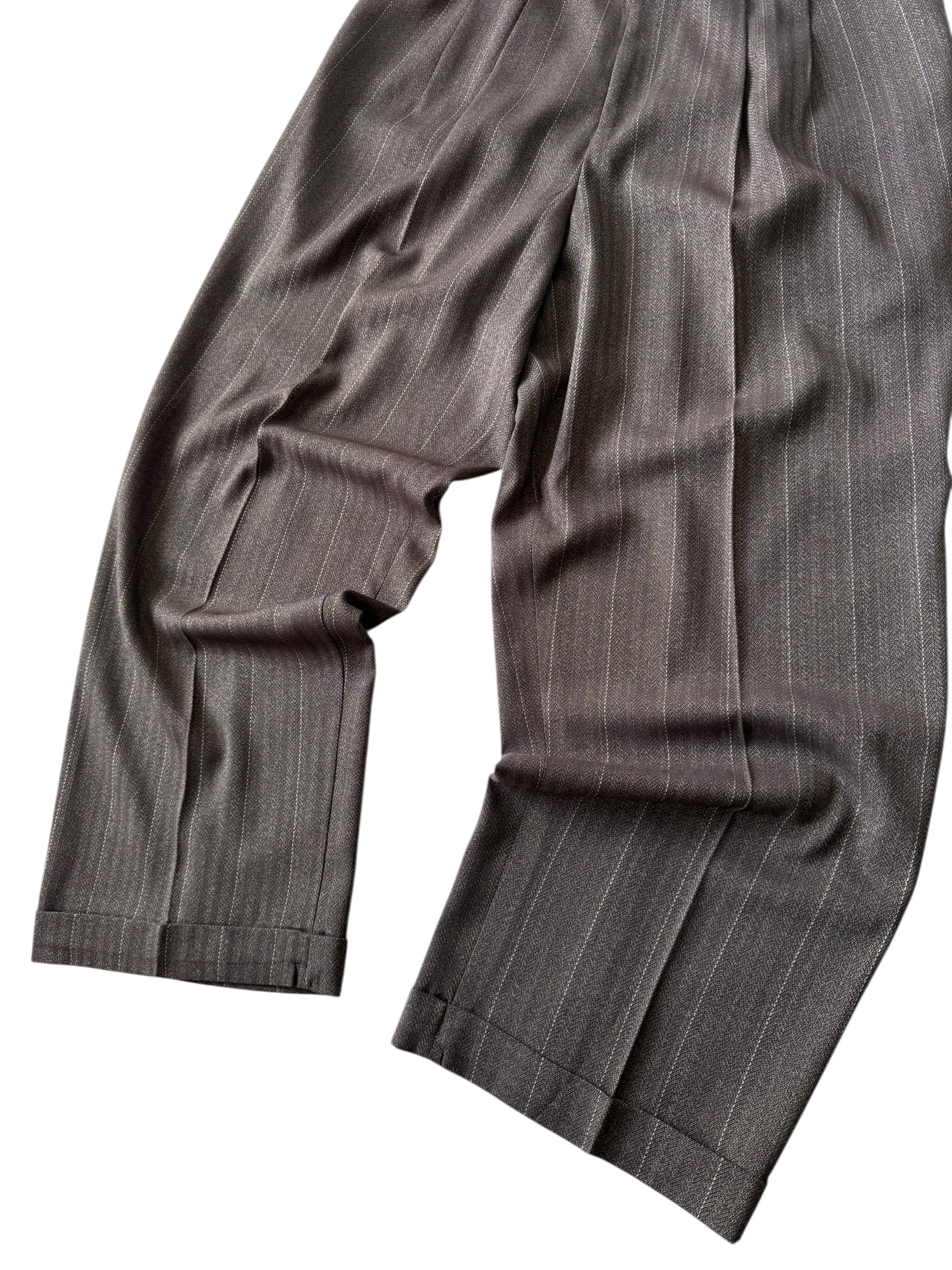 【CARMEL ZHAO】 vtg Weaving stripe puttern Wide tuck slacks