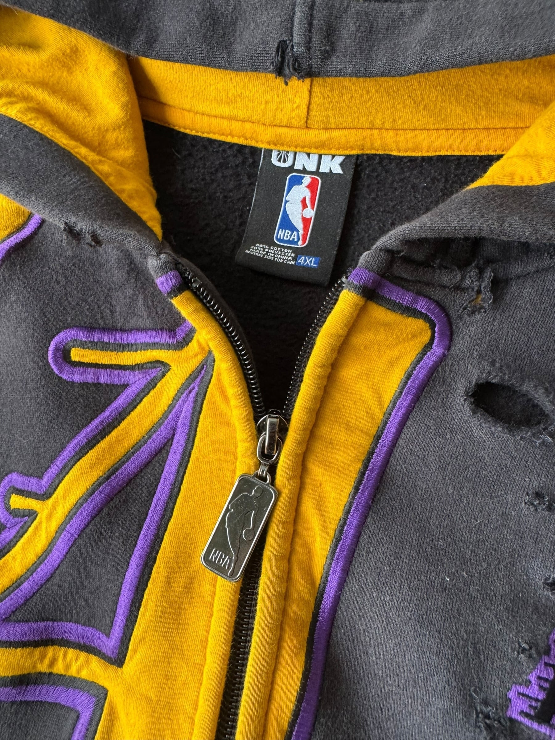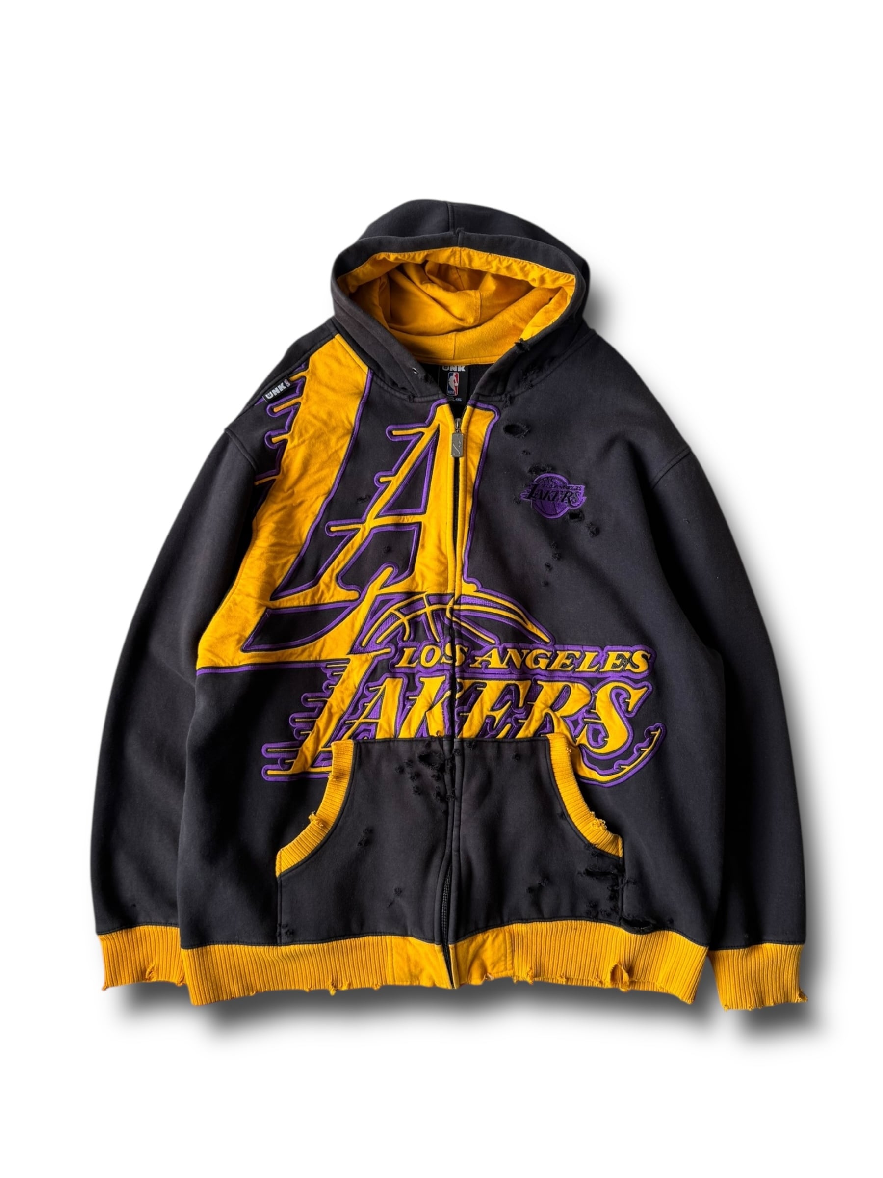 ♾UNK NBA♾ "LAKERS" design crushed big logo design zip up hoodie size4XL