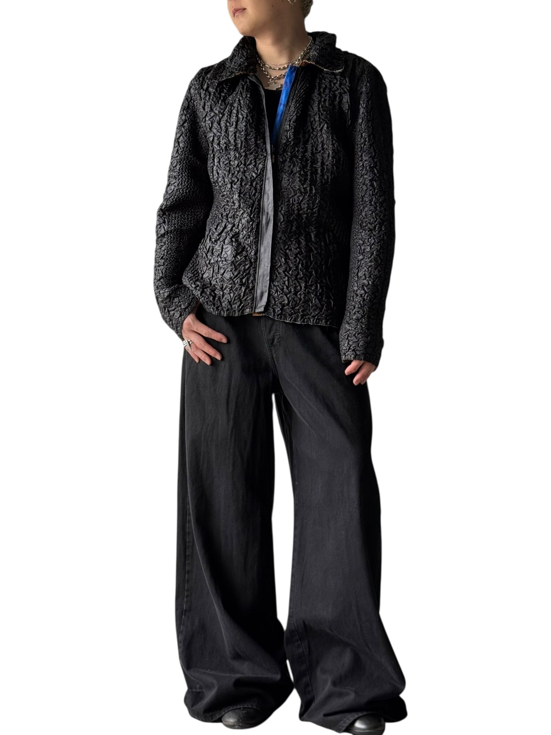 一定間隔でシワ加工を施した抜群にモードな雰囲気溢れでたお洒落デザインが目を引くジャケット!!!