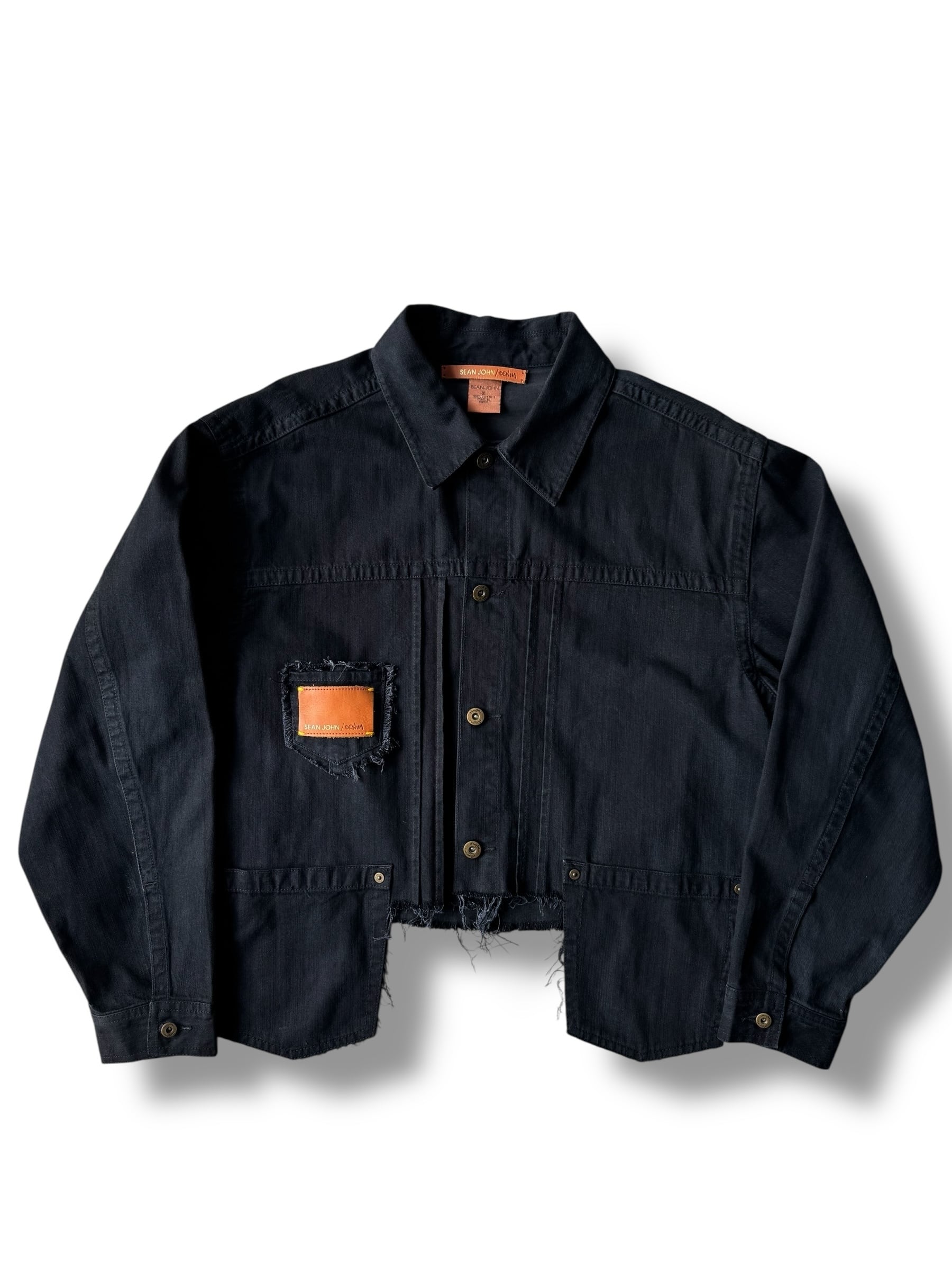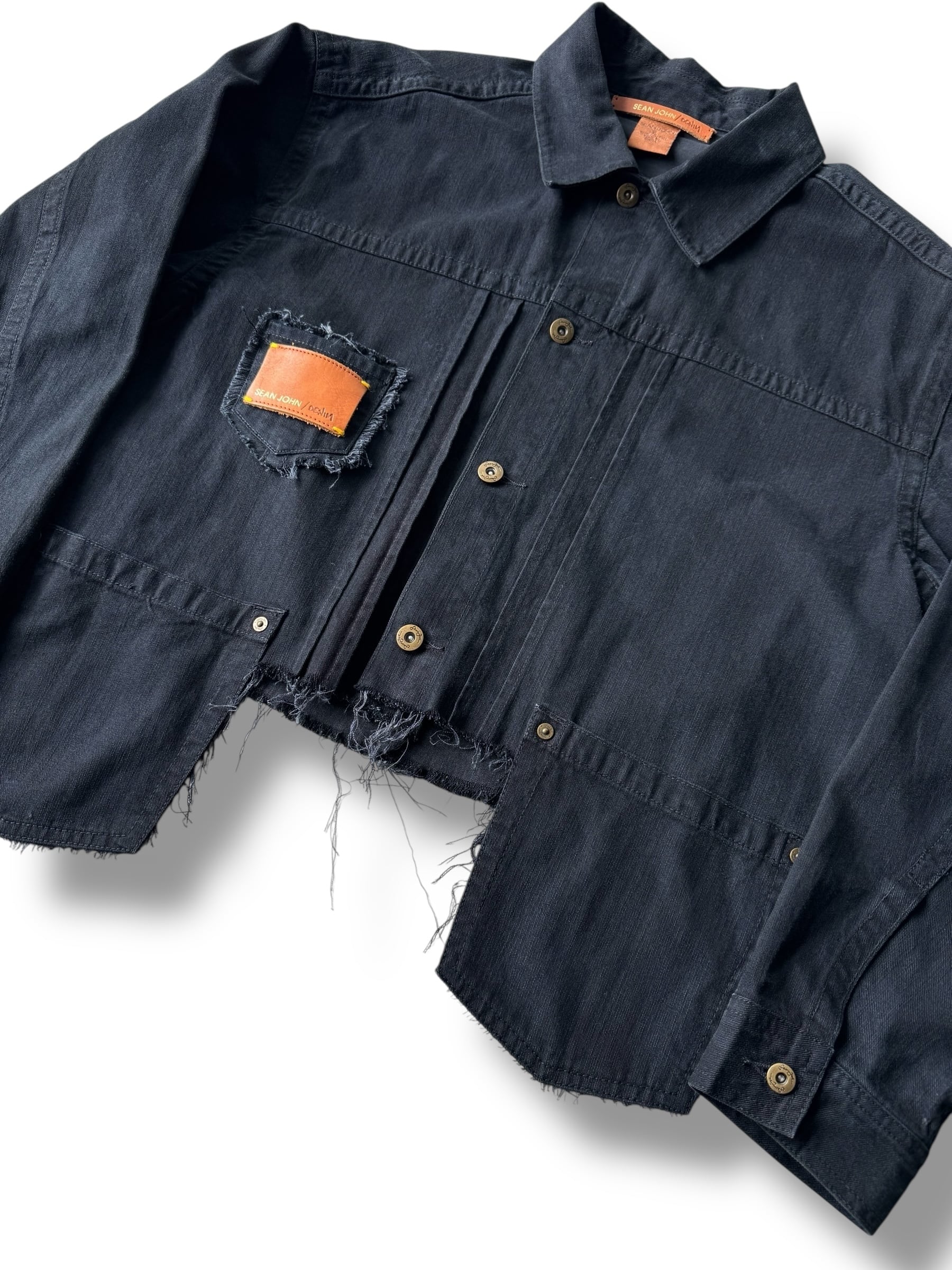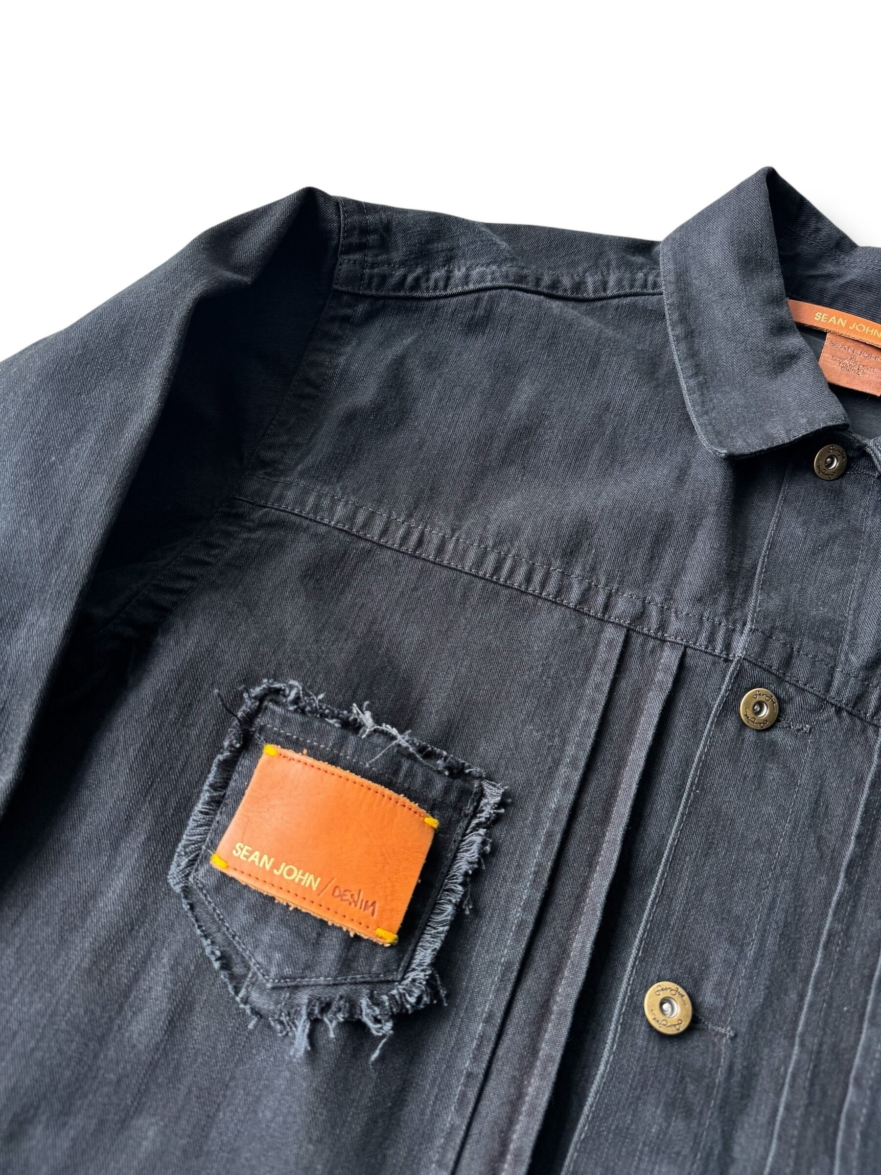 ♾️SEAN JOHN♾ custom design black denim tracker jacket size XL