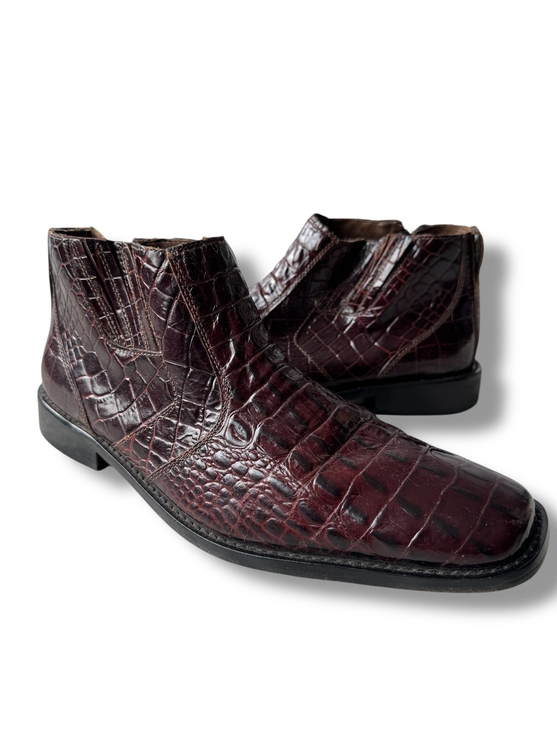 ♾STACY ADAMS♾ Crocodile design leather square heel boots size 10M