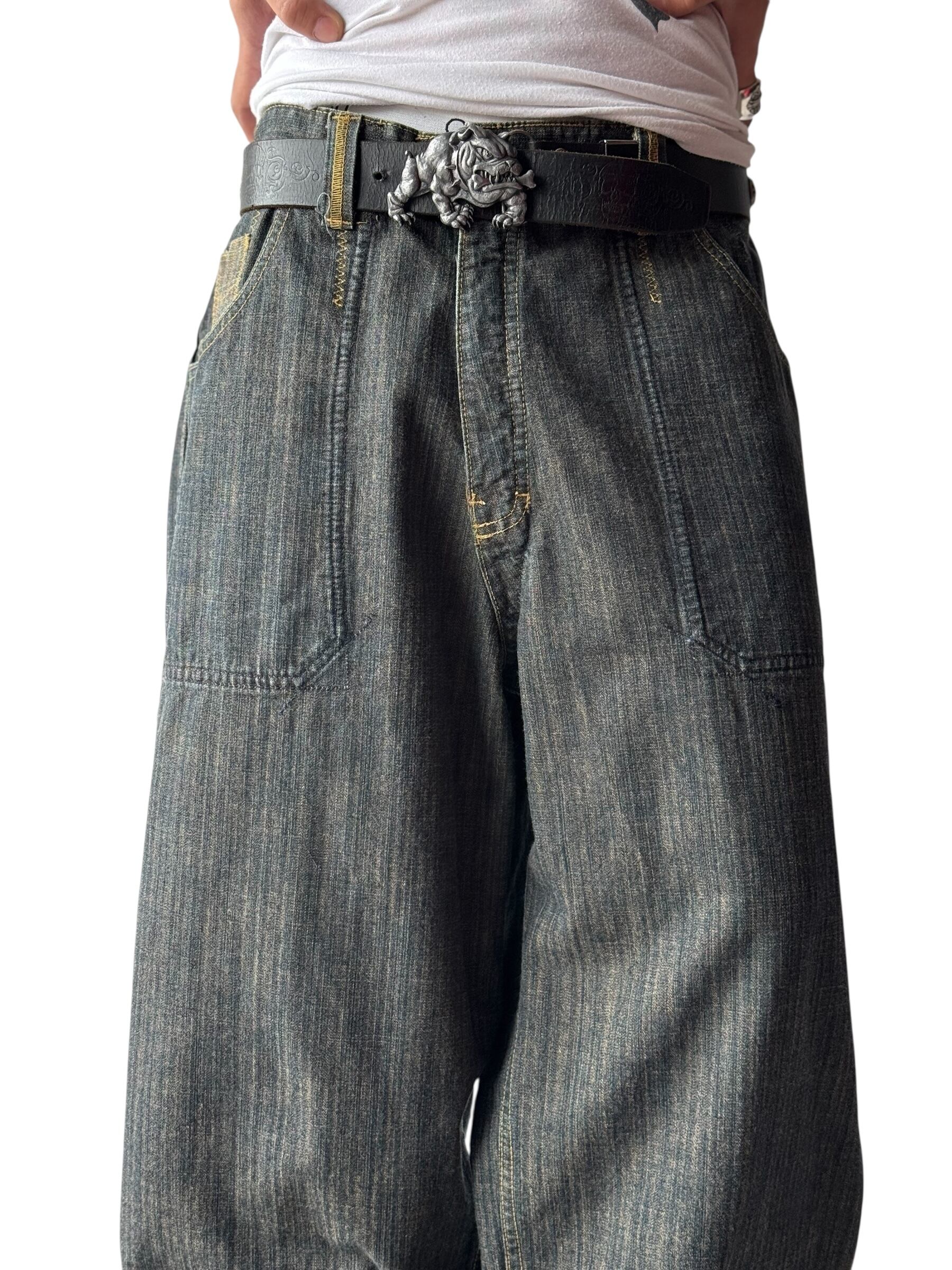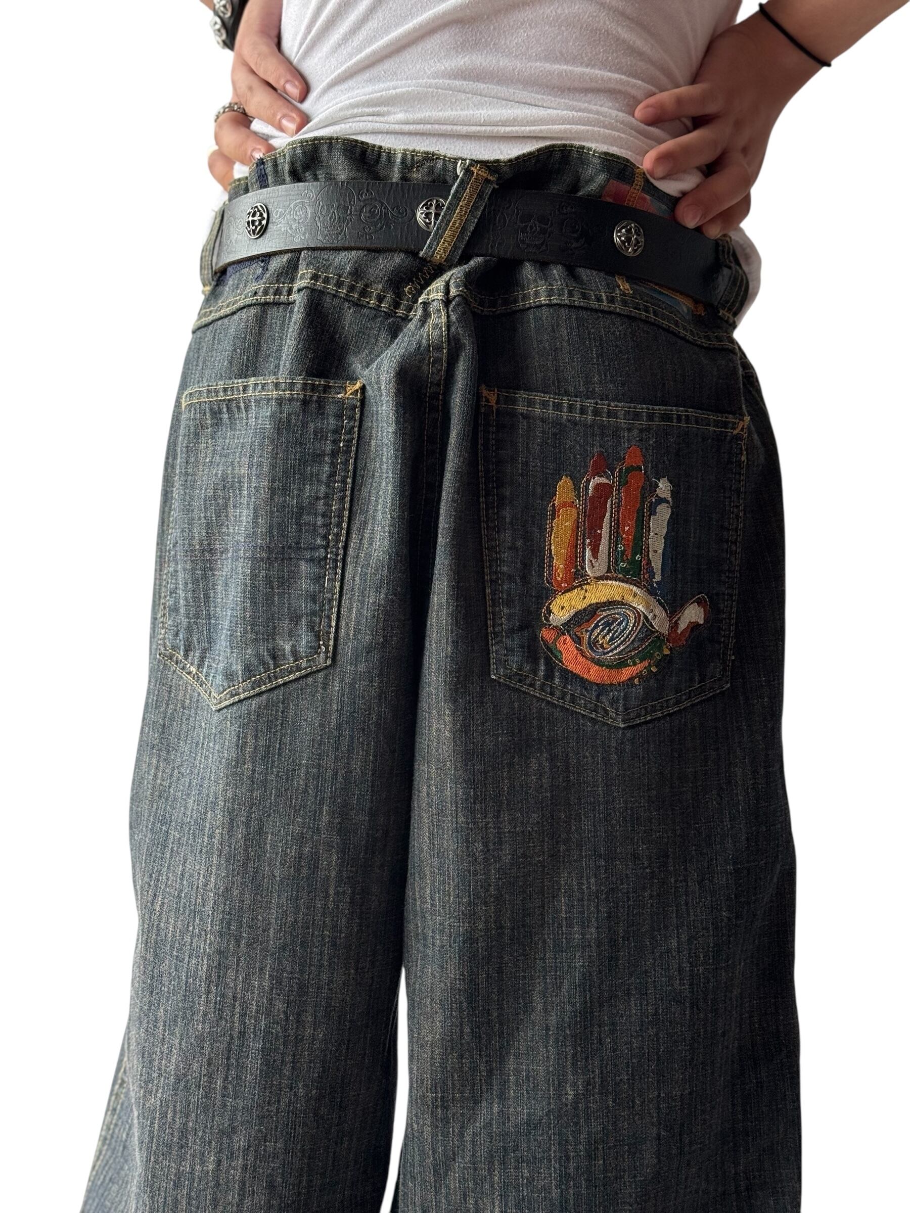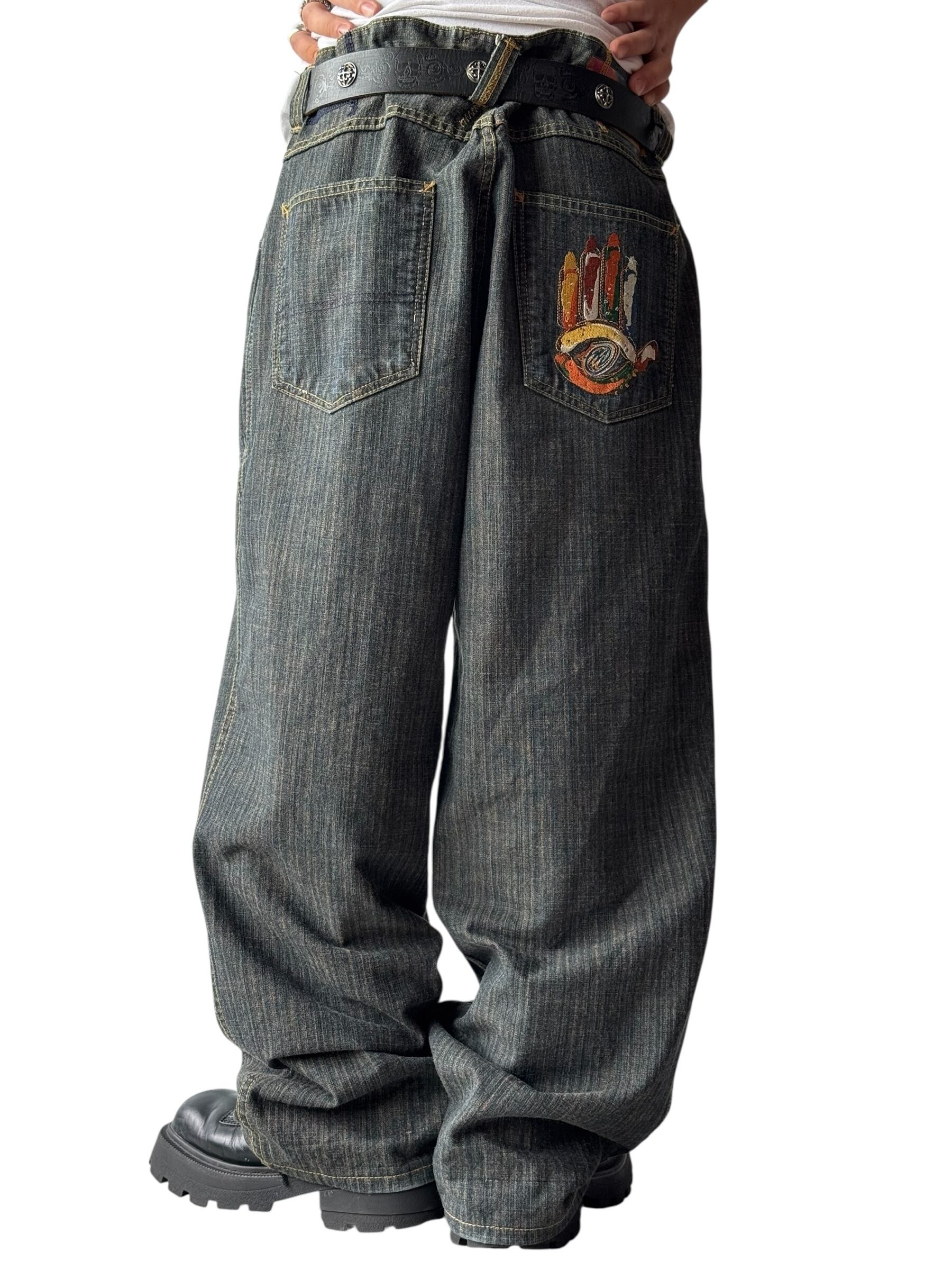ヒップポケットに描かれたデザインも特徴的でインパクト⭕️なので、今っぽいスタイリングにも絶対取り入れたい一本✨