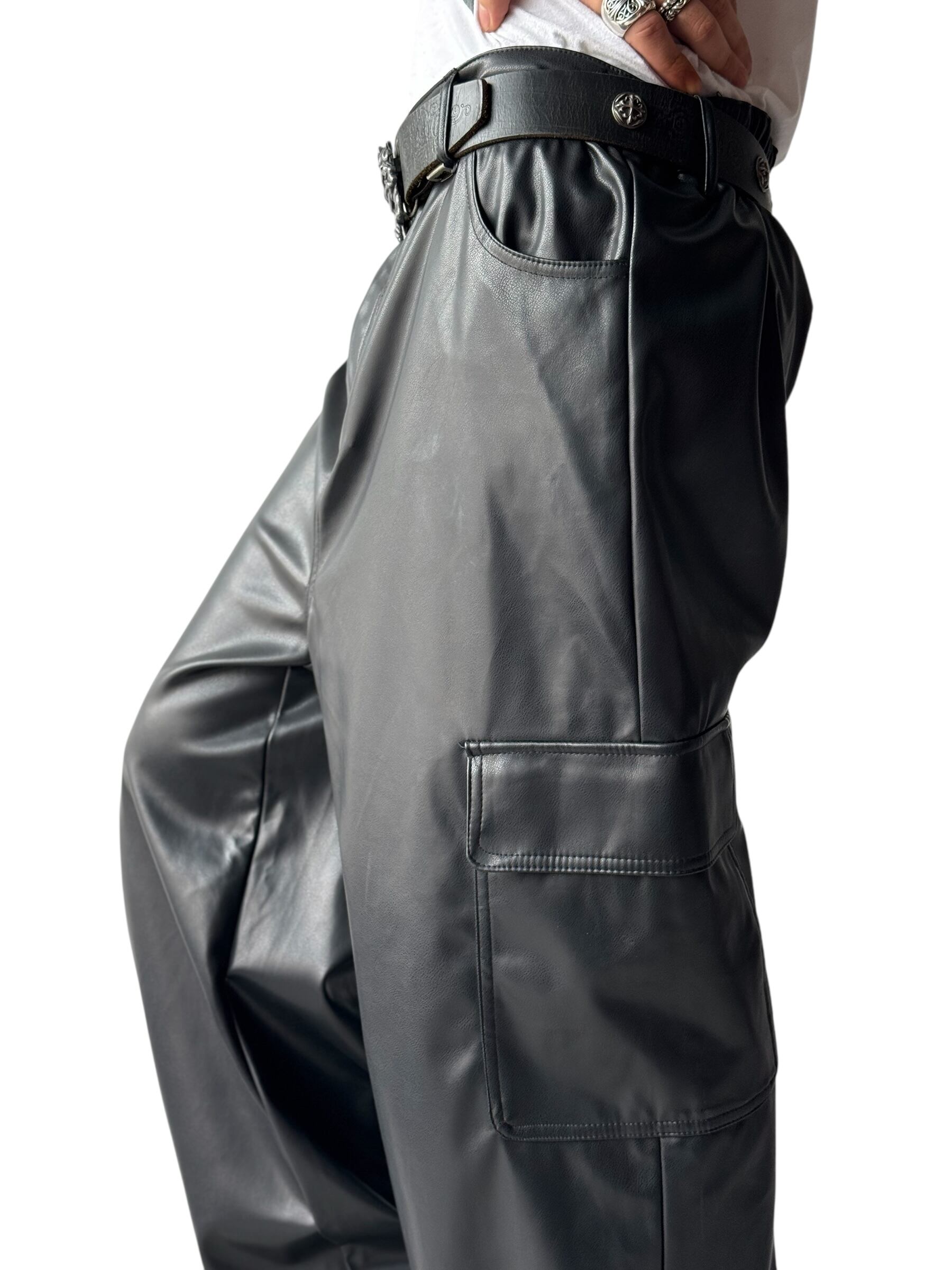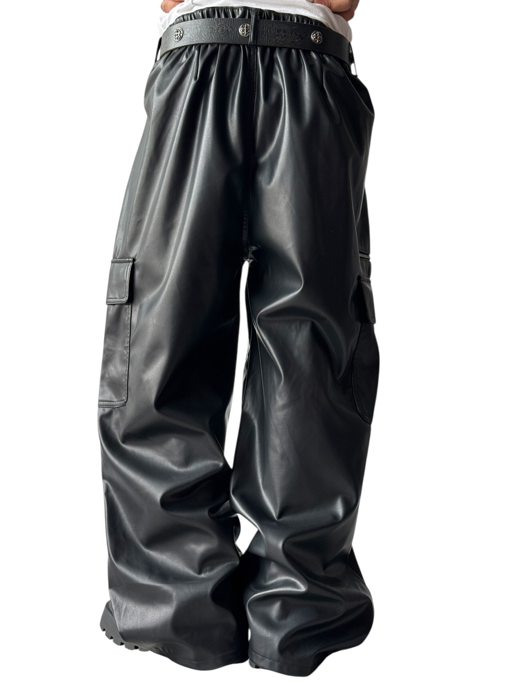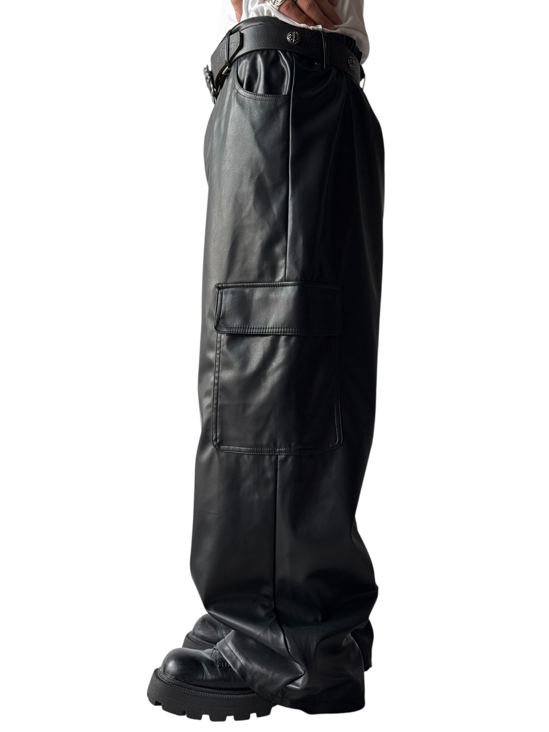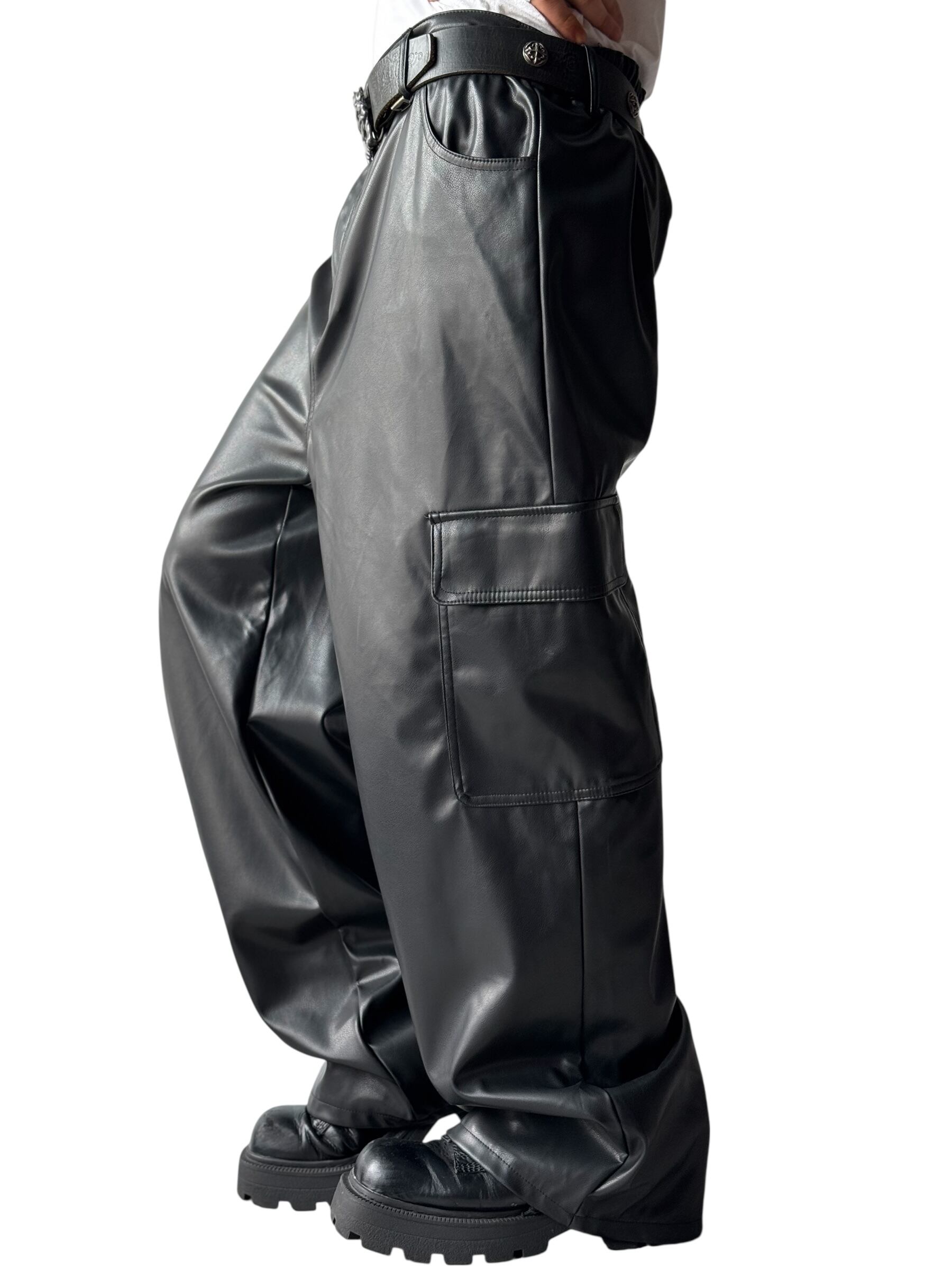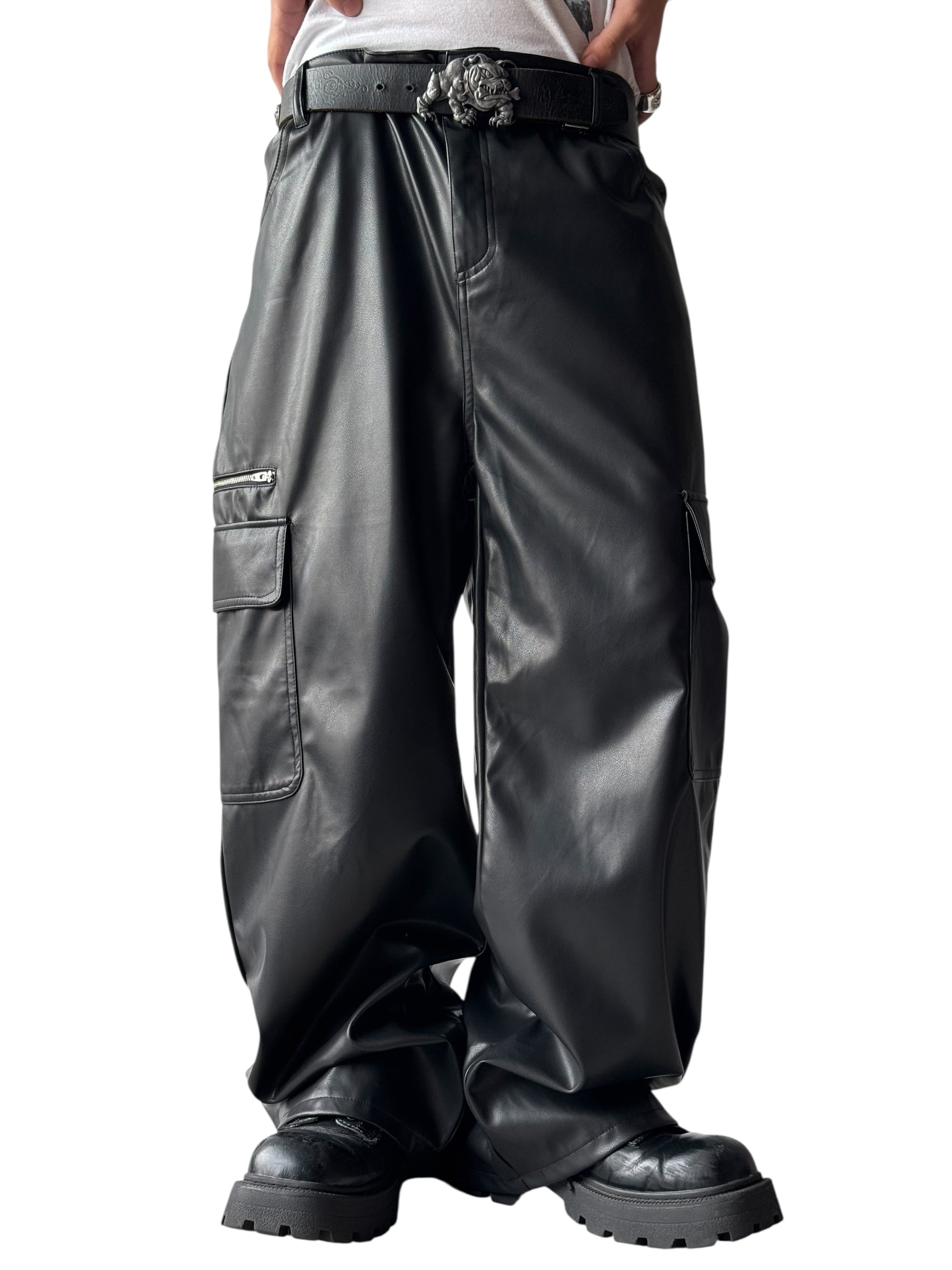 ♾vanilla star♾ side cargo pockets design pu leather pants