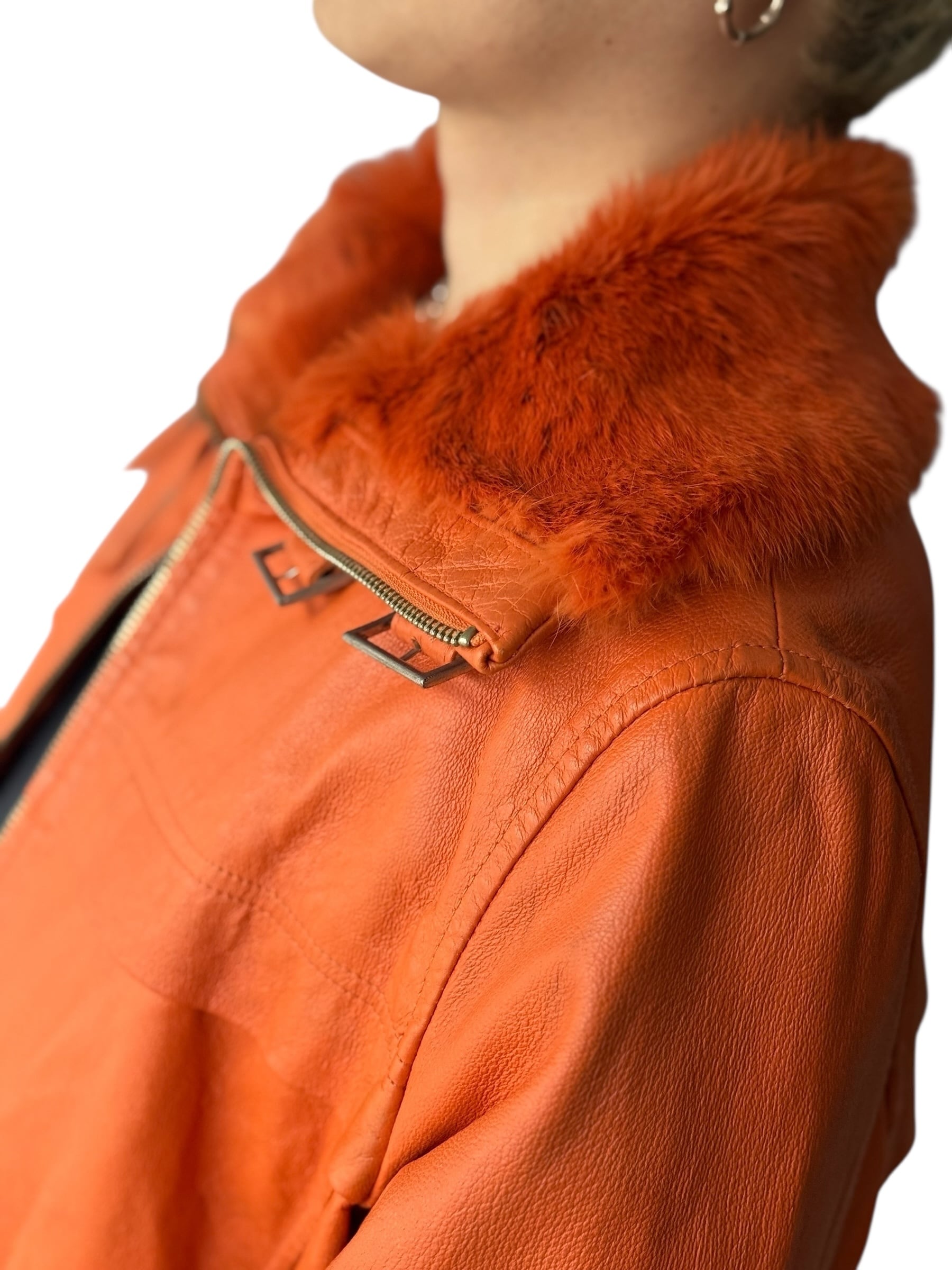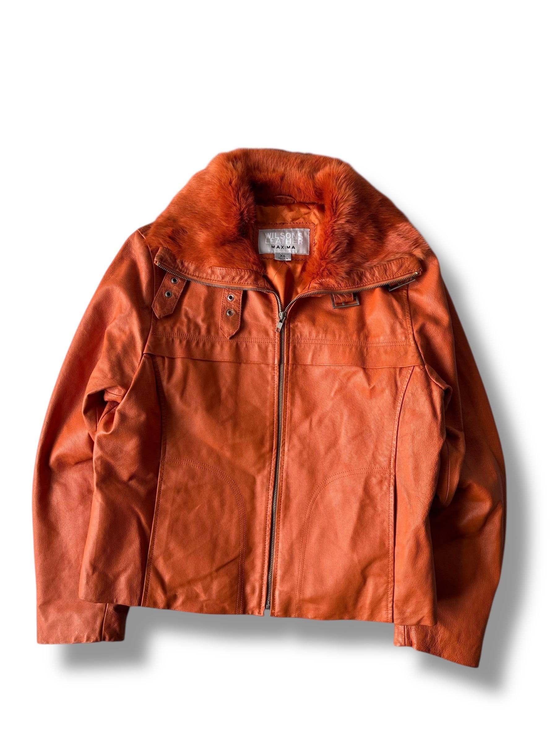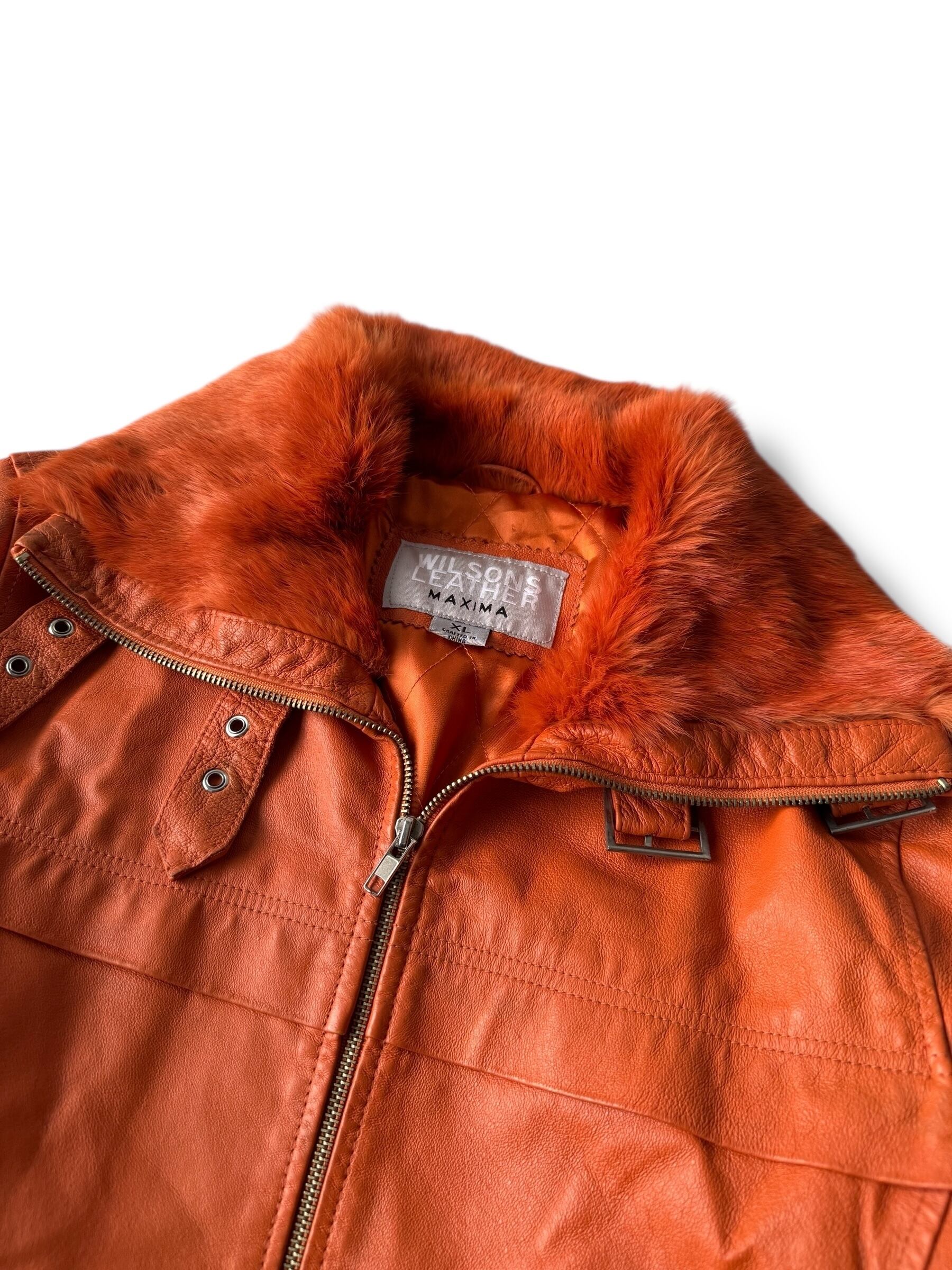 ♾WILSONS LEATHER♾ B-3 type rabbit fur switching leather jacket size XL ・ 激レアパワーオレン