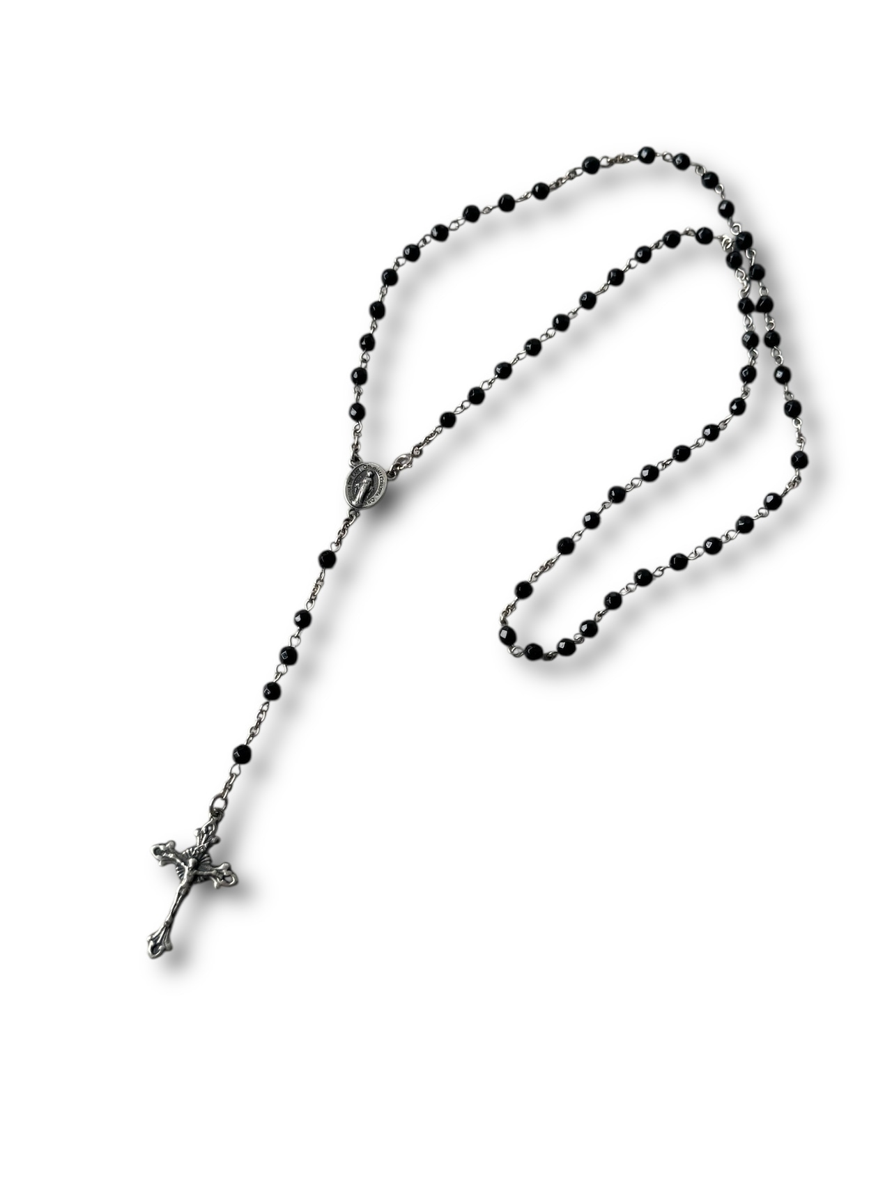 silver and beads rosary necklace