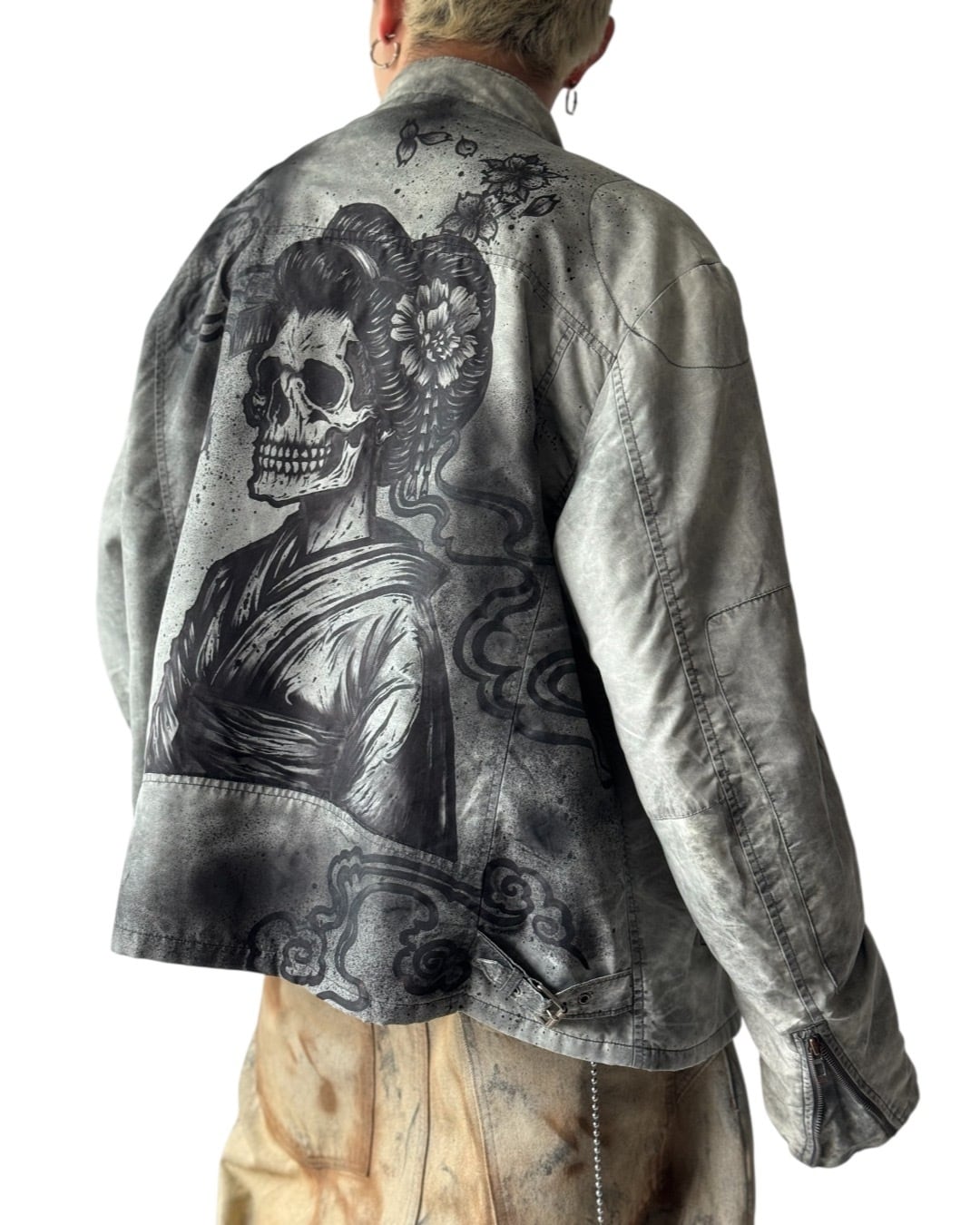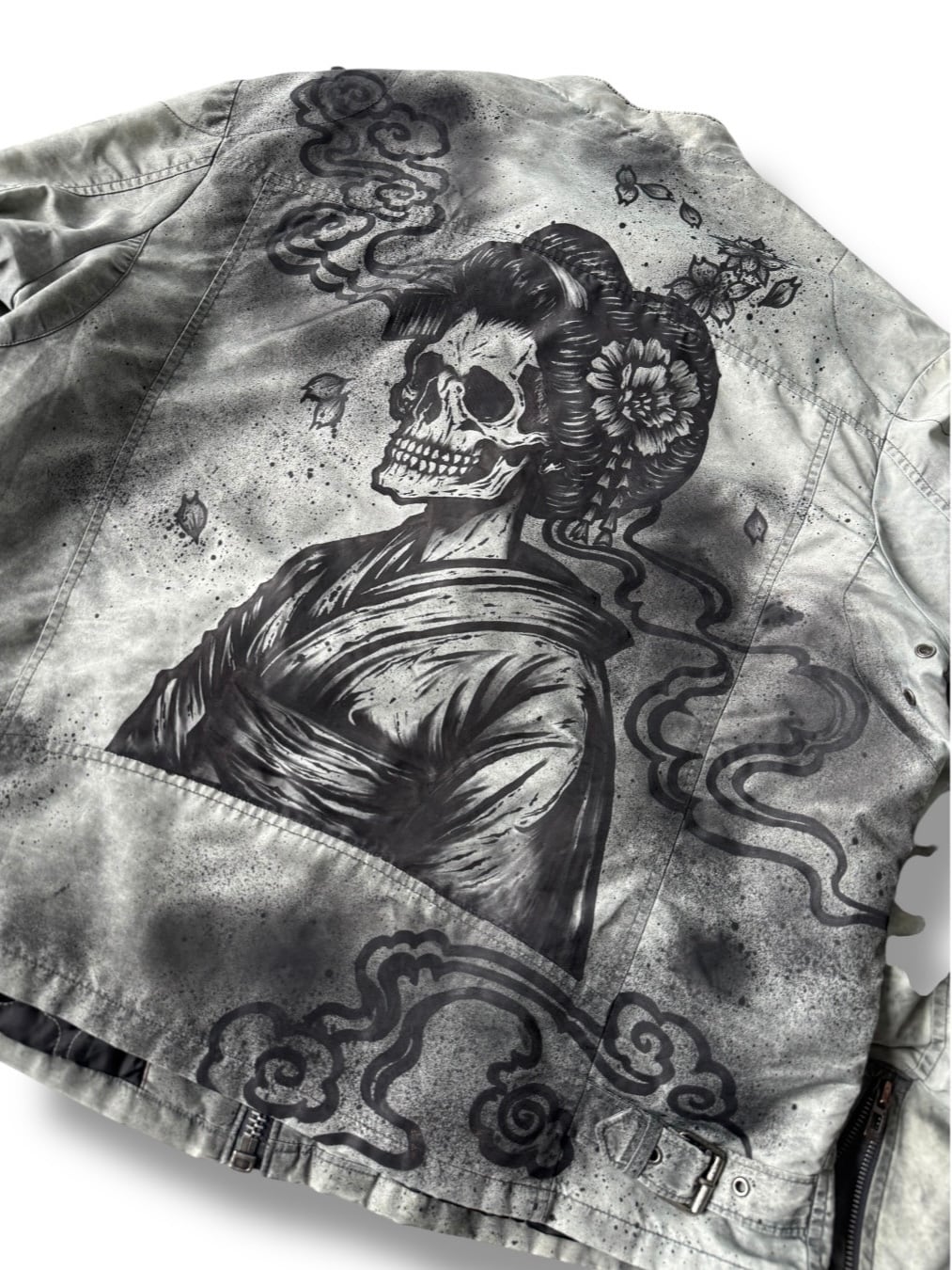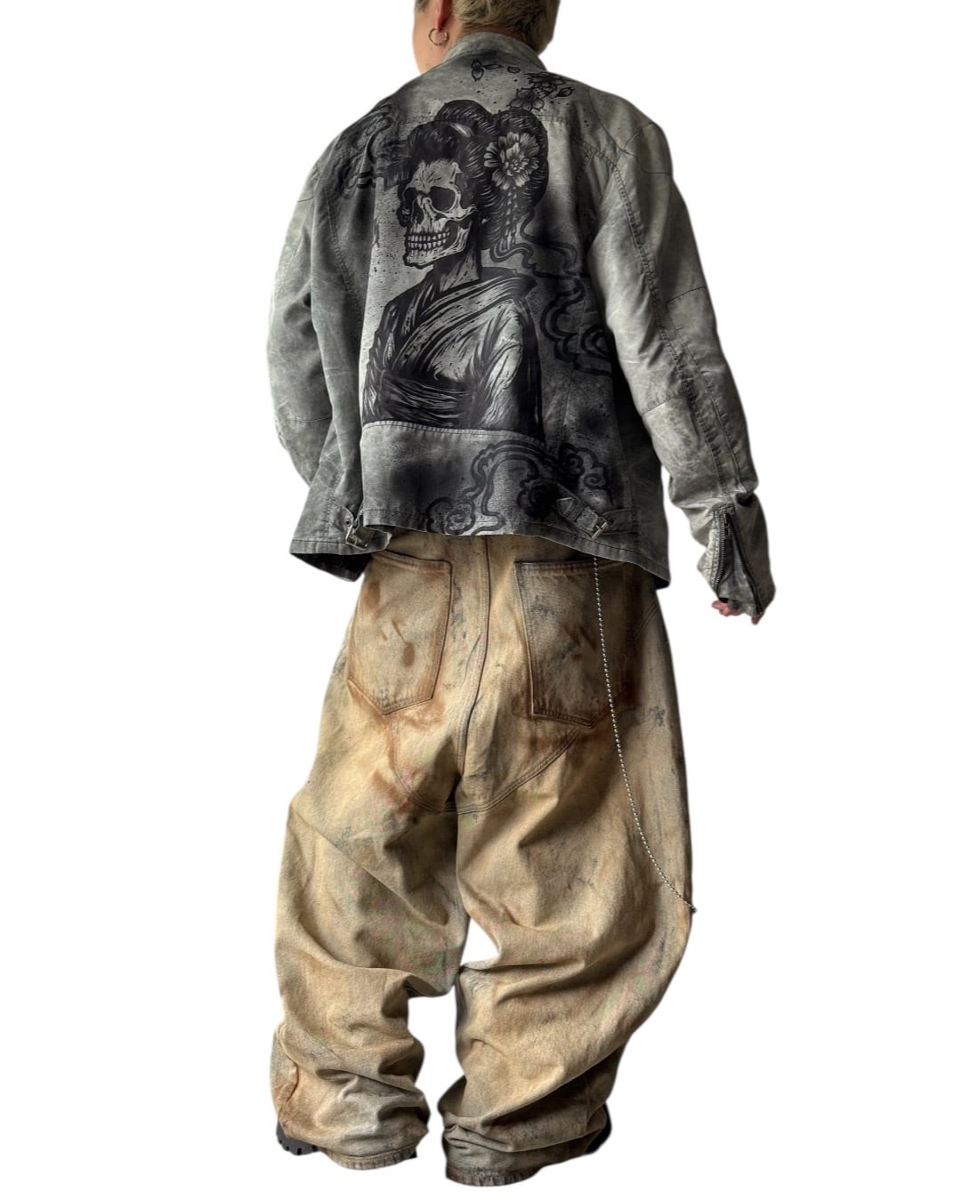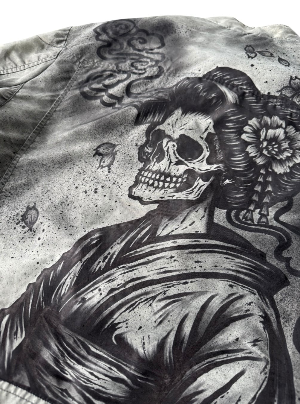 ウォッシュ加工味のある雰囲気抜群なボディに描かれたインパクト抜群なスカル舞妓がペイントされたオンリーでクールな仕上がりが最高な1着✨️
