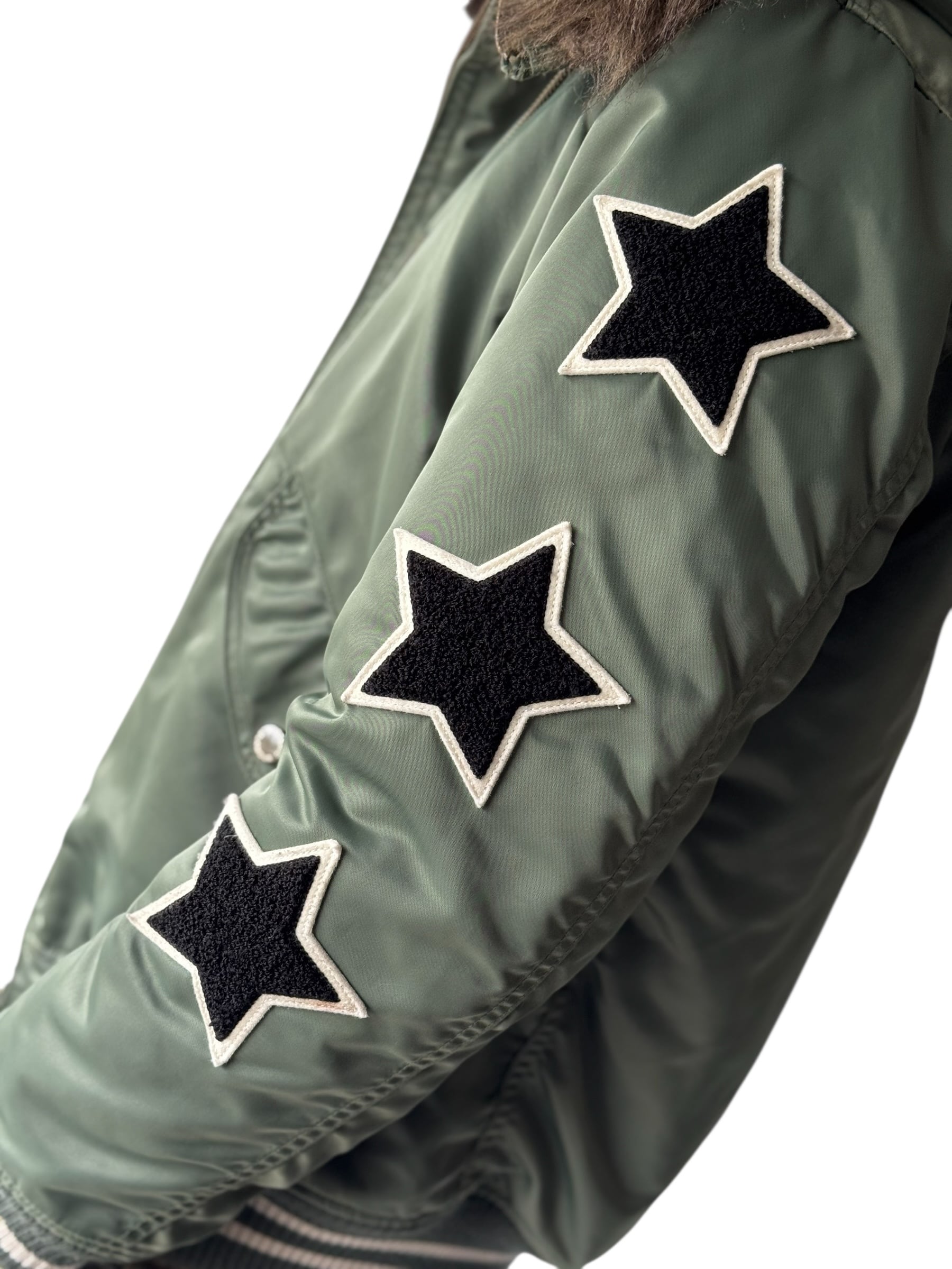一世を風靡したN-2Bタイプのジャケットにヒステリックグラマーらしい袖に星のパッチと背中にブランドのパッチ付いておりめちゃくちゃキュート✨️✨️