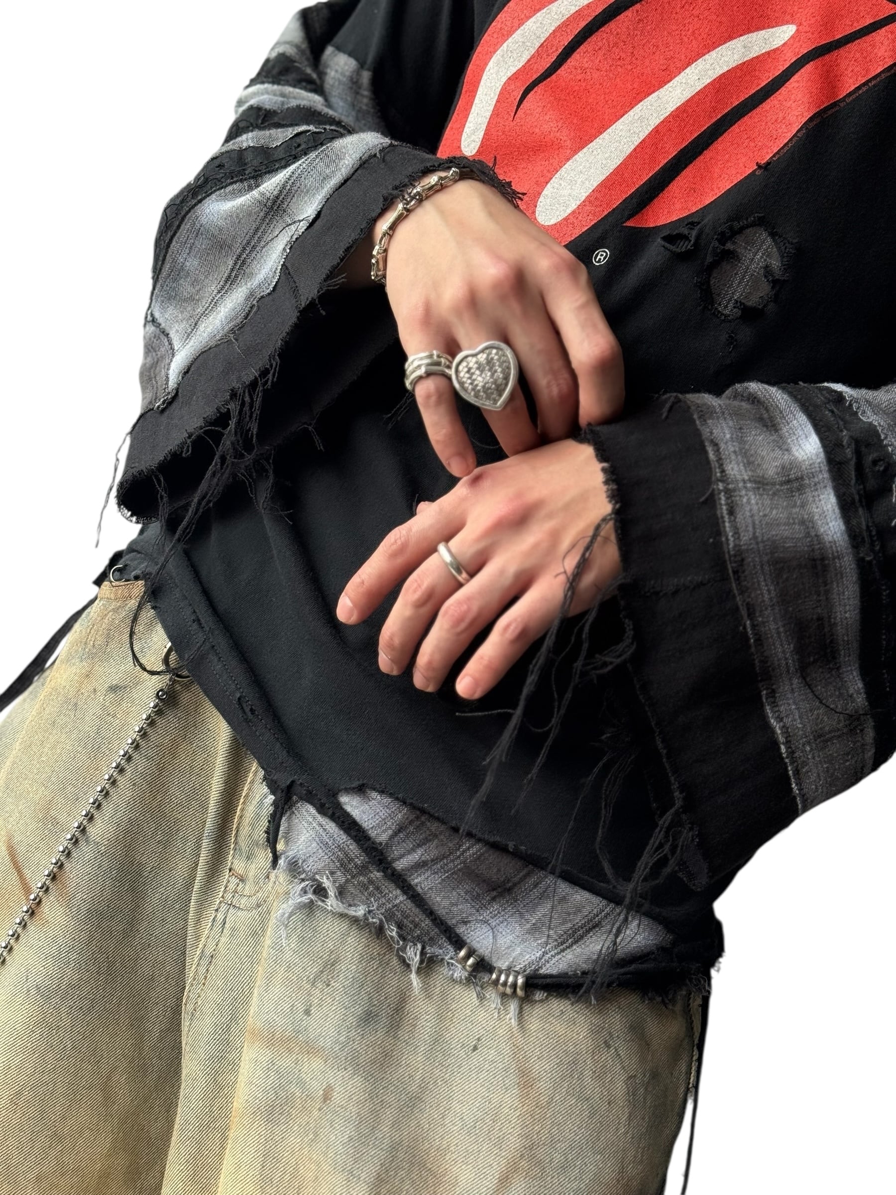 ♾ORIGINAL REMAKE♾ " Rolling Stones " remake custom patchwork design long sleeve