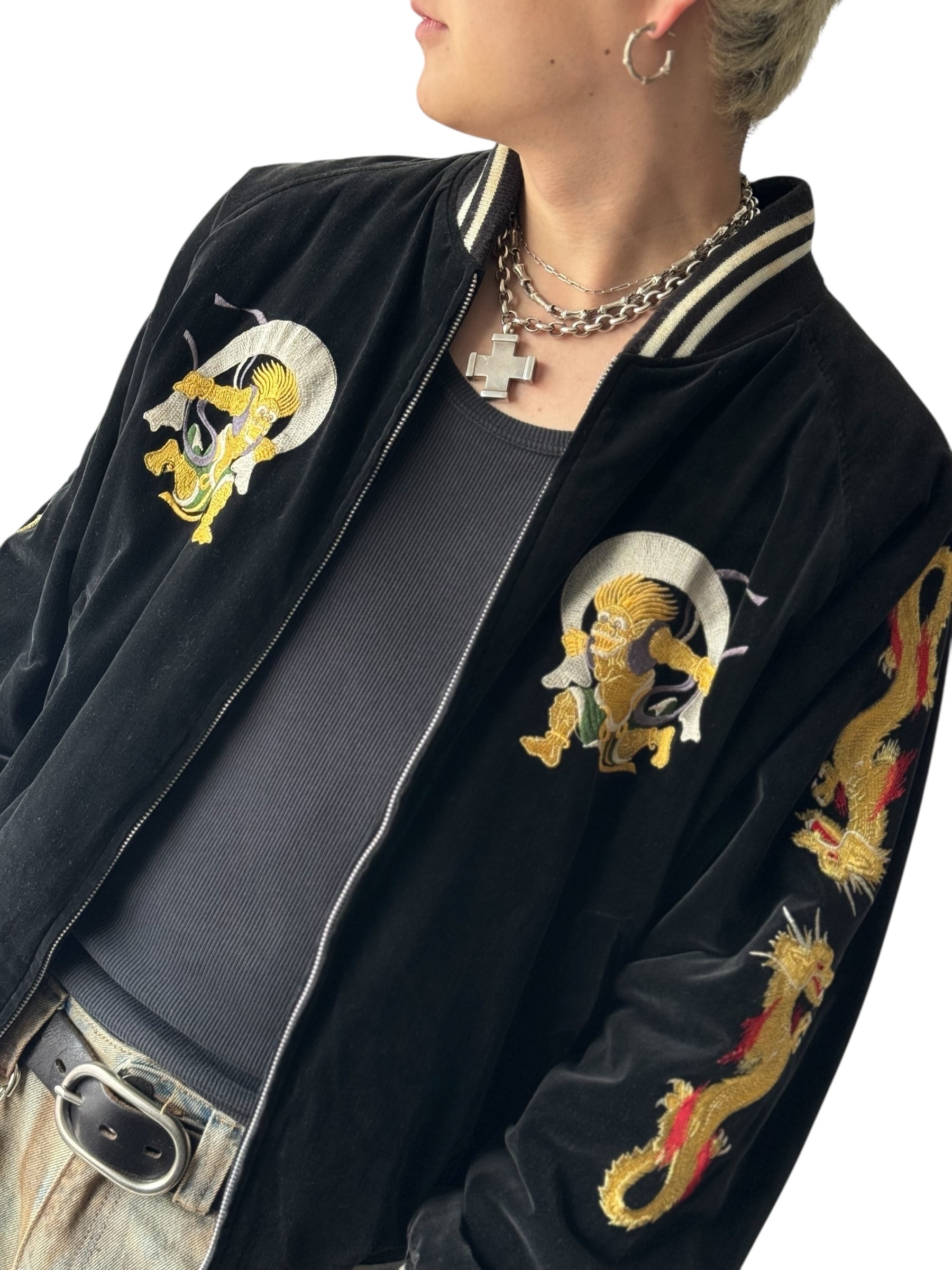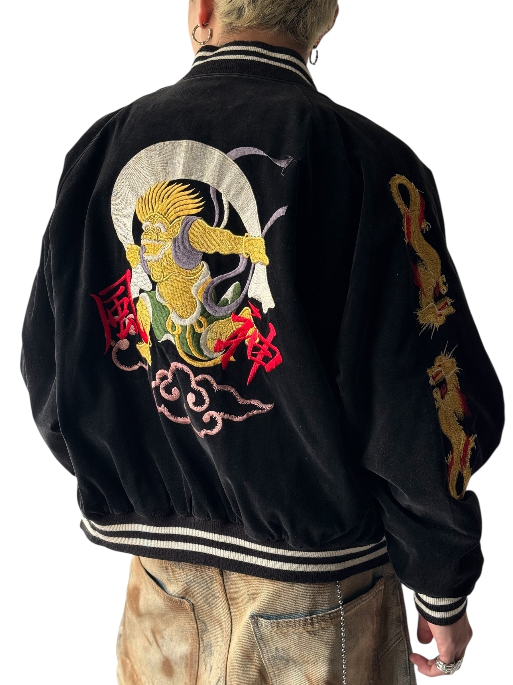♾design used♾ Embroidery velours souvenir jacket "風神"