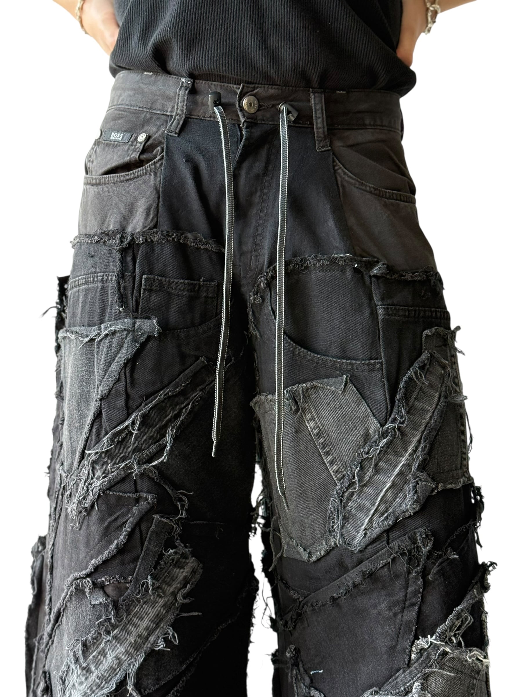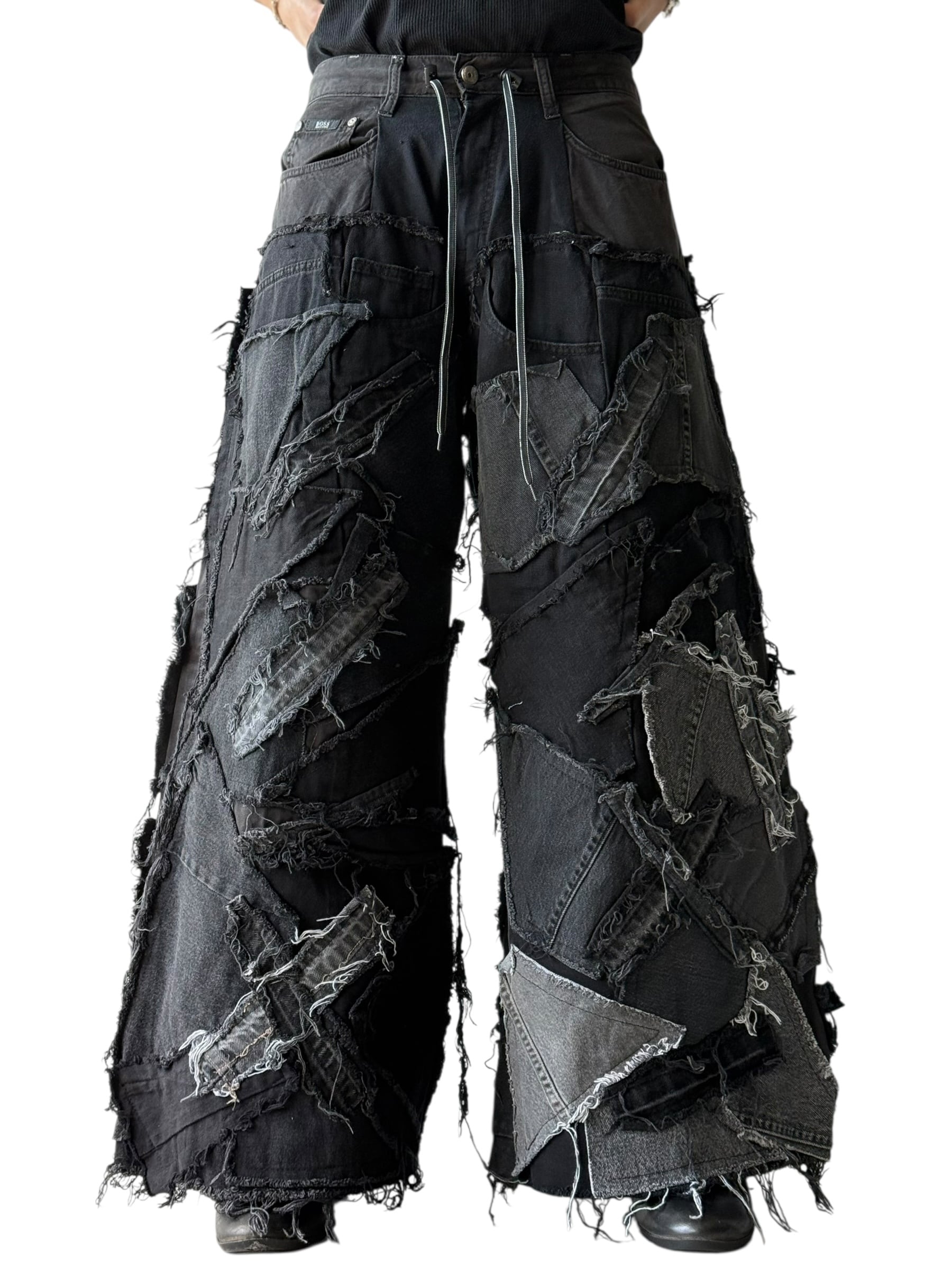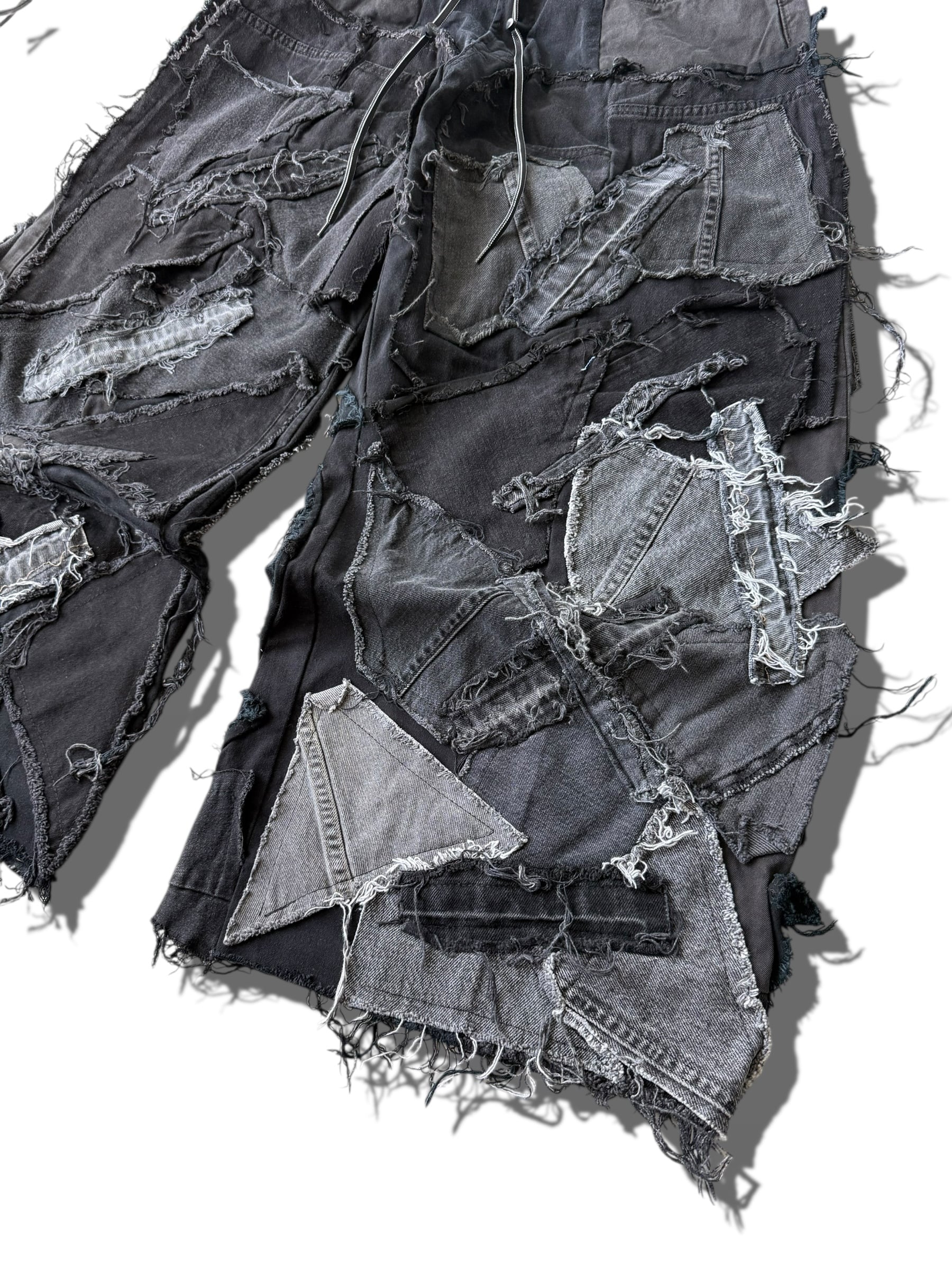 数本のデニムを足して作られているので通常ではあり得ない存在感抜群なメガワイドシルエット⭕️