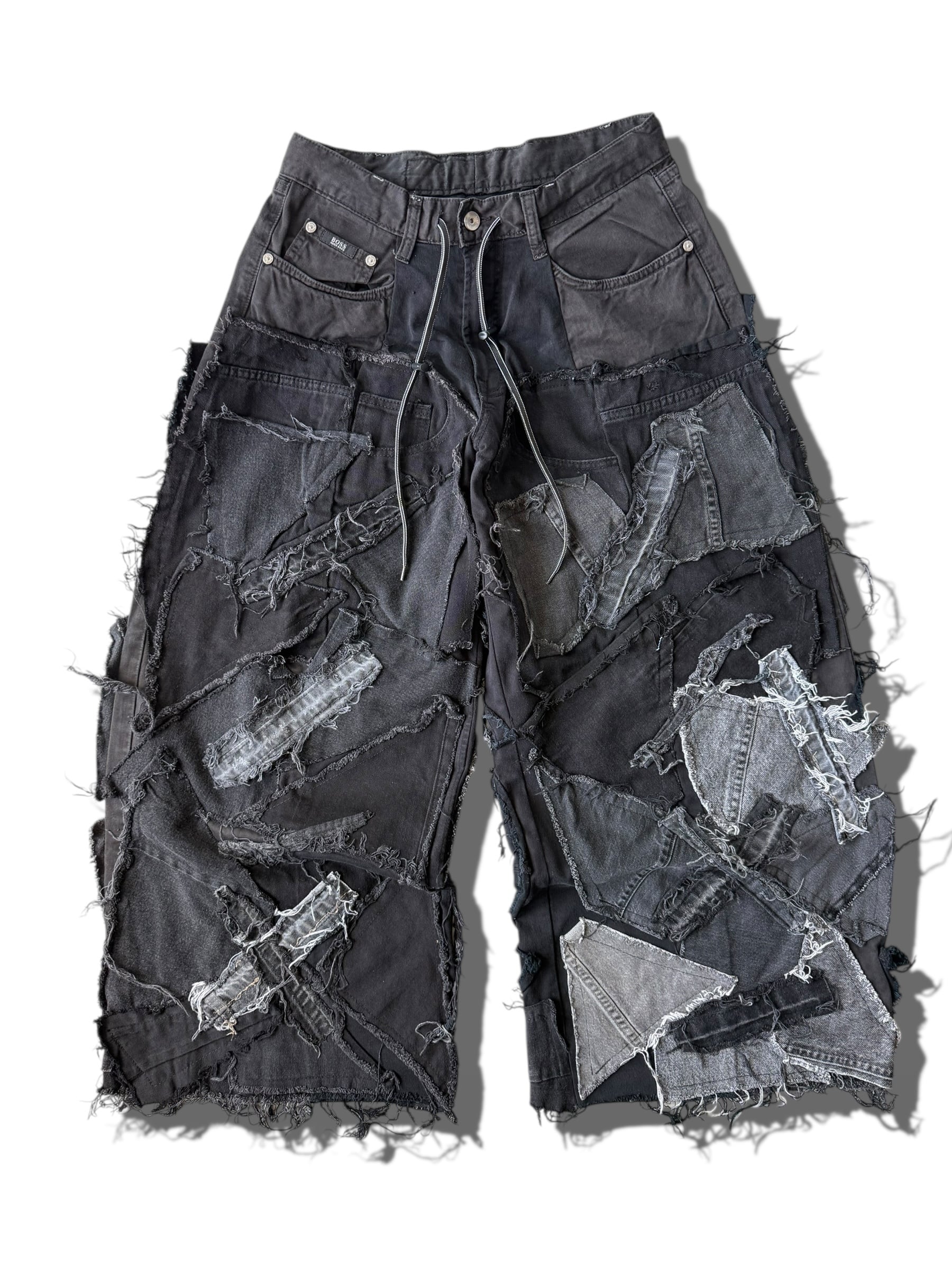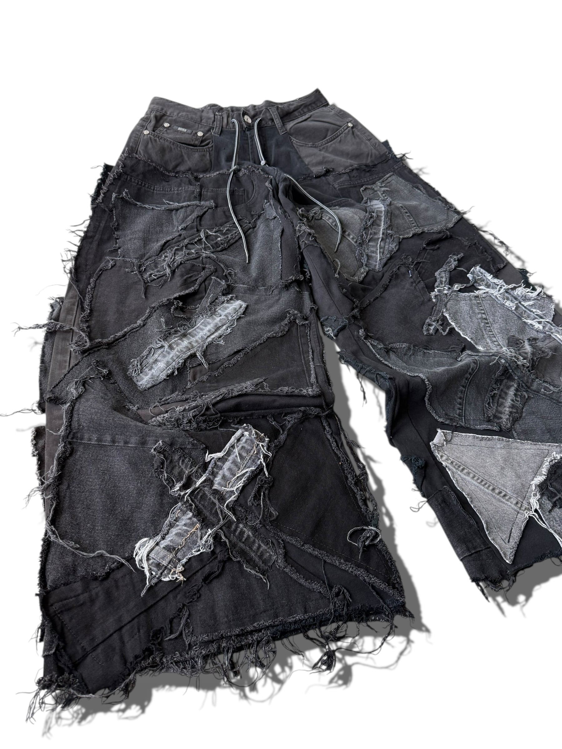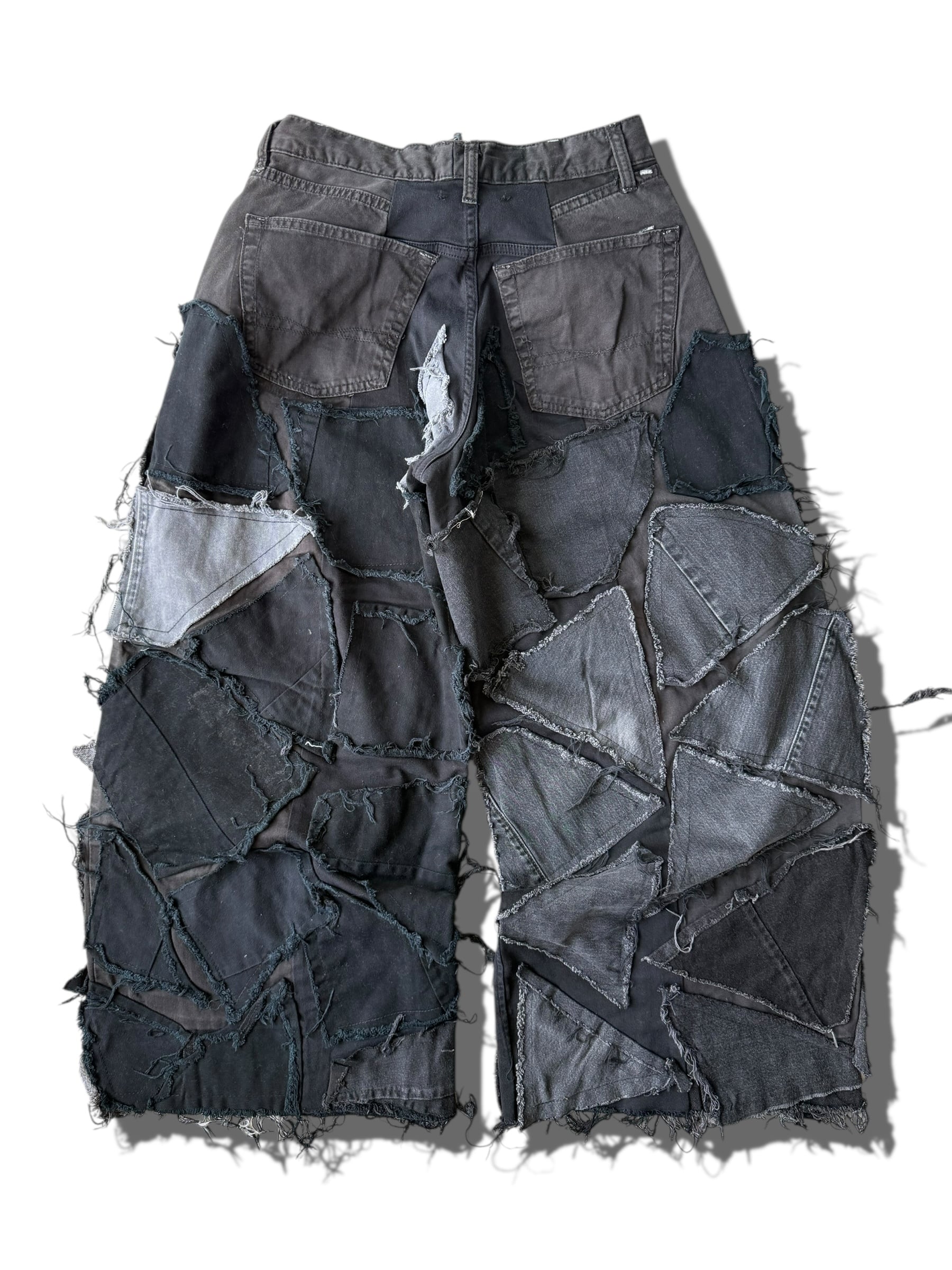 数本のデニムを足して作られているので通常ではあり得ない存在感抜群なメガワイドシルエット⭕️