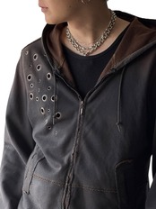 Aged eyelet design short zip hoodie