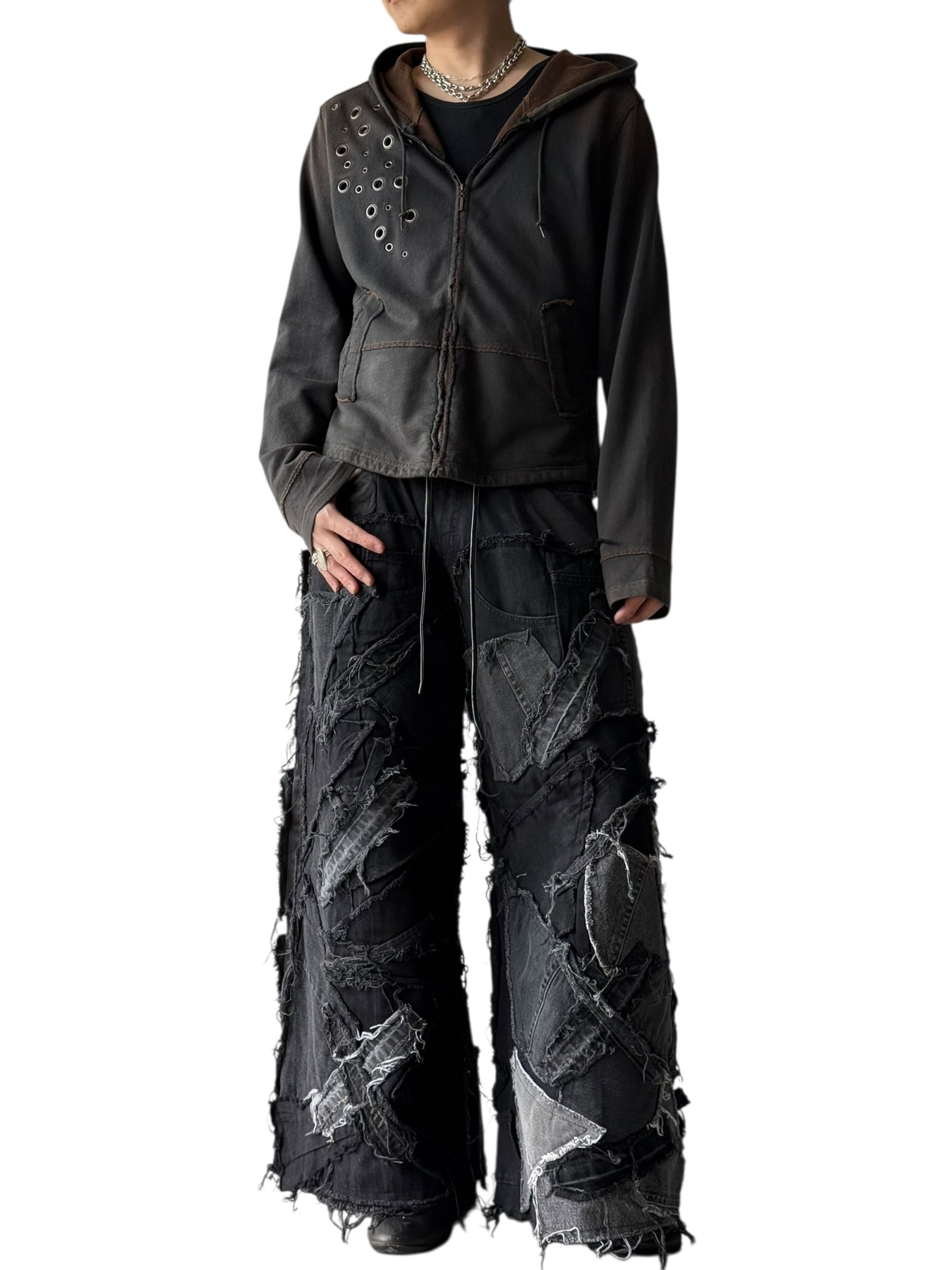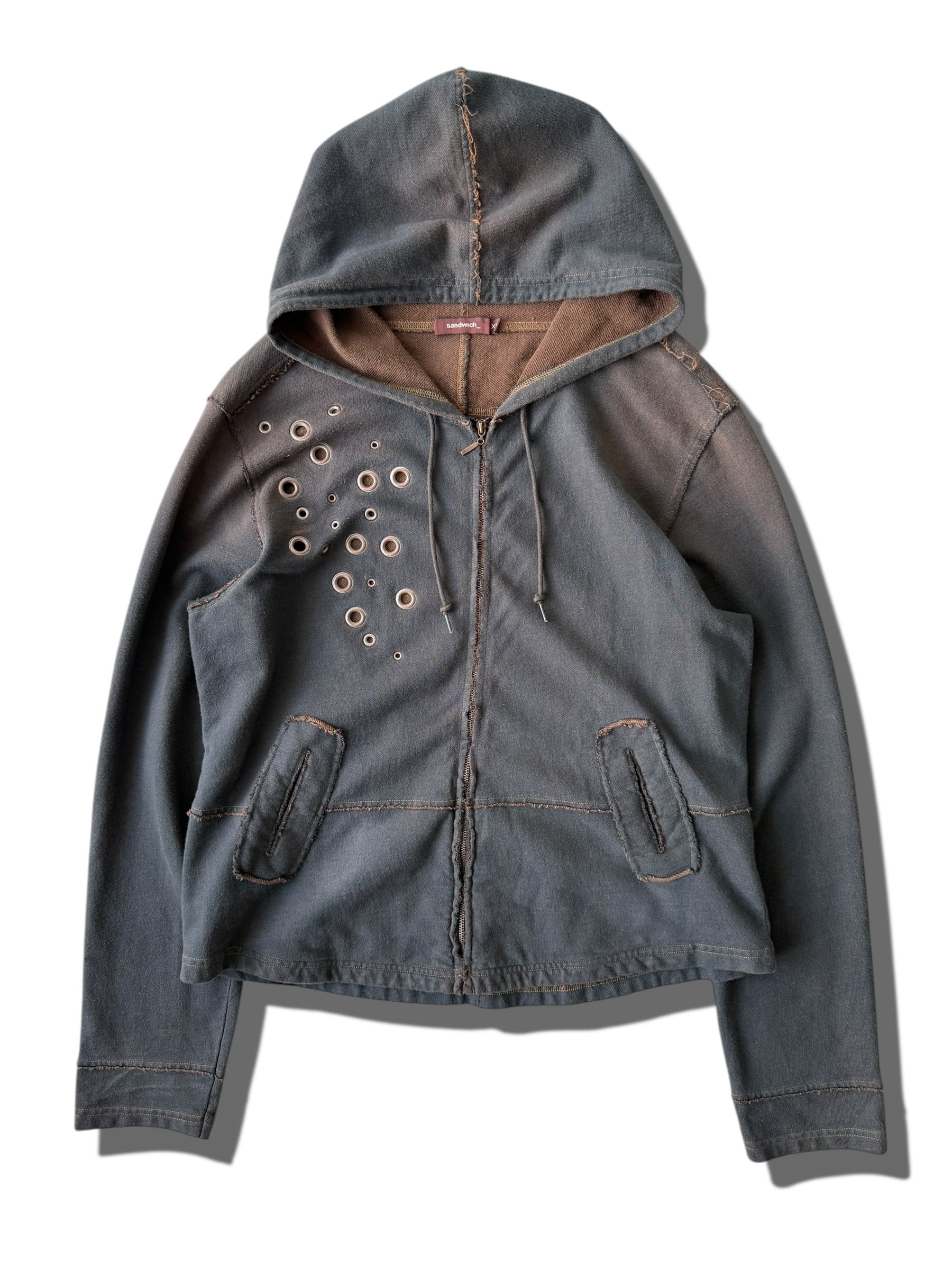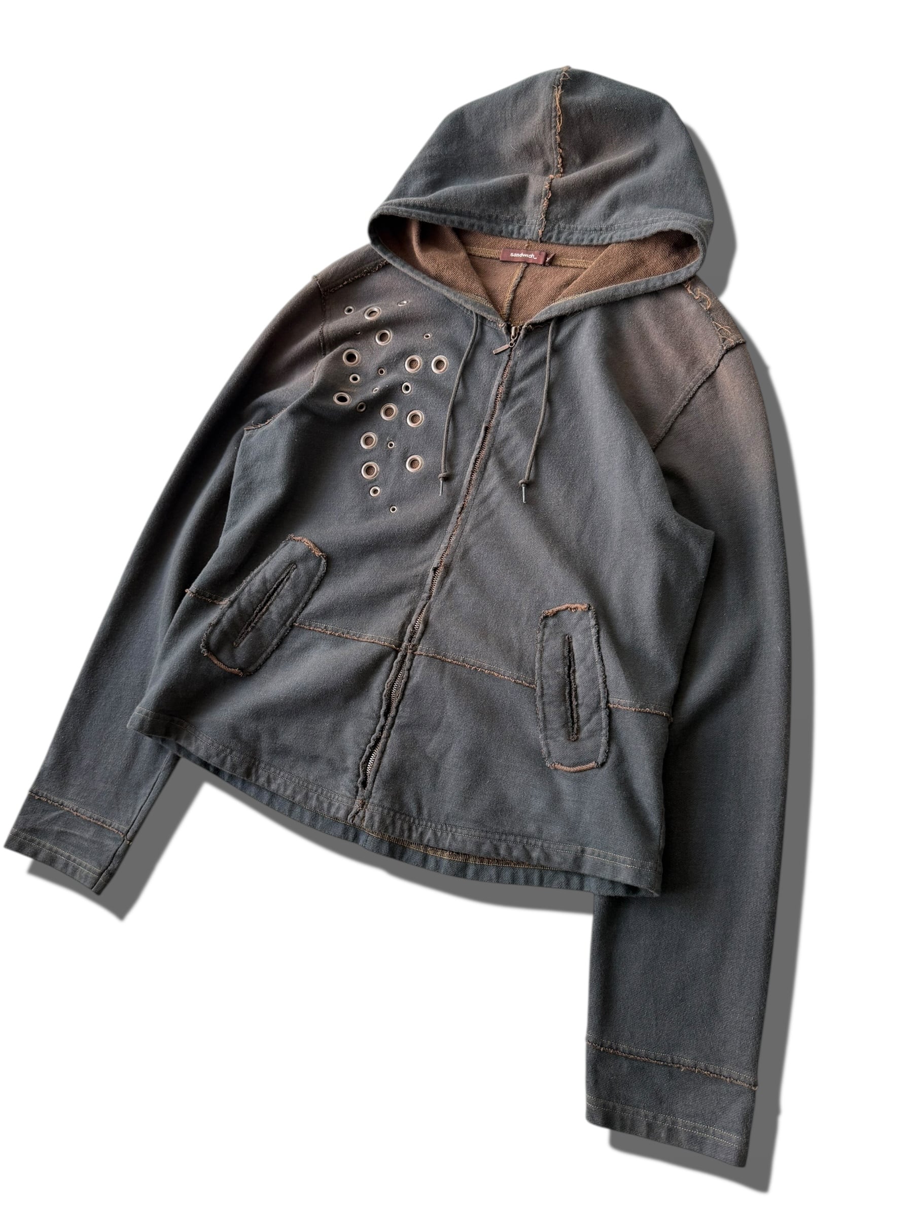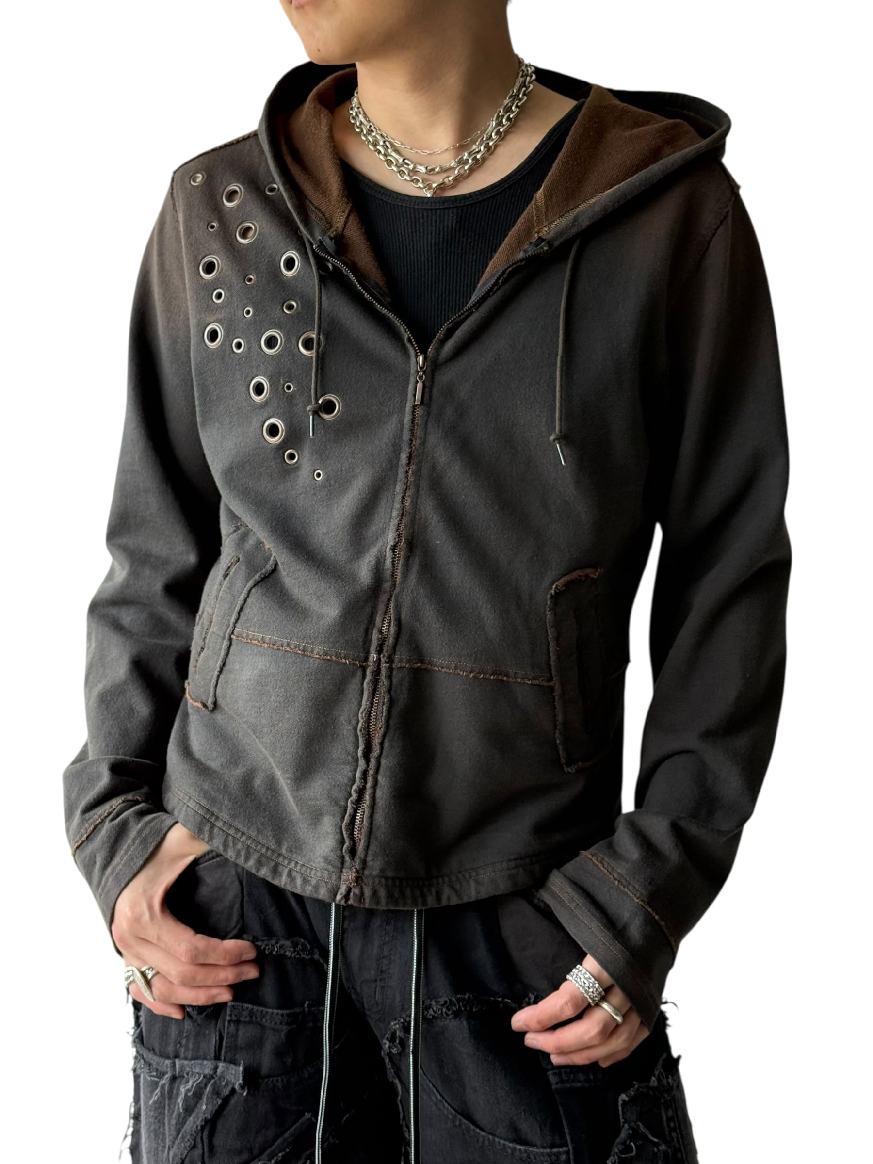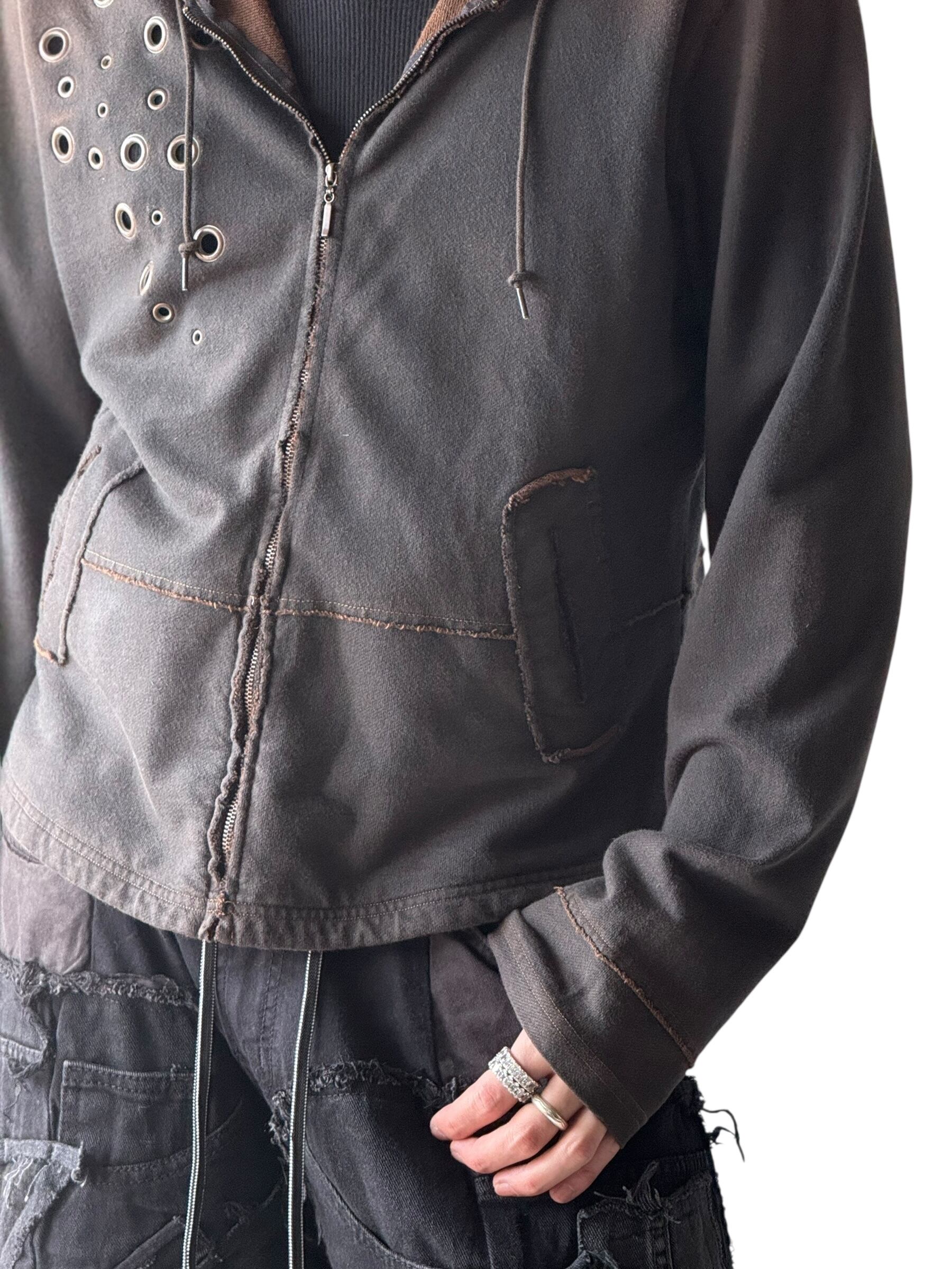 ハトメデザインにエイジング加工のショートジップアップフーディ☺️❣️