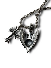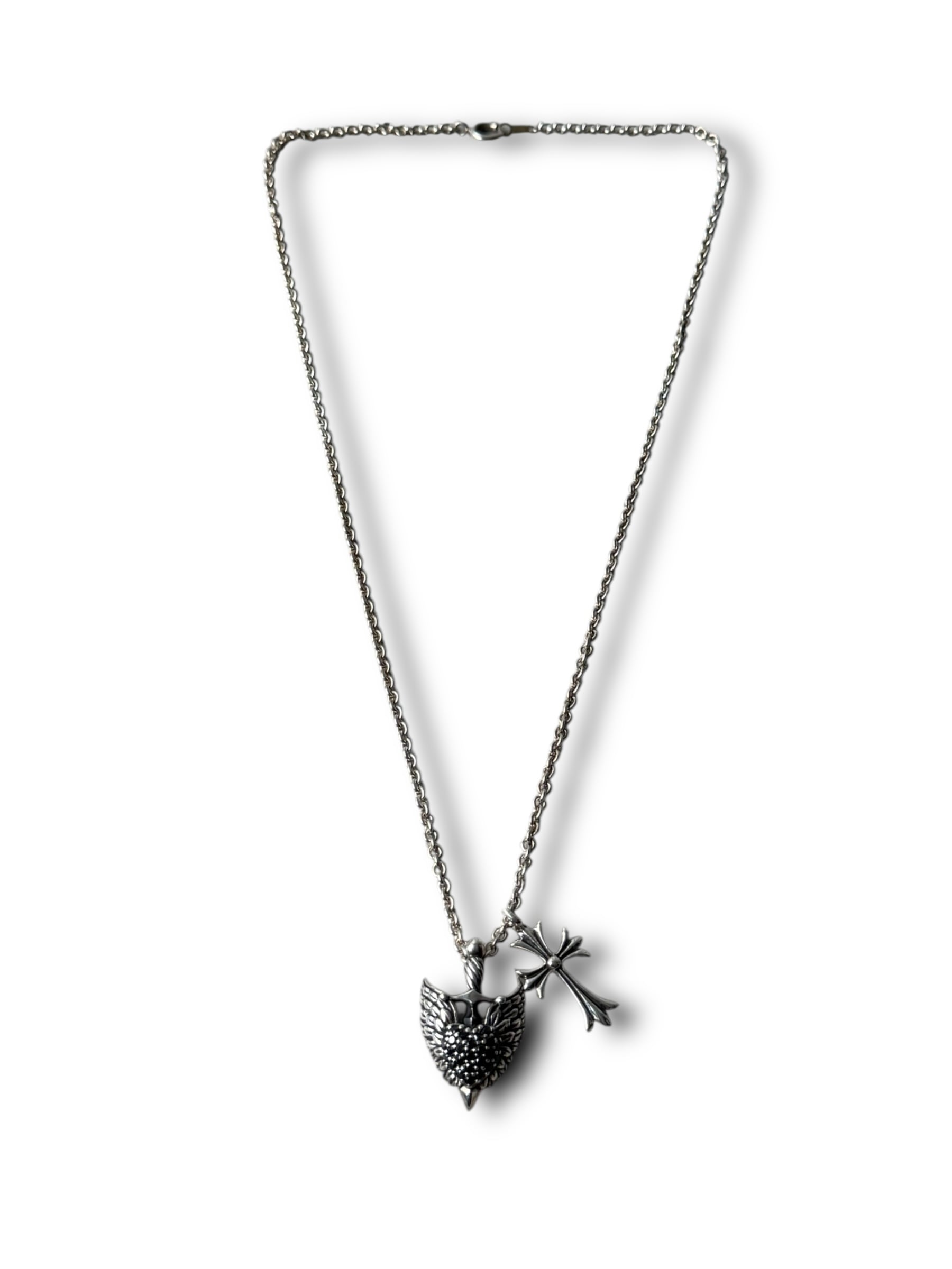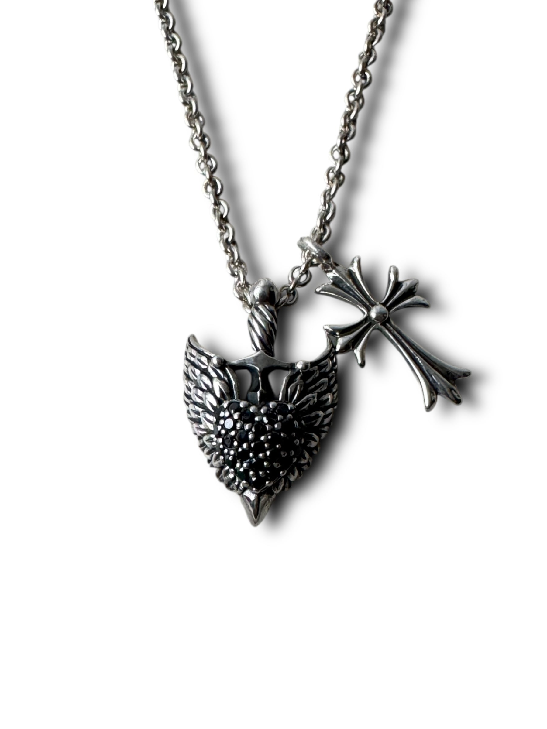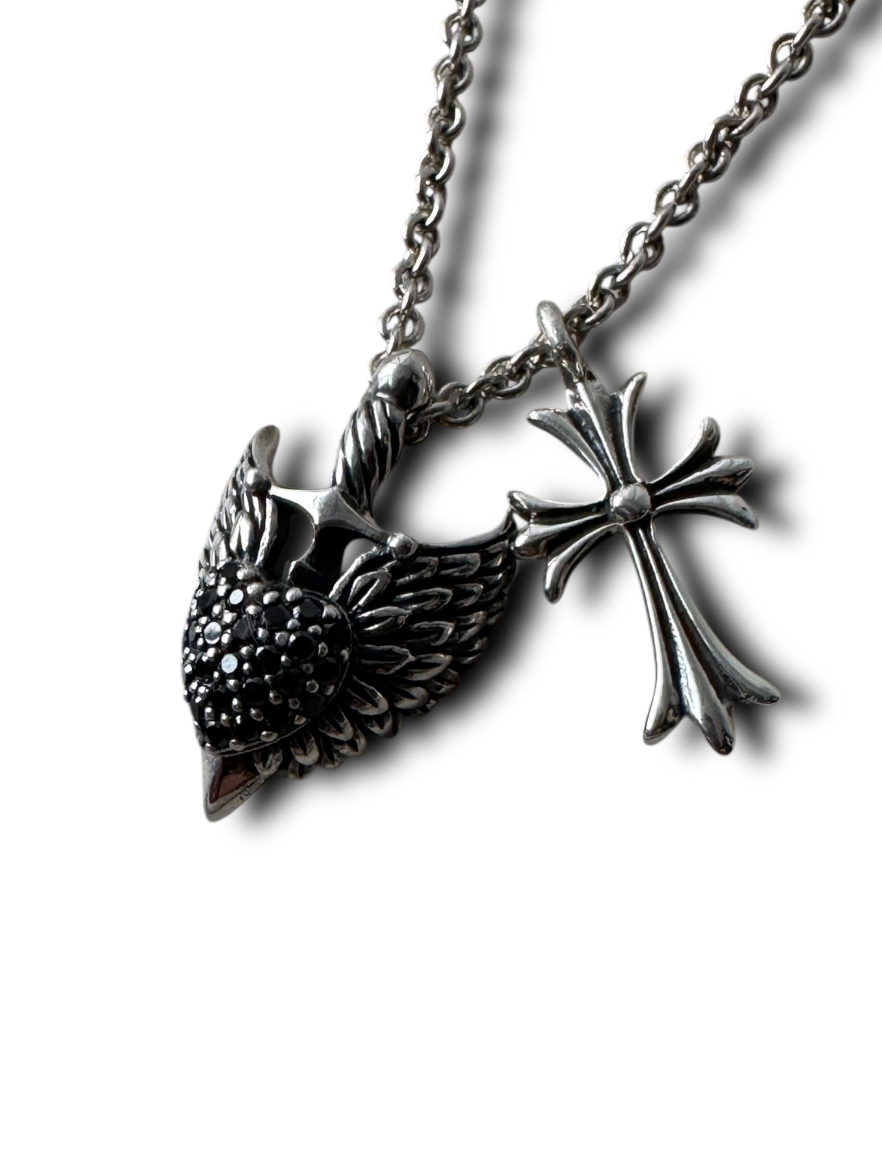 超豪華‼️ソードウィングにCZハート完備のチャームとクロスデザインの2つのチャームがクールなダブルトップデザインネックレス✨️