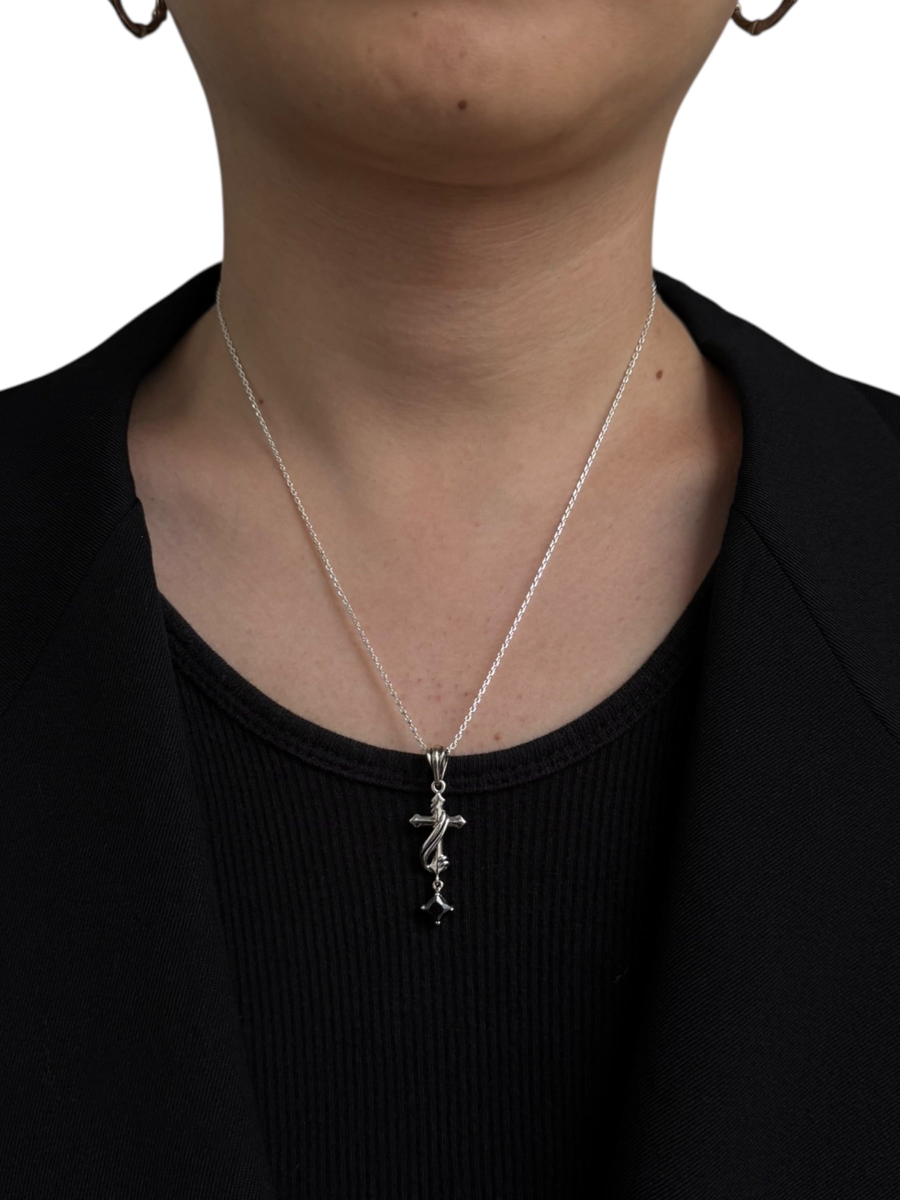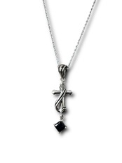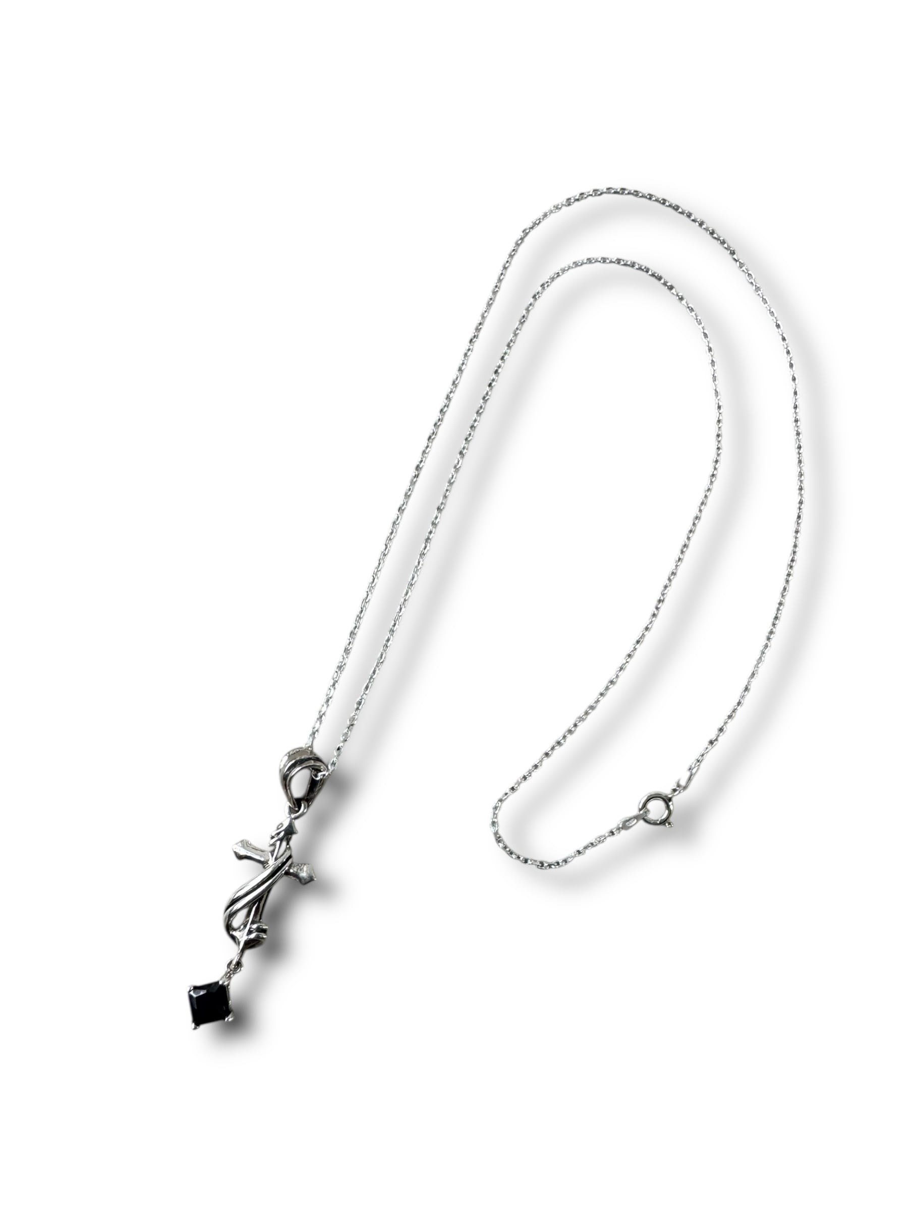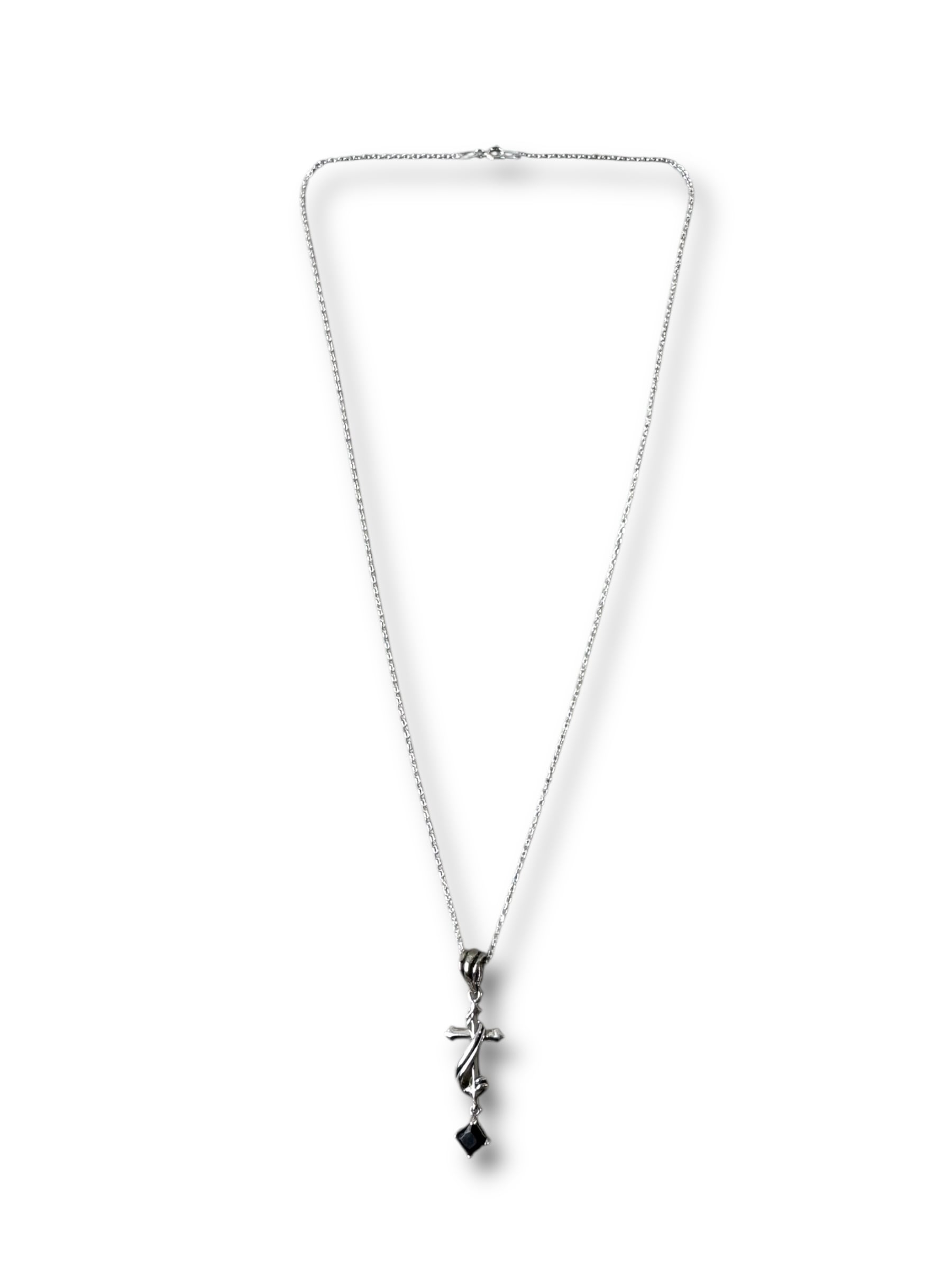 クロスチャームにブラックストーンがぶら下がったデザインシルバーネックレス✨️✨️