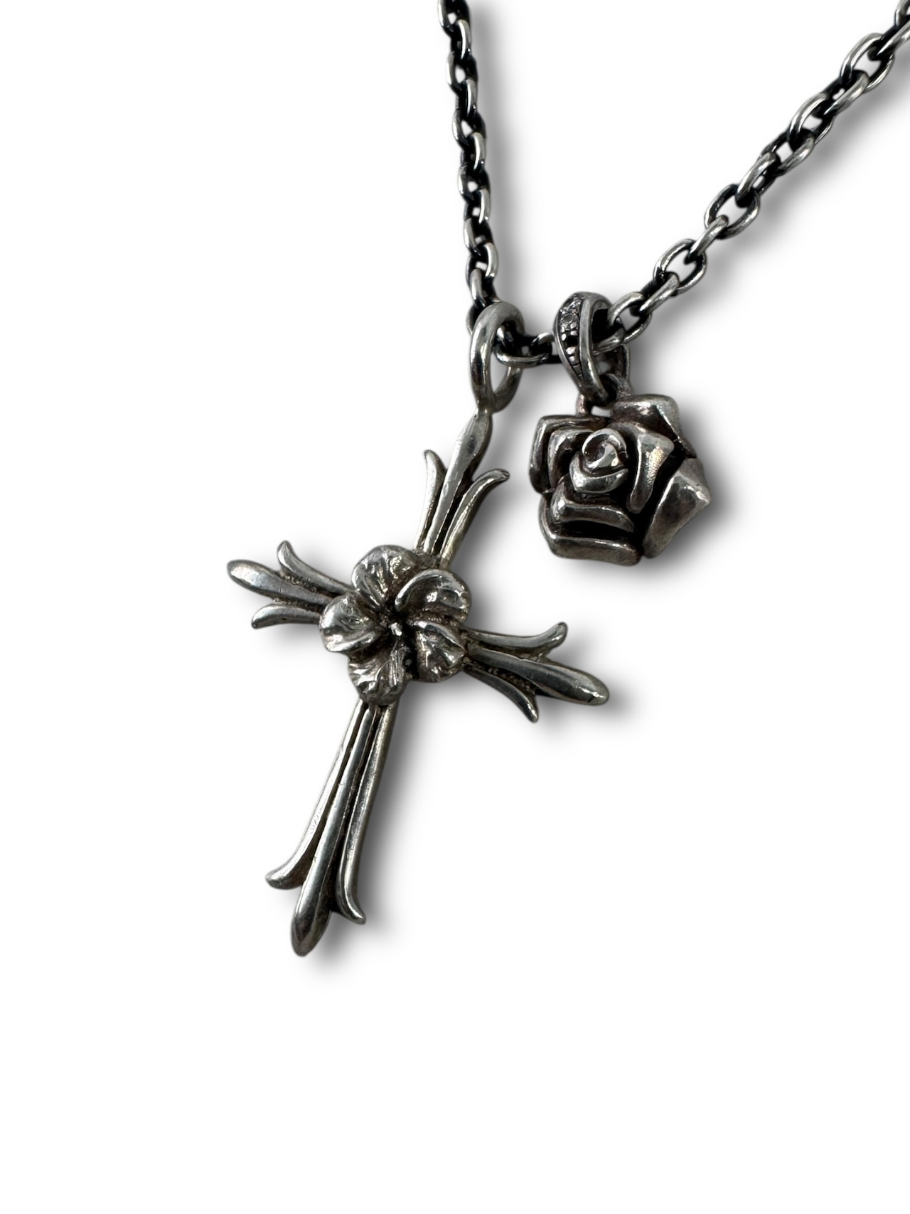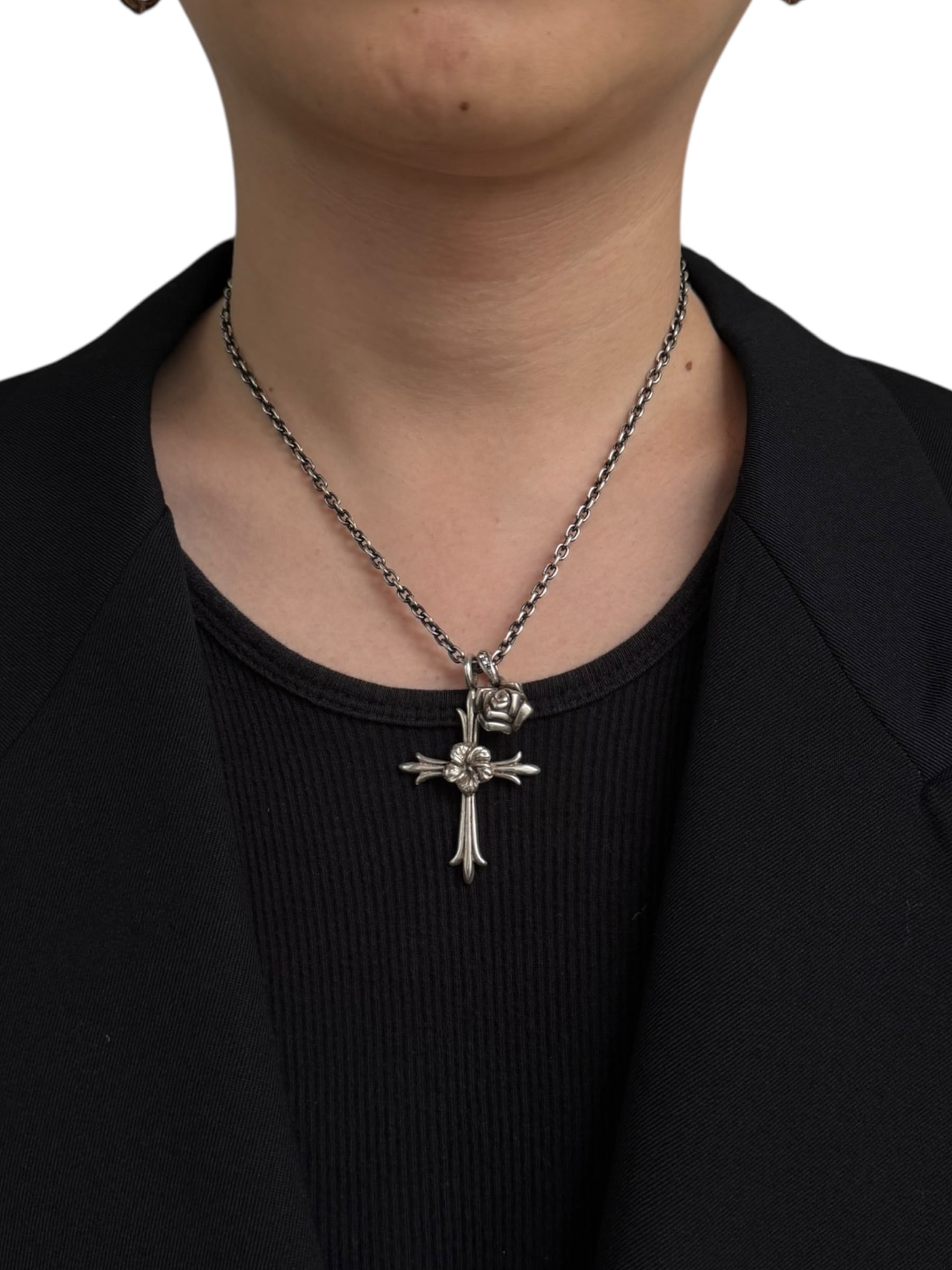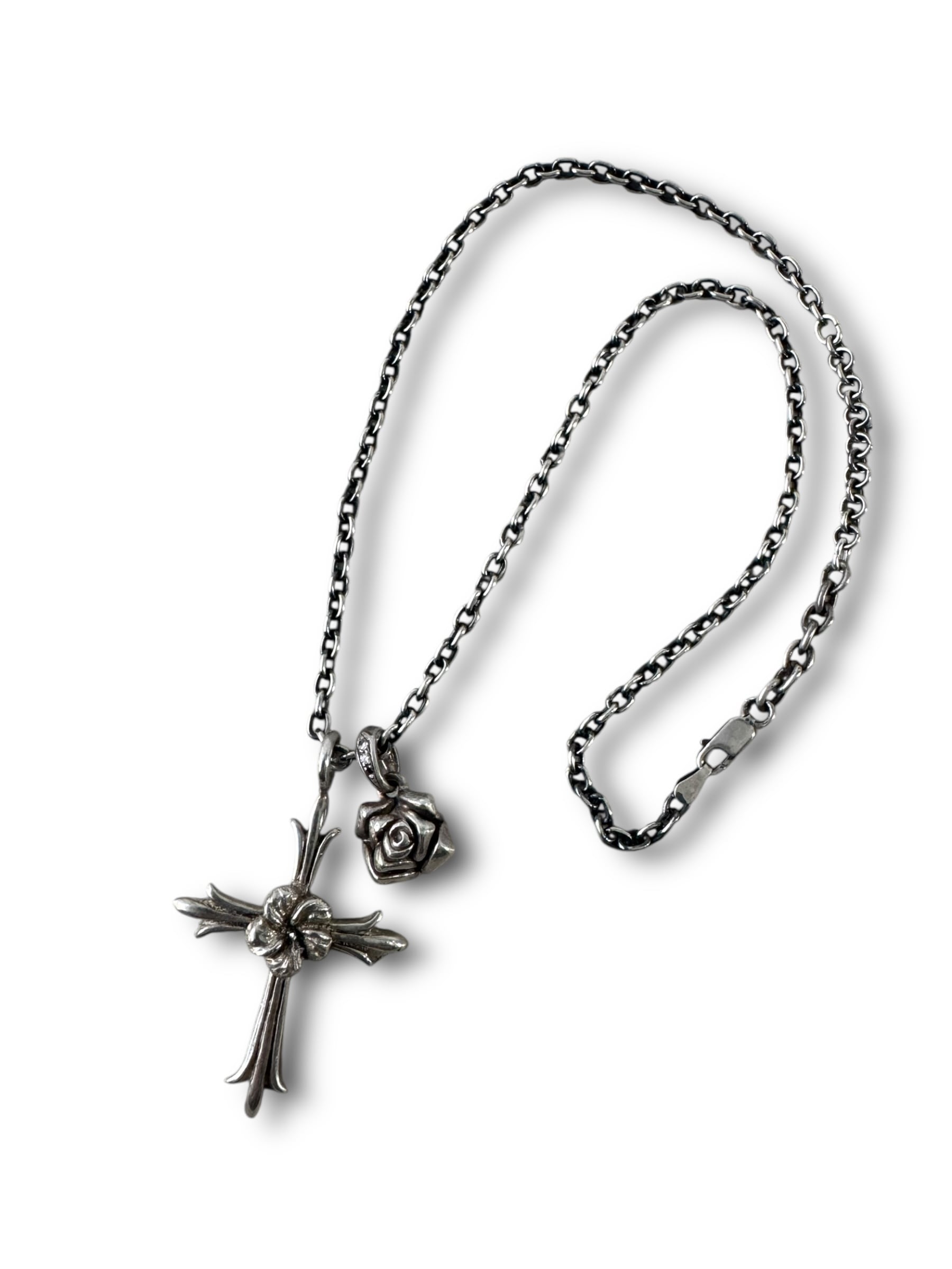 ♾vintage silver jewelry♾ w top design flower cross necklace sv925