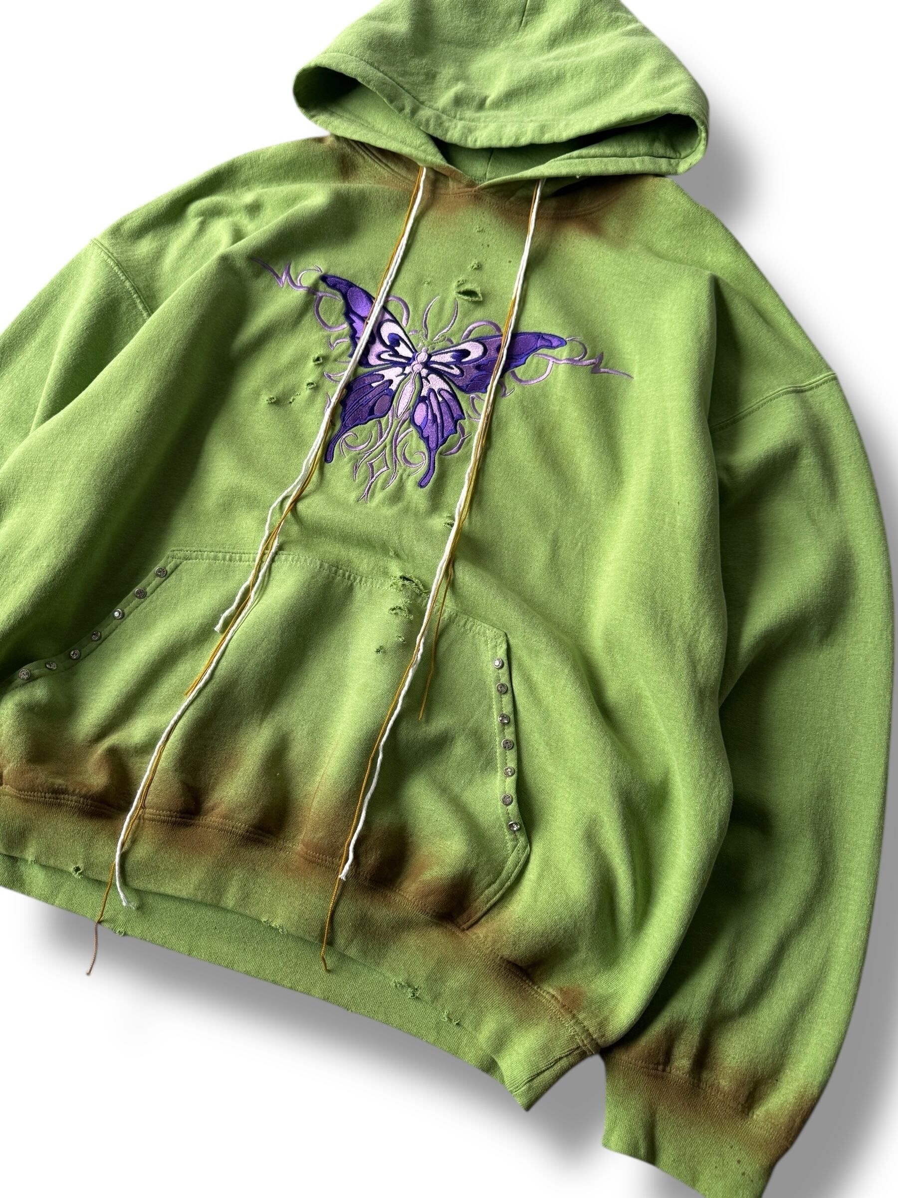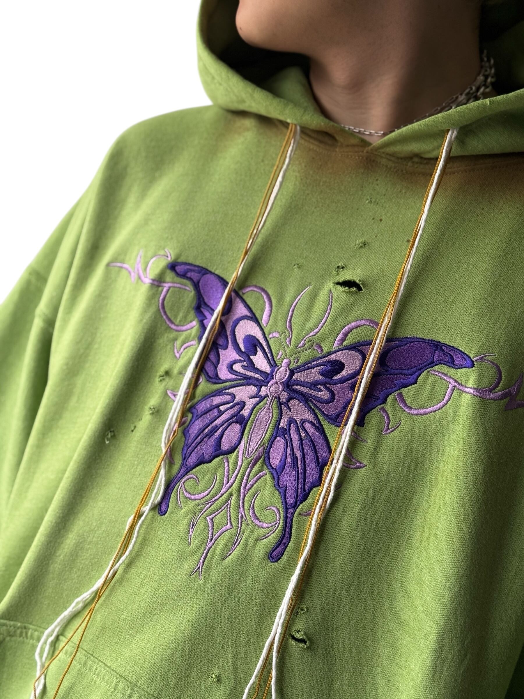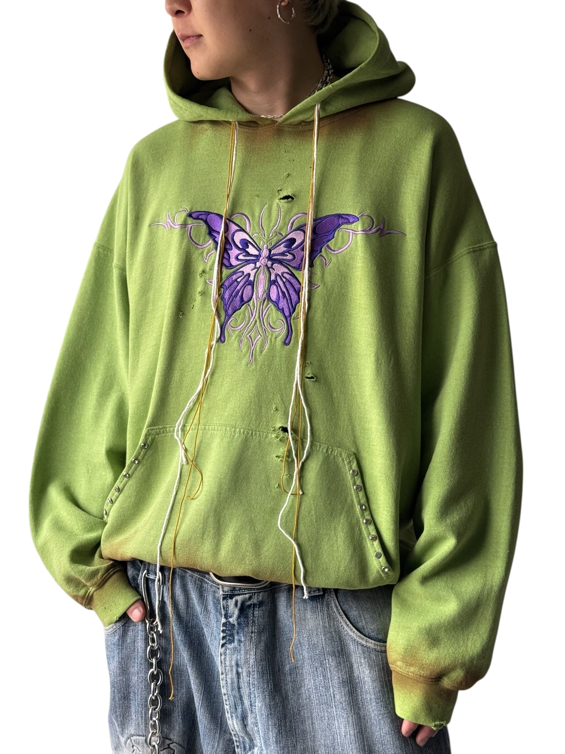 ♾ design used ♾ dirty custom embroidery butterfly design Rhinestone hoodie size XL