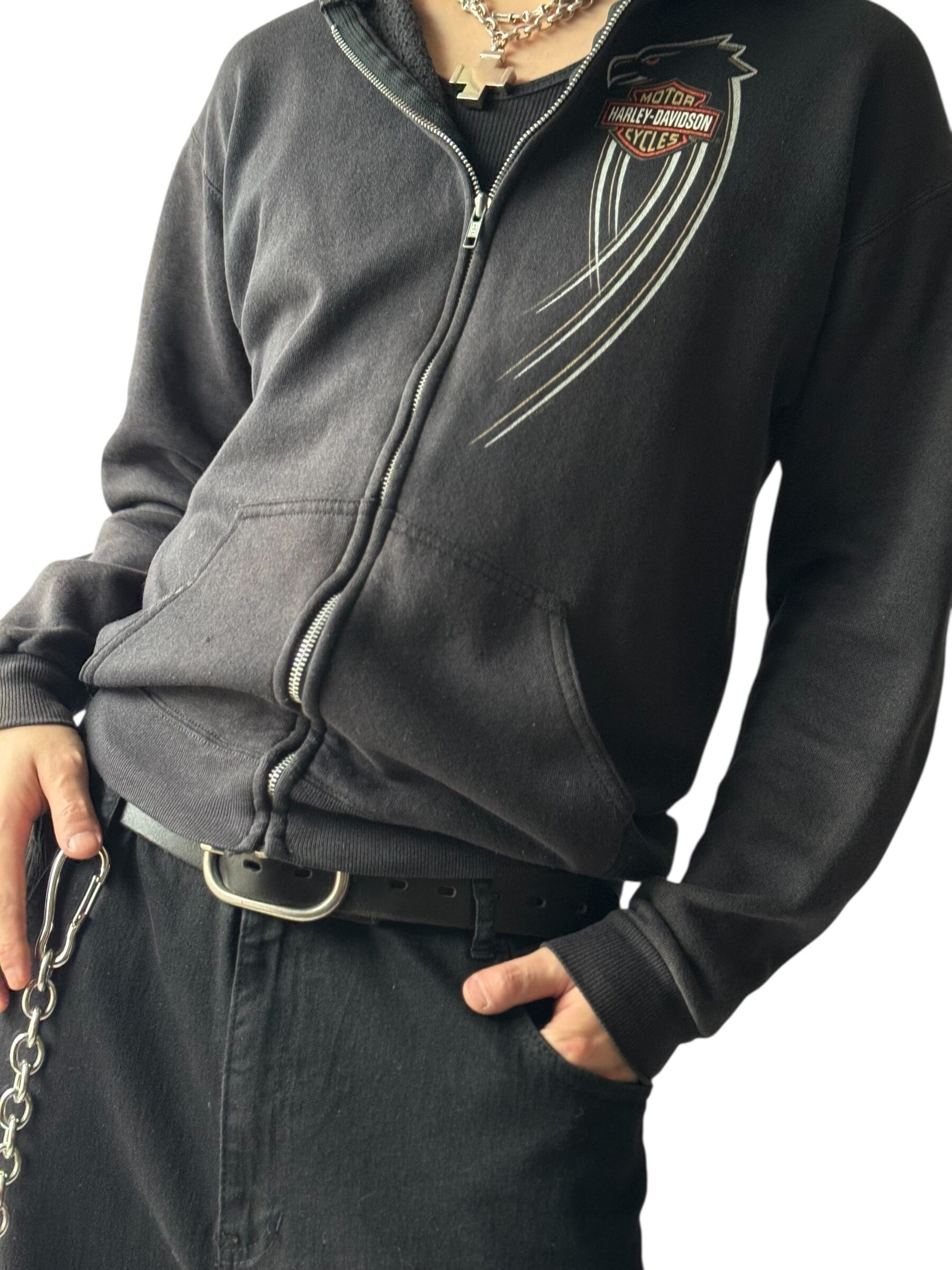 ♾90’s Harley Davidson♾ emblem pattern design zip hoodie size M MADE IN USA ©︎1997