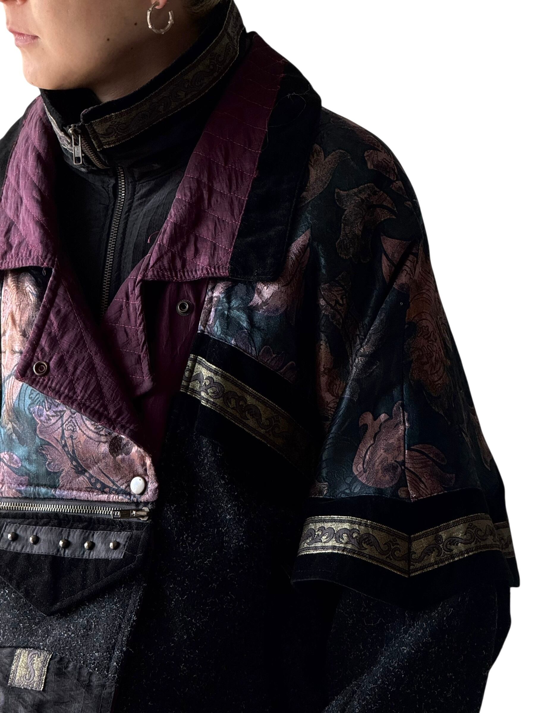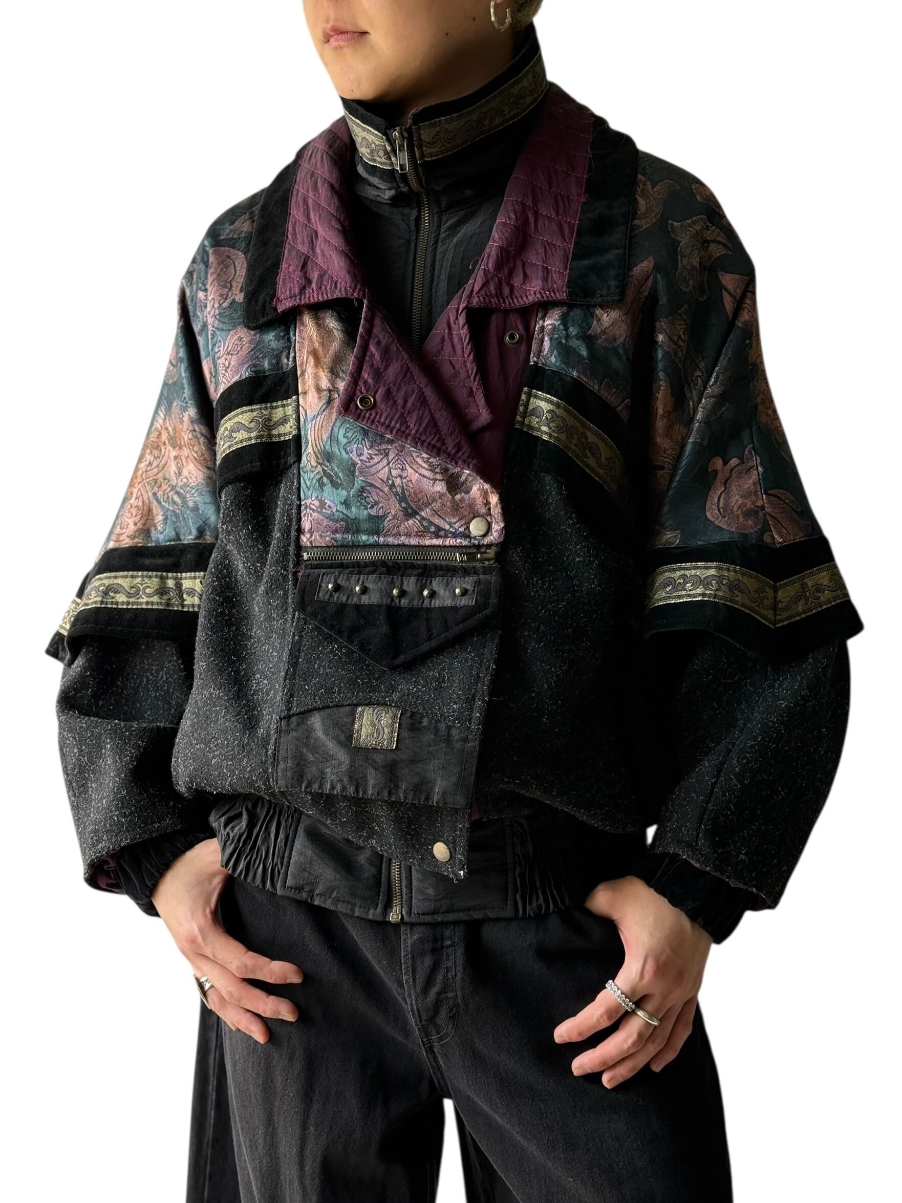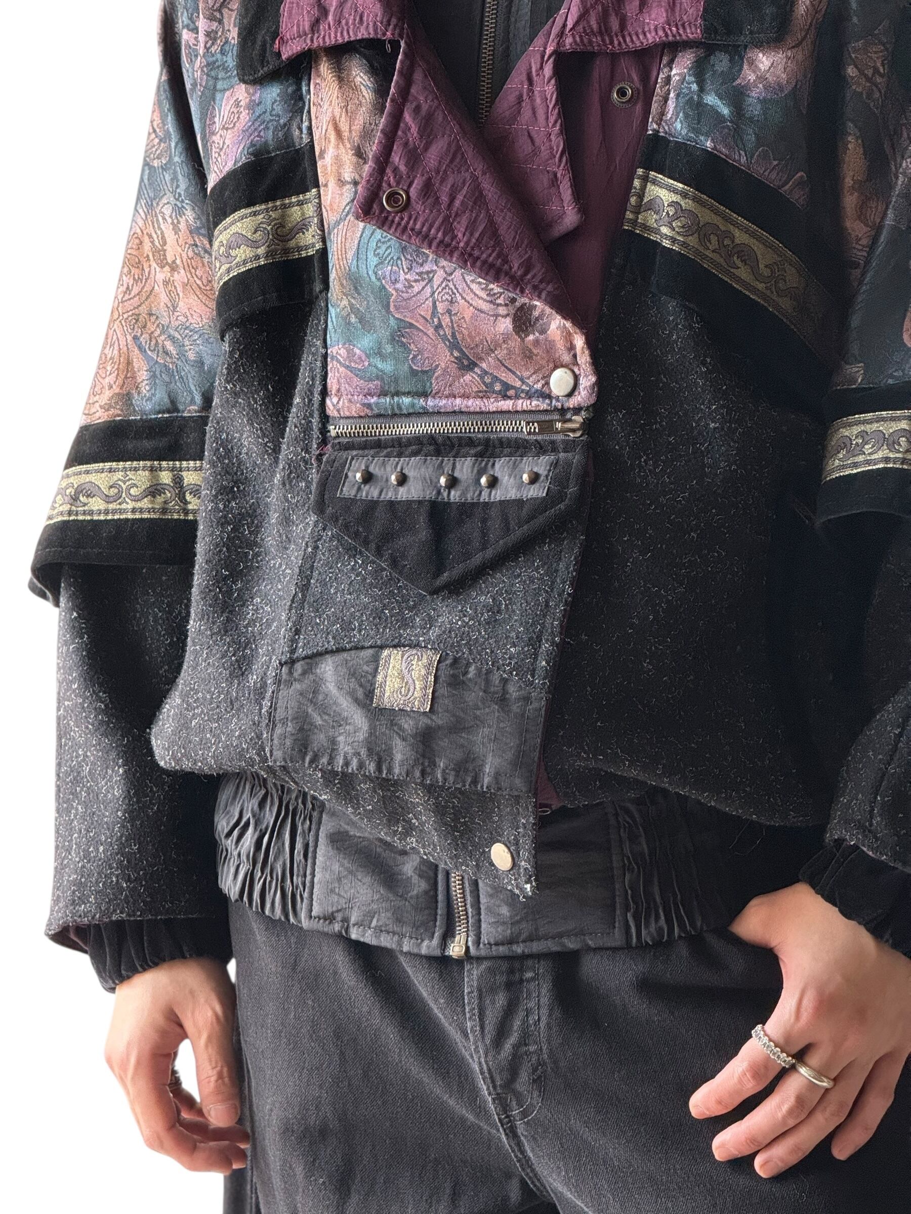 総柄のナイロンと随所のベロア切り替え❗️