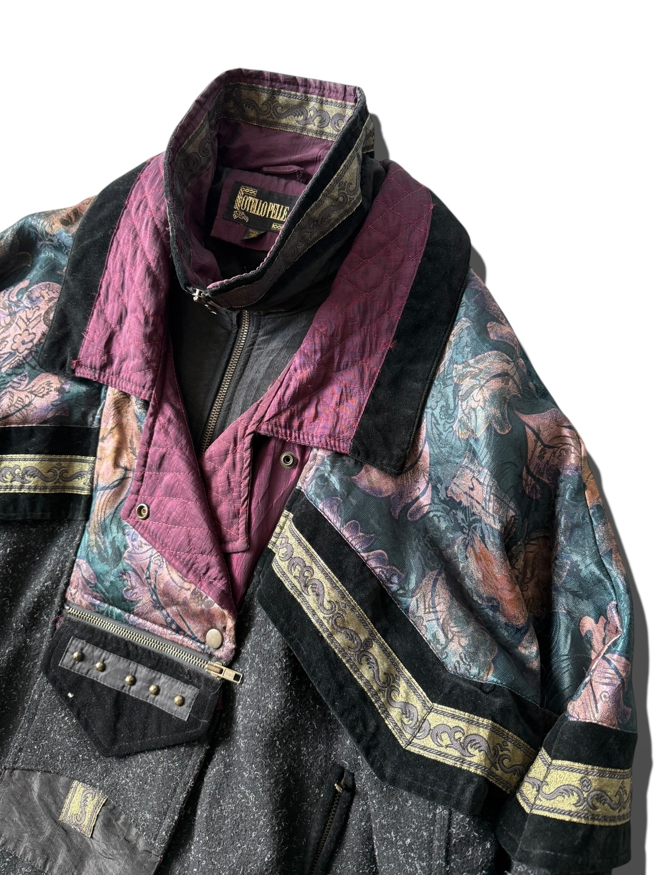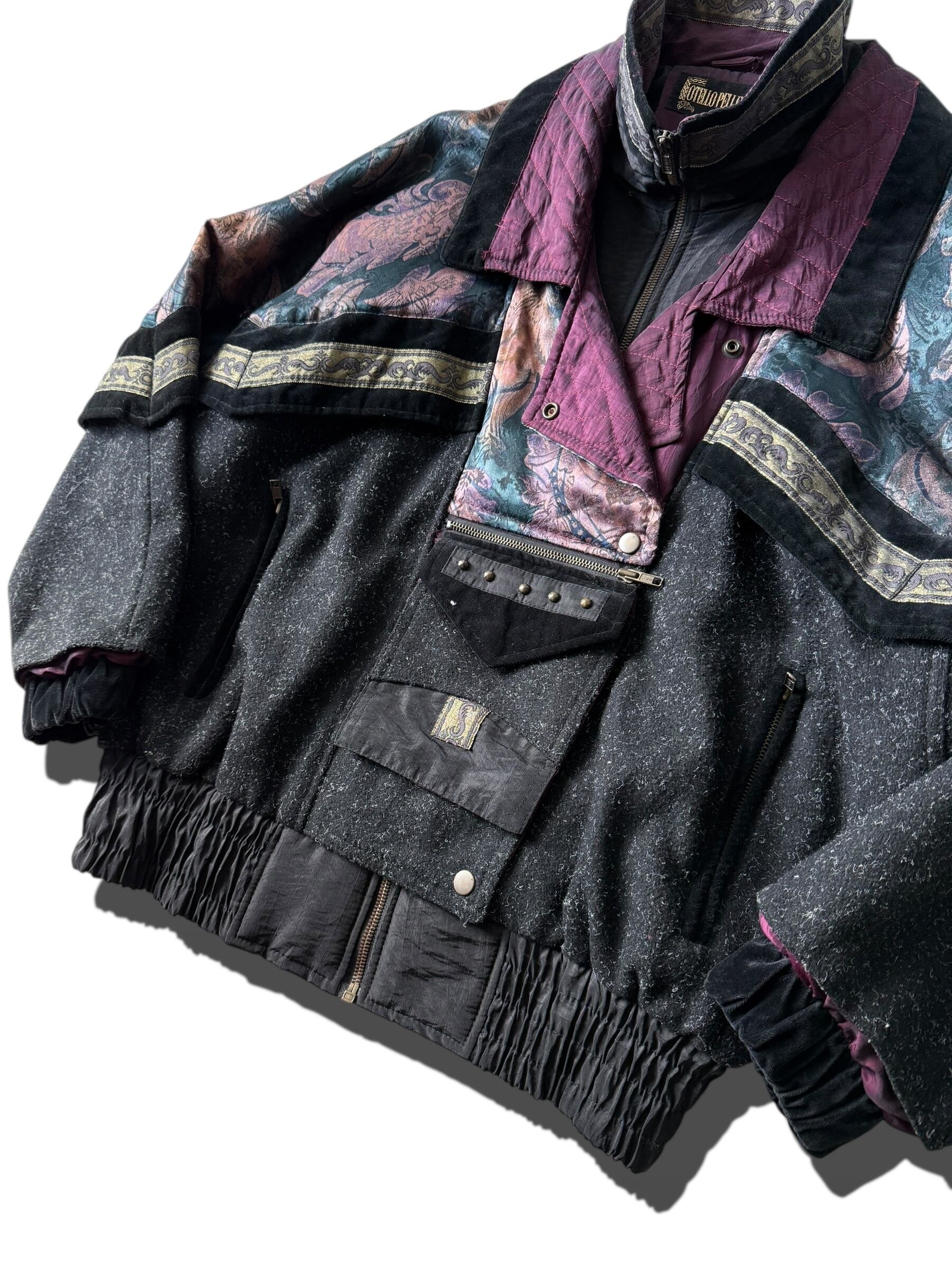 【OTELLO PELLE】 "Nylon velours wool" docking pattern modified blouson
