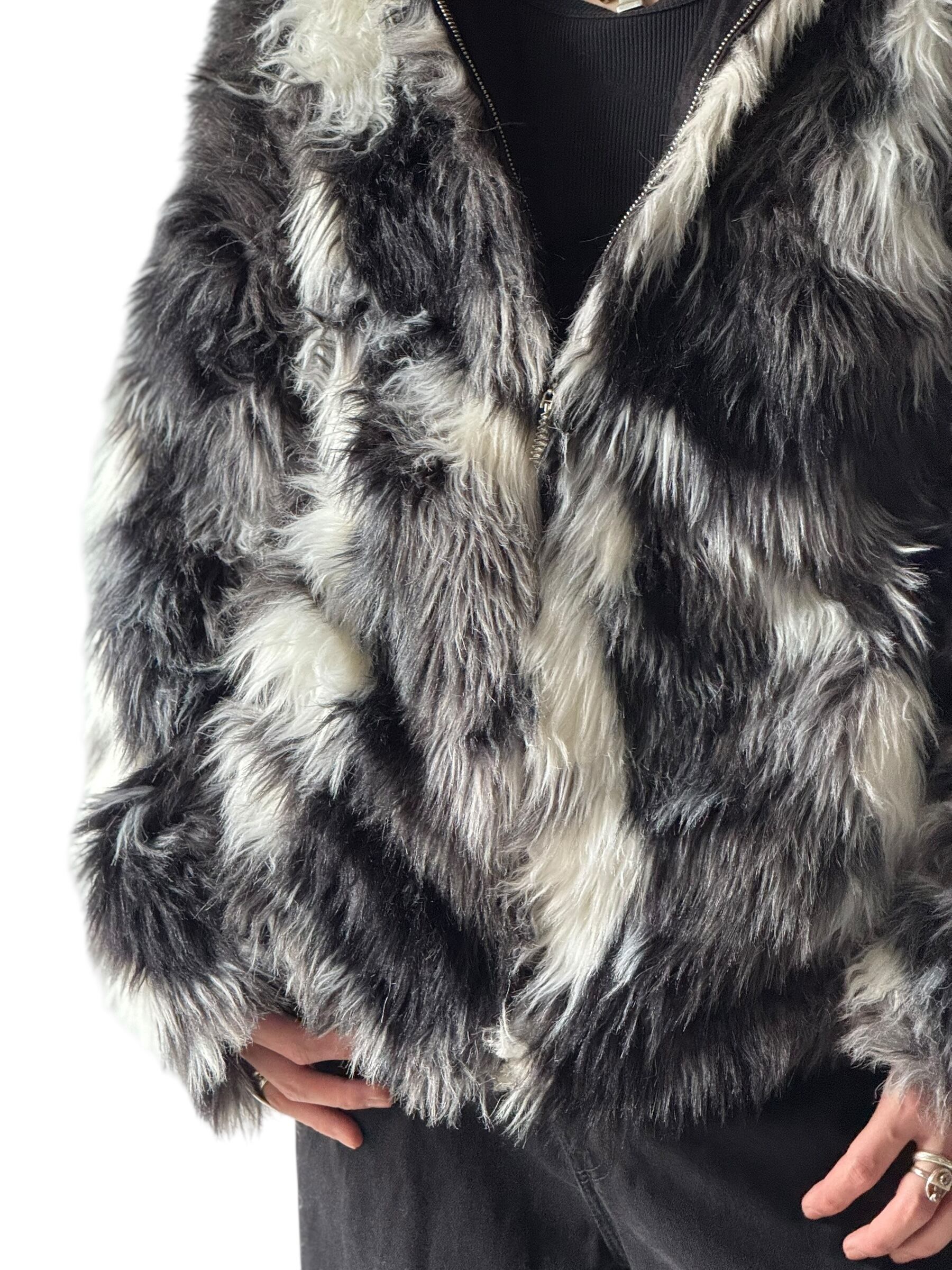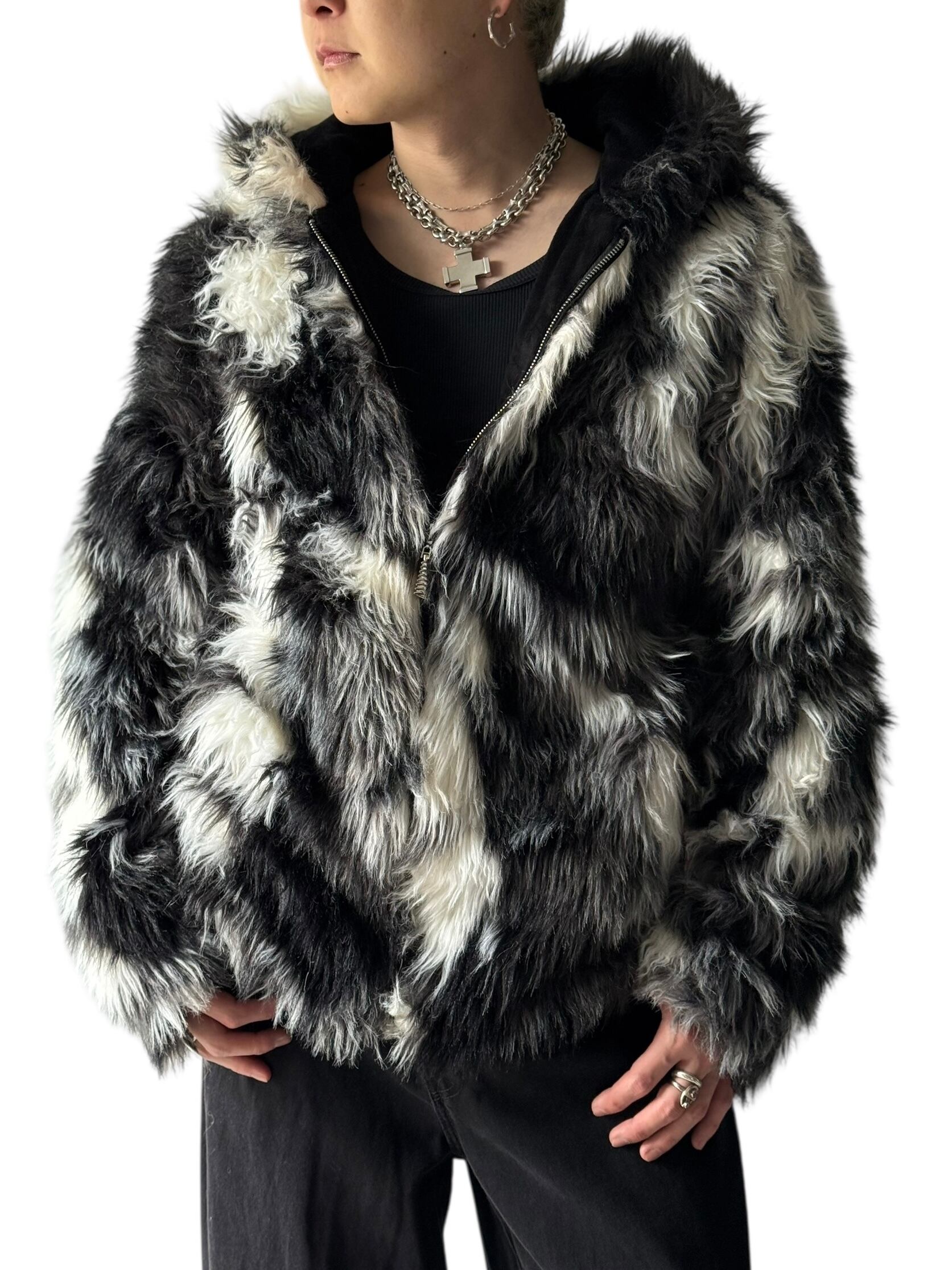 Monotone faux fur hooded jacket /size XXXL