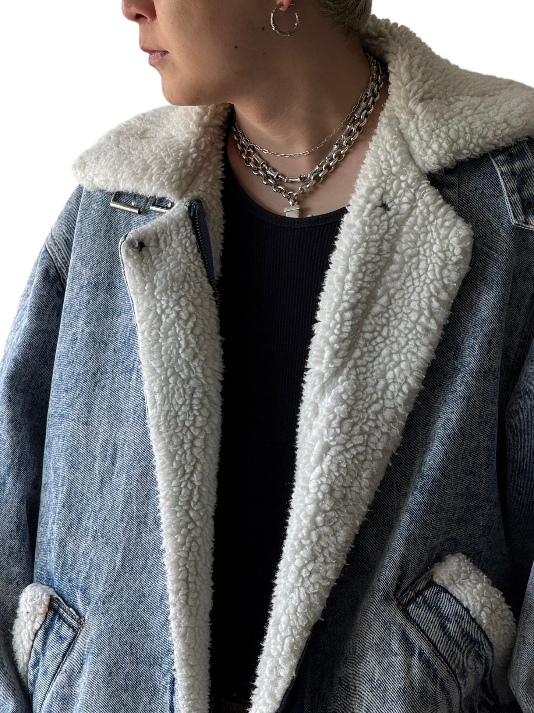 【80s unknown】Boa lining B-3 type chemical denim jacket