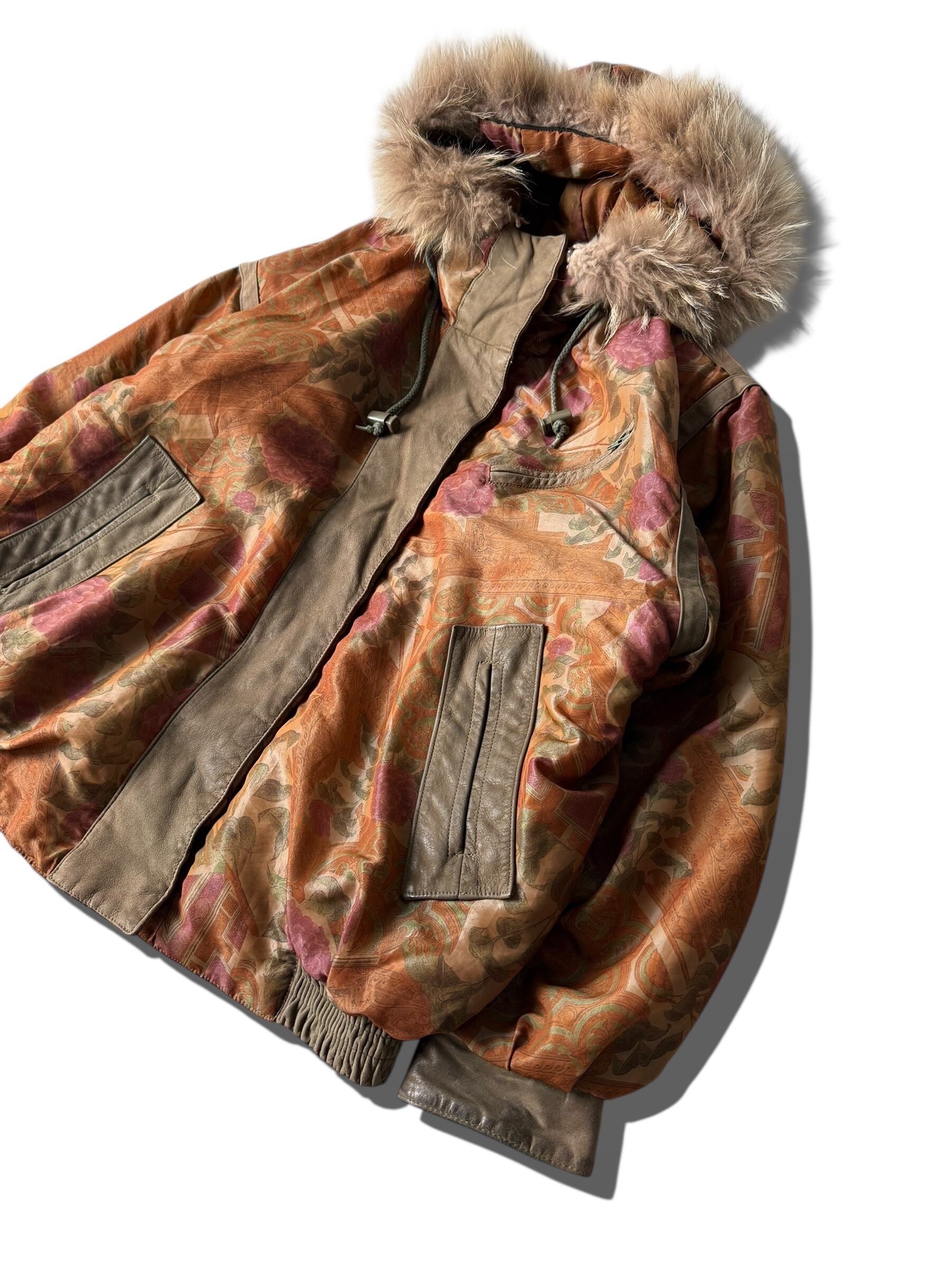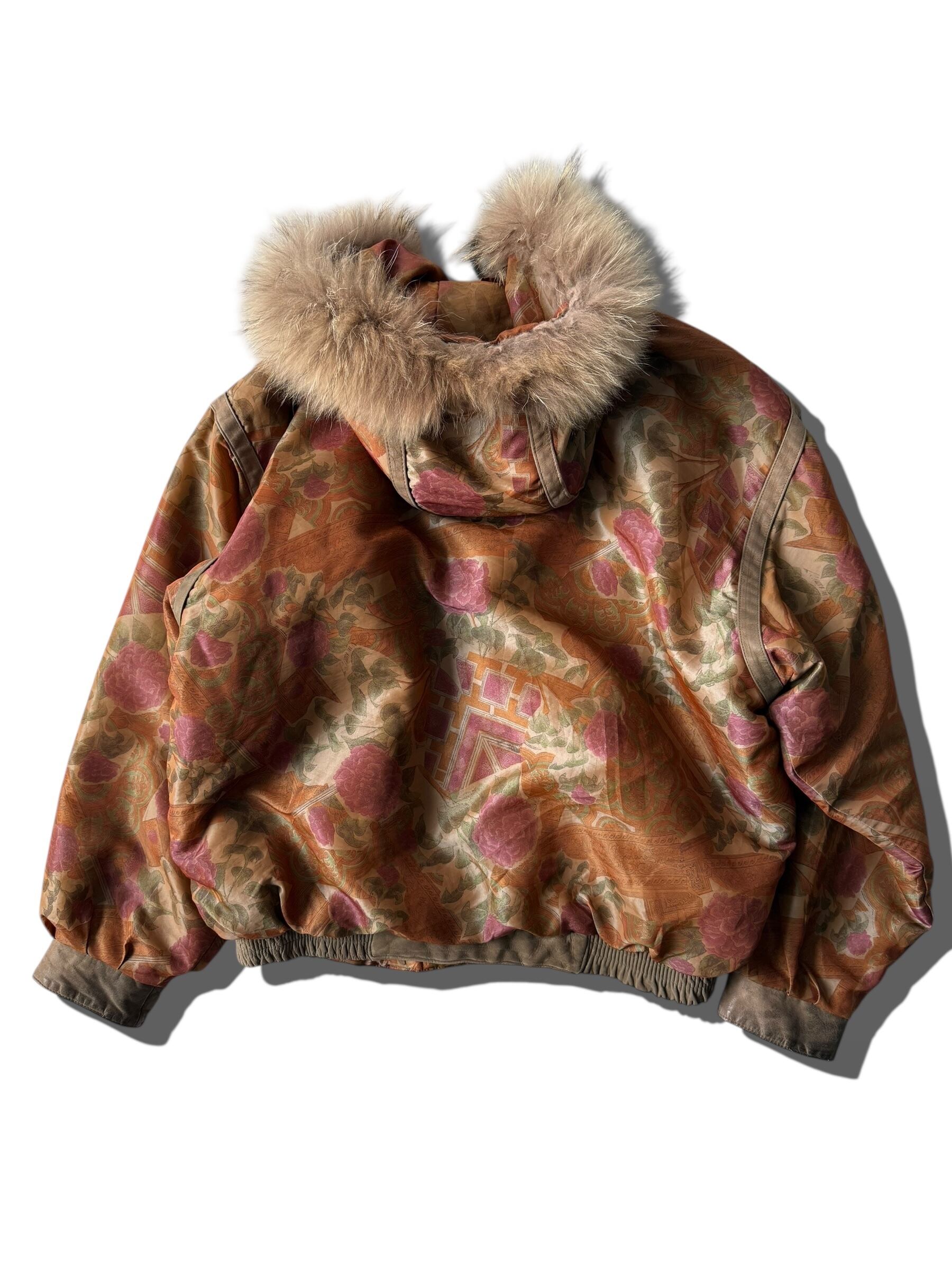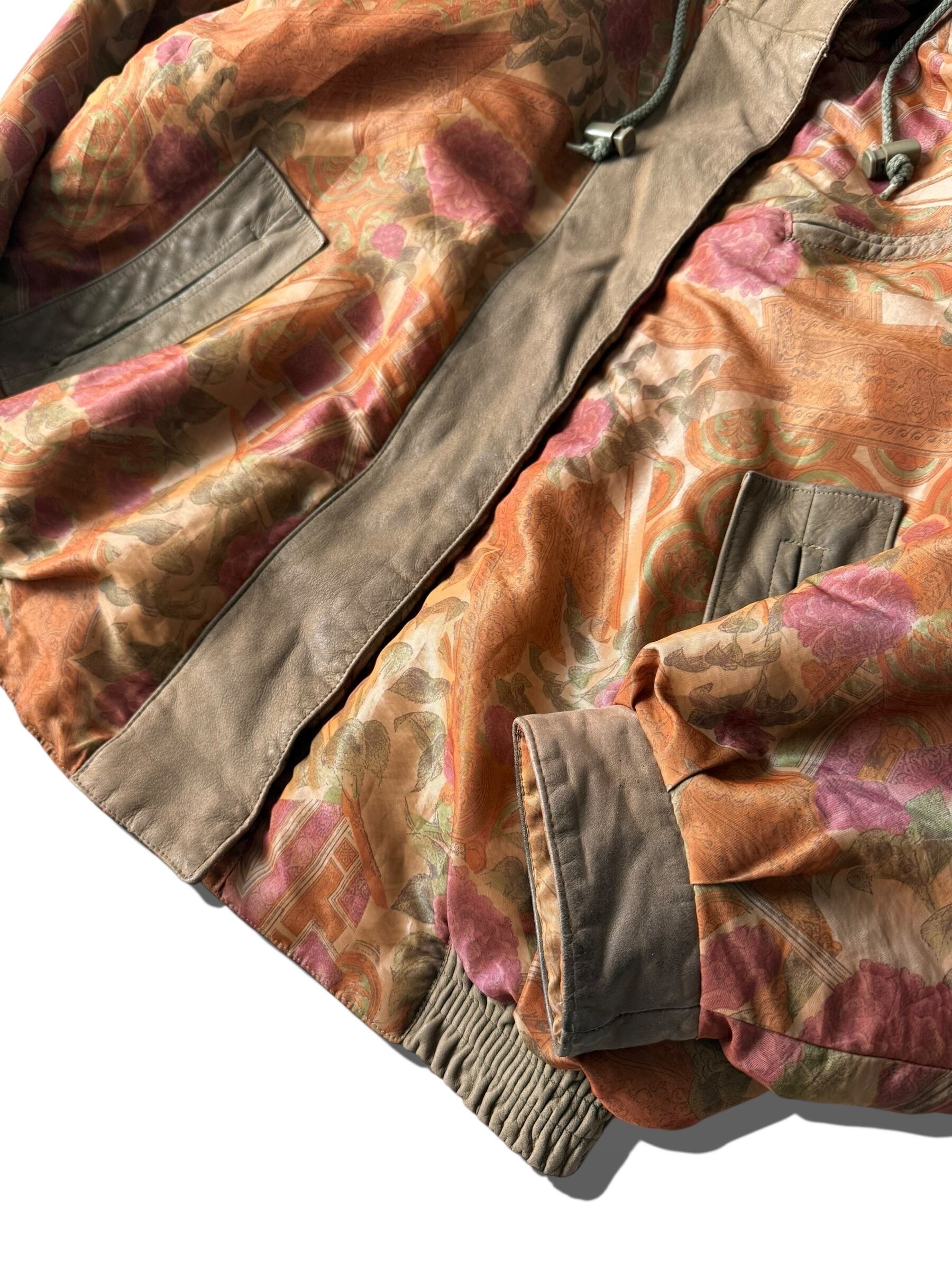 大判なフローラル柄でレザーの切り替えラインをさりげなくり主張したフードブルゾン‼️