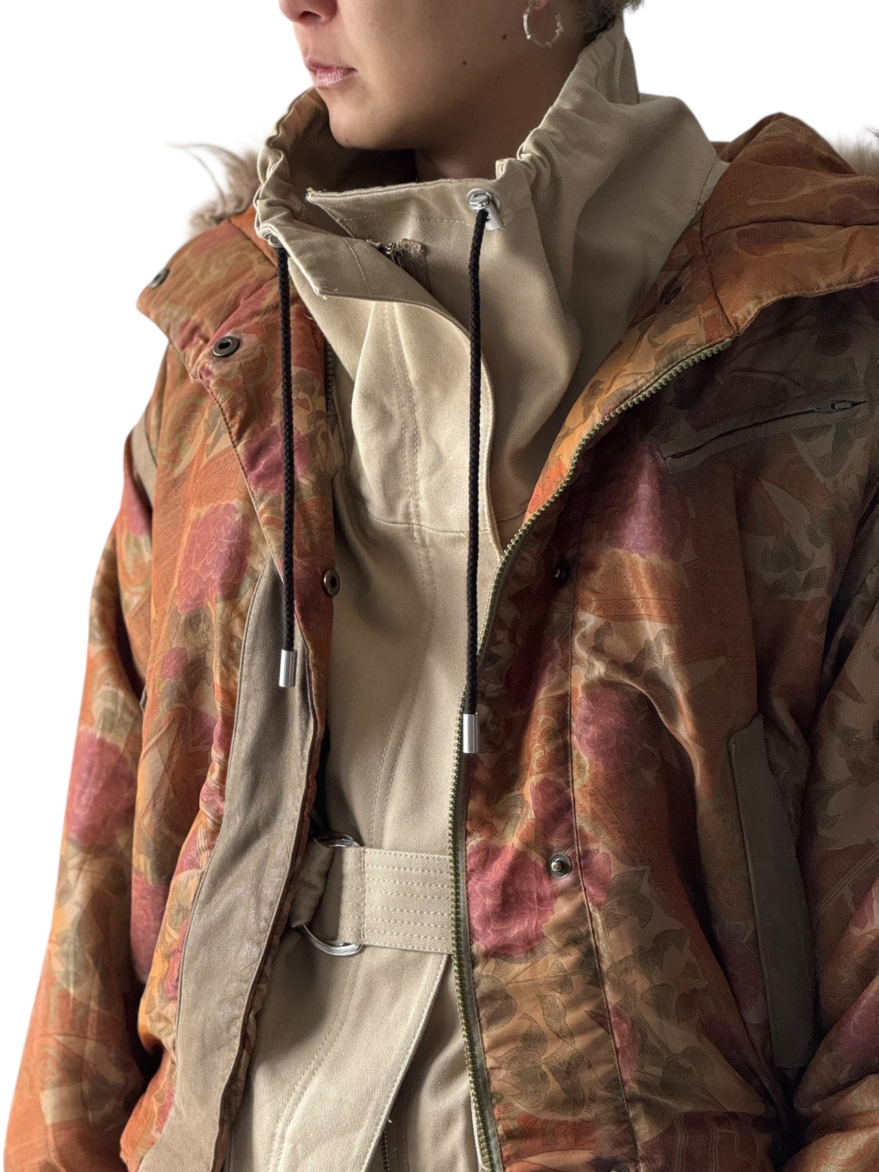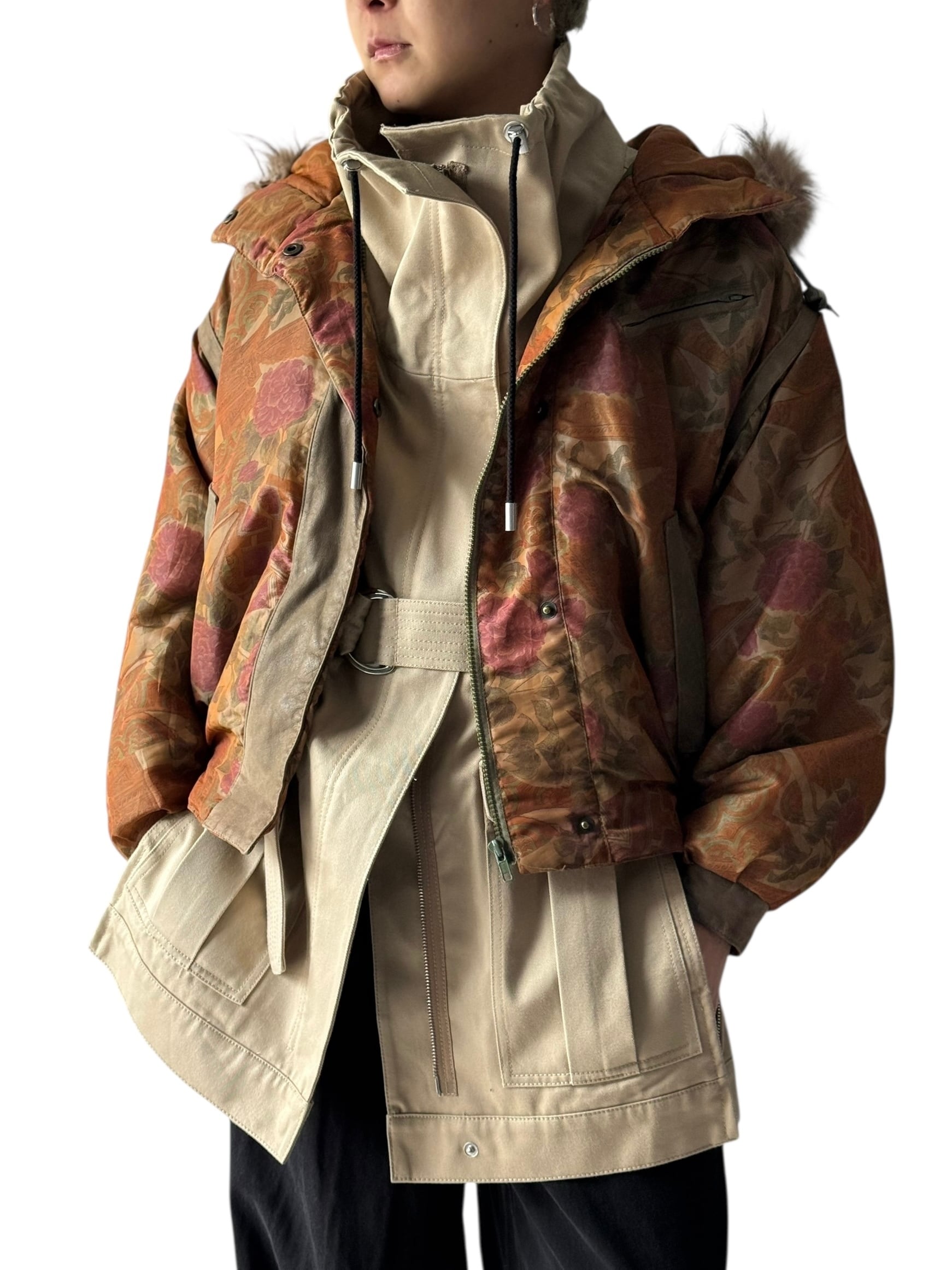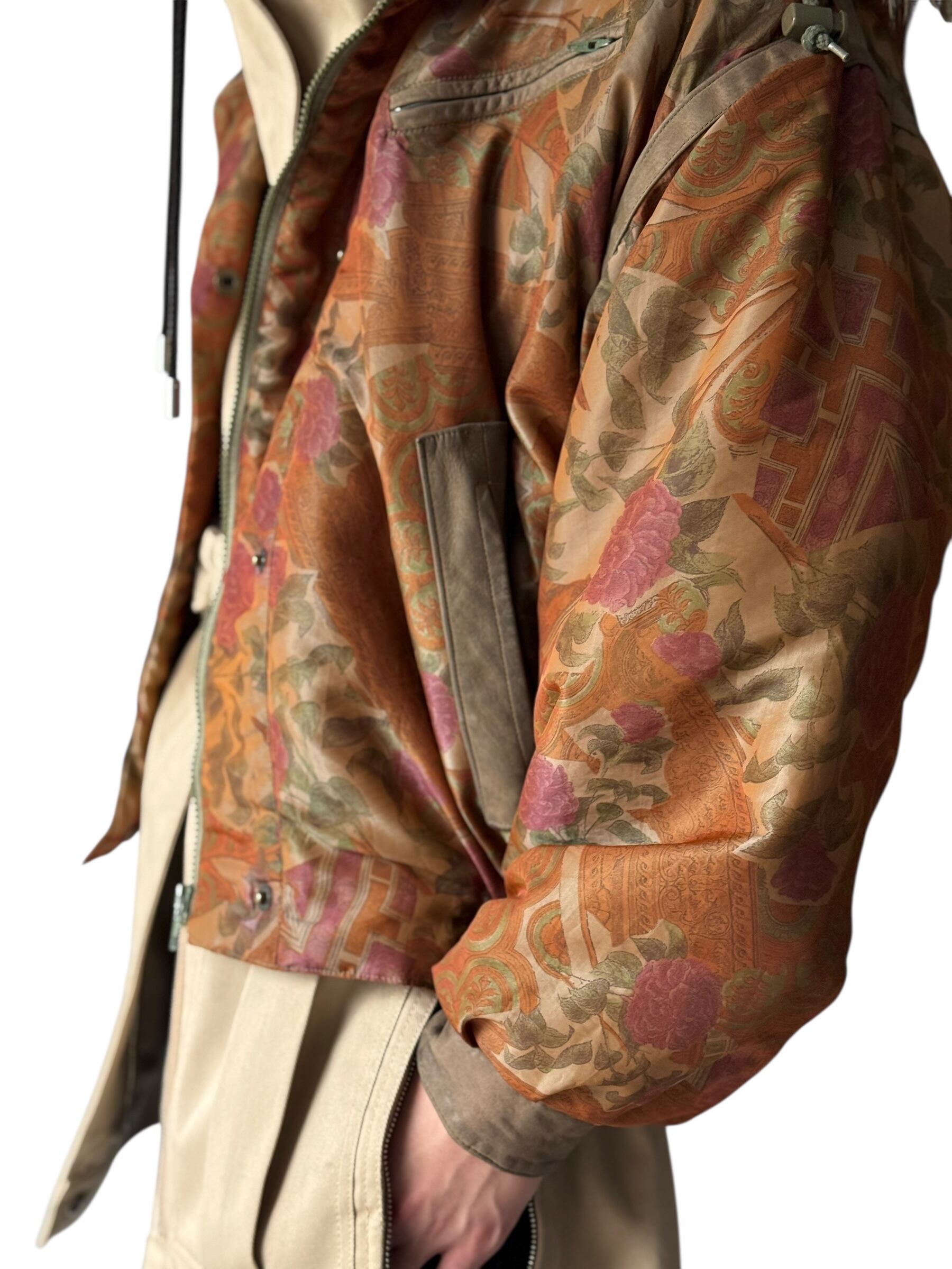 大判なフローラル柄でレザーの切り替えラインをさりげなくり主張したフードブルゾン‼️