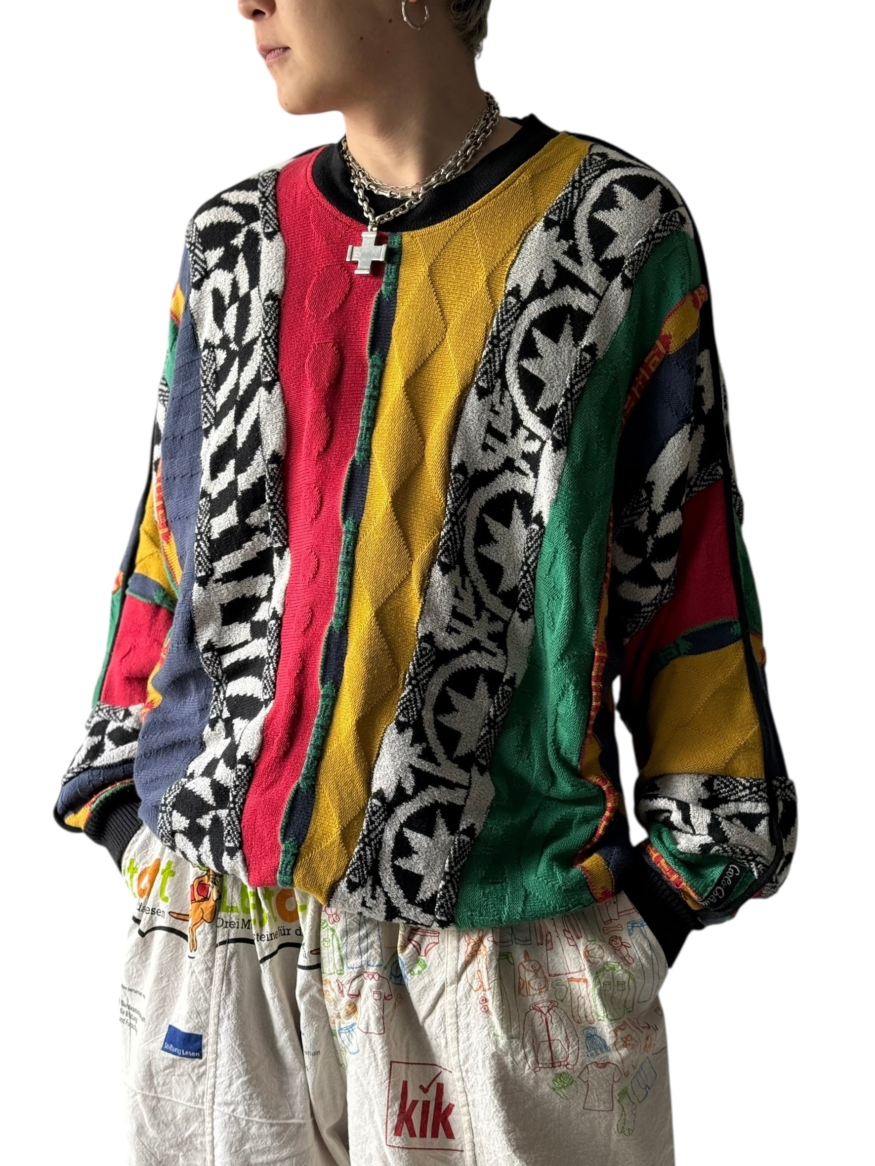 【90's Carlo Colucci】 "MADE IN Germany" 3D pattern design knit sweater