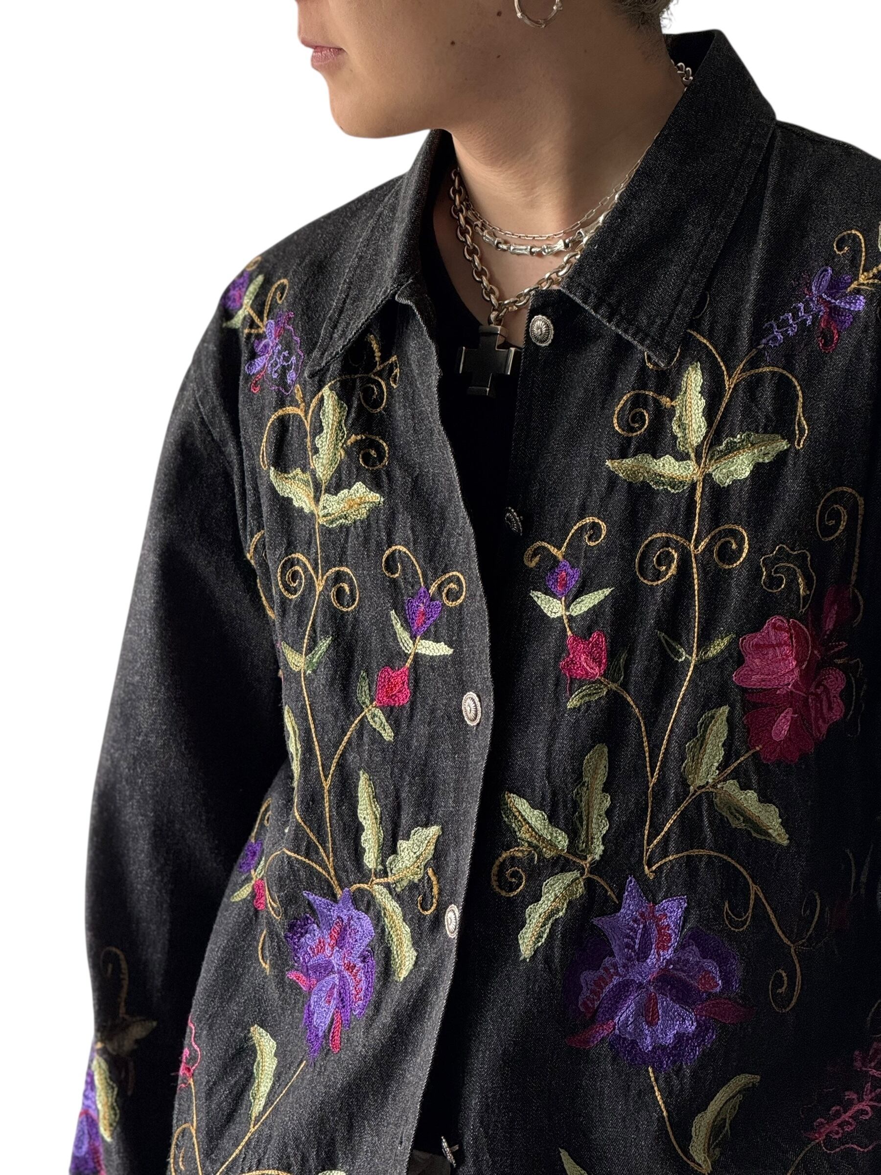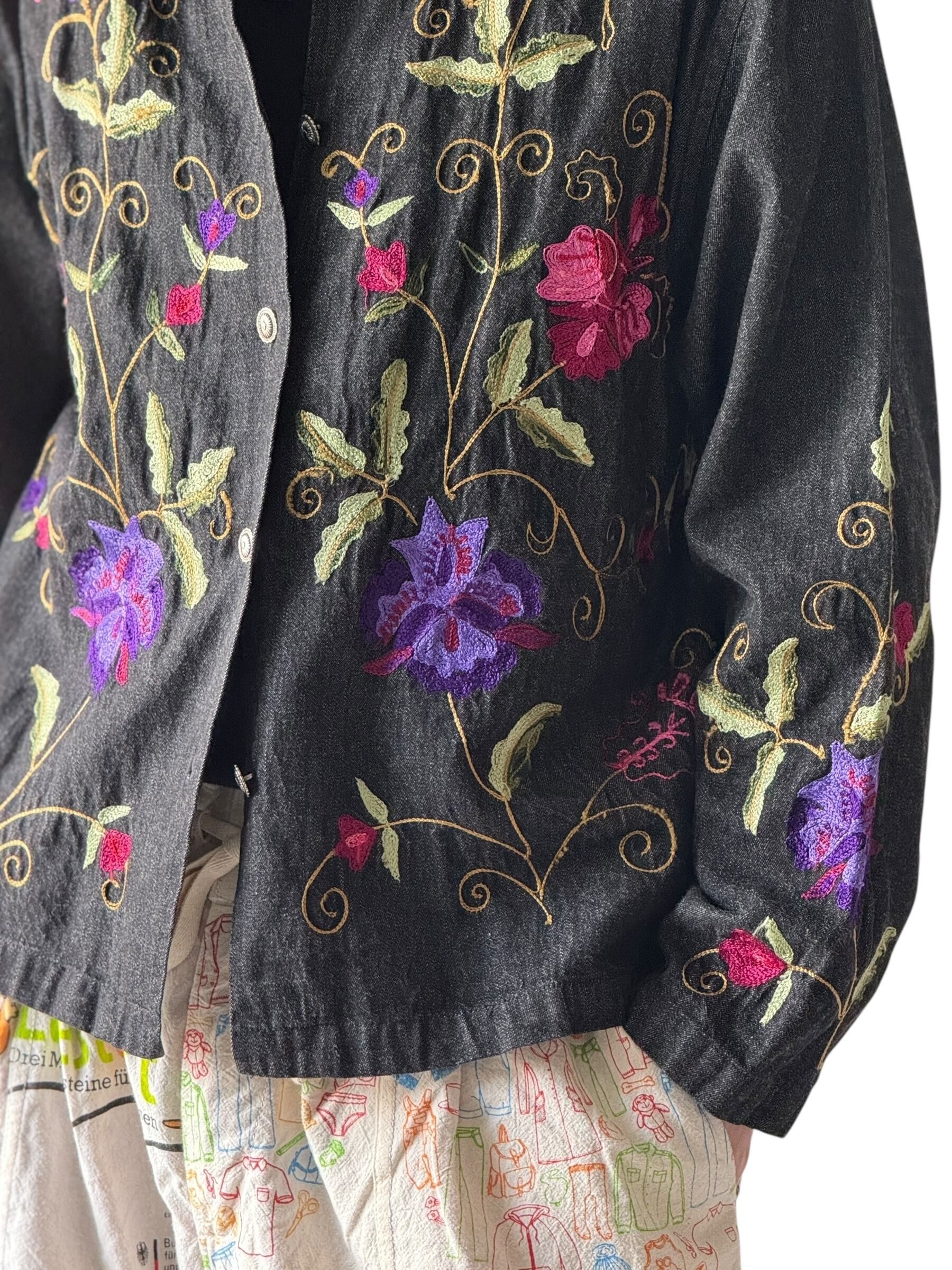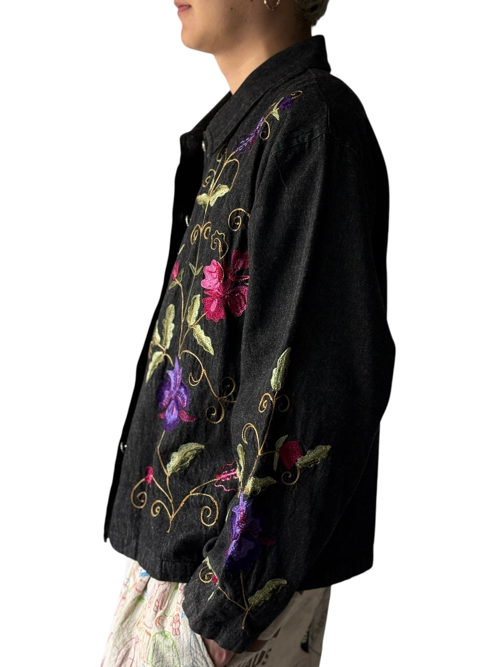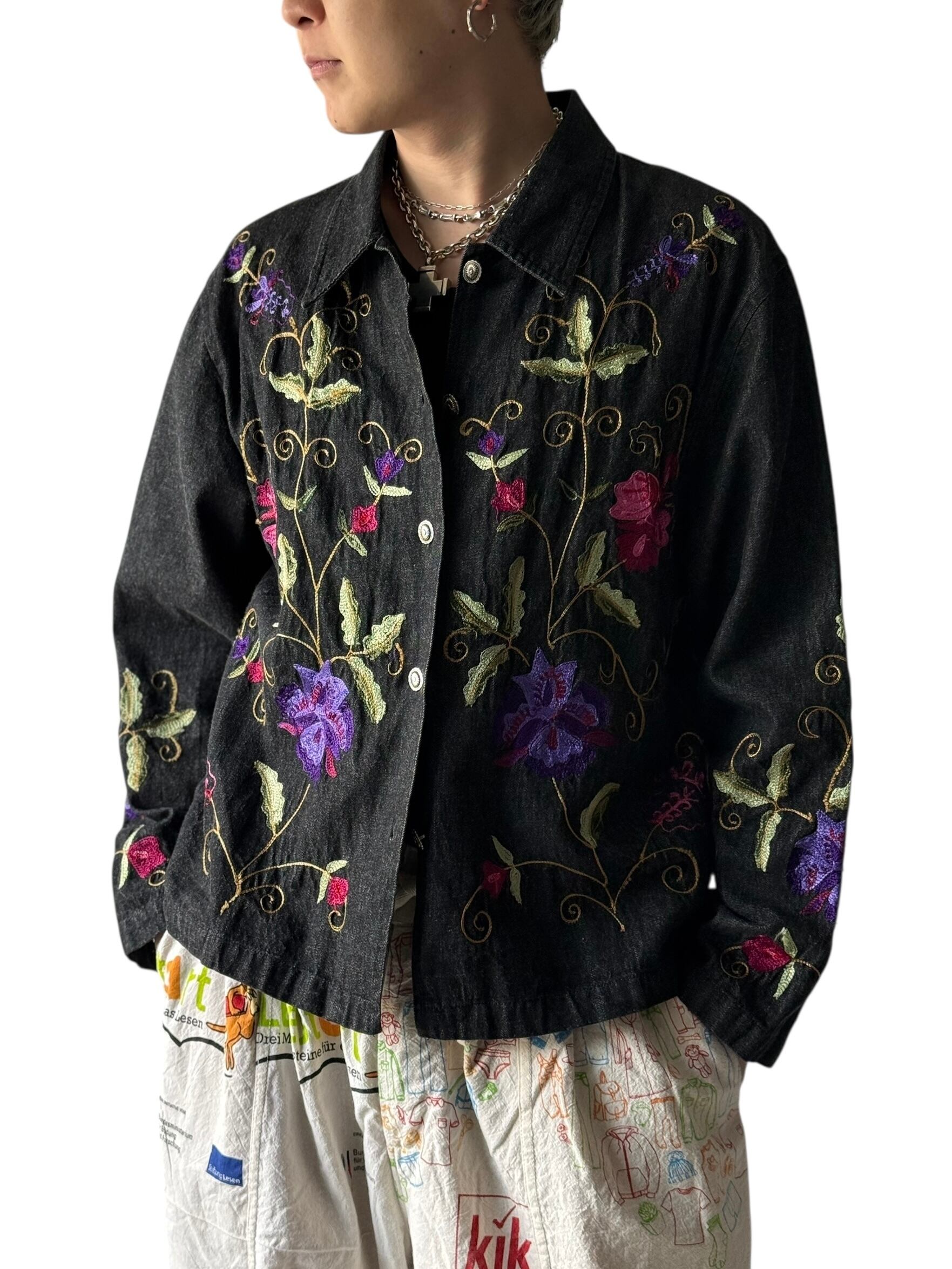 ブラックデニムにカラフルなお花の刺繍がめちゃくちゃクールなデニムジャケットの入荷‼️‼️
