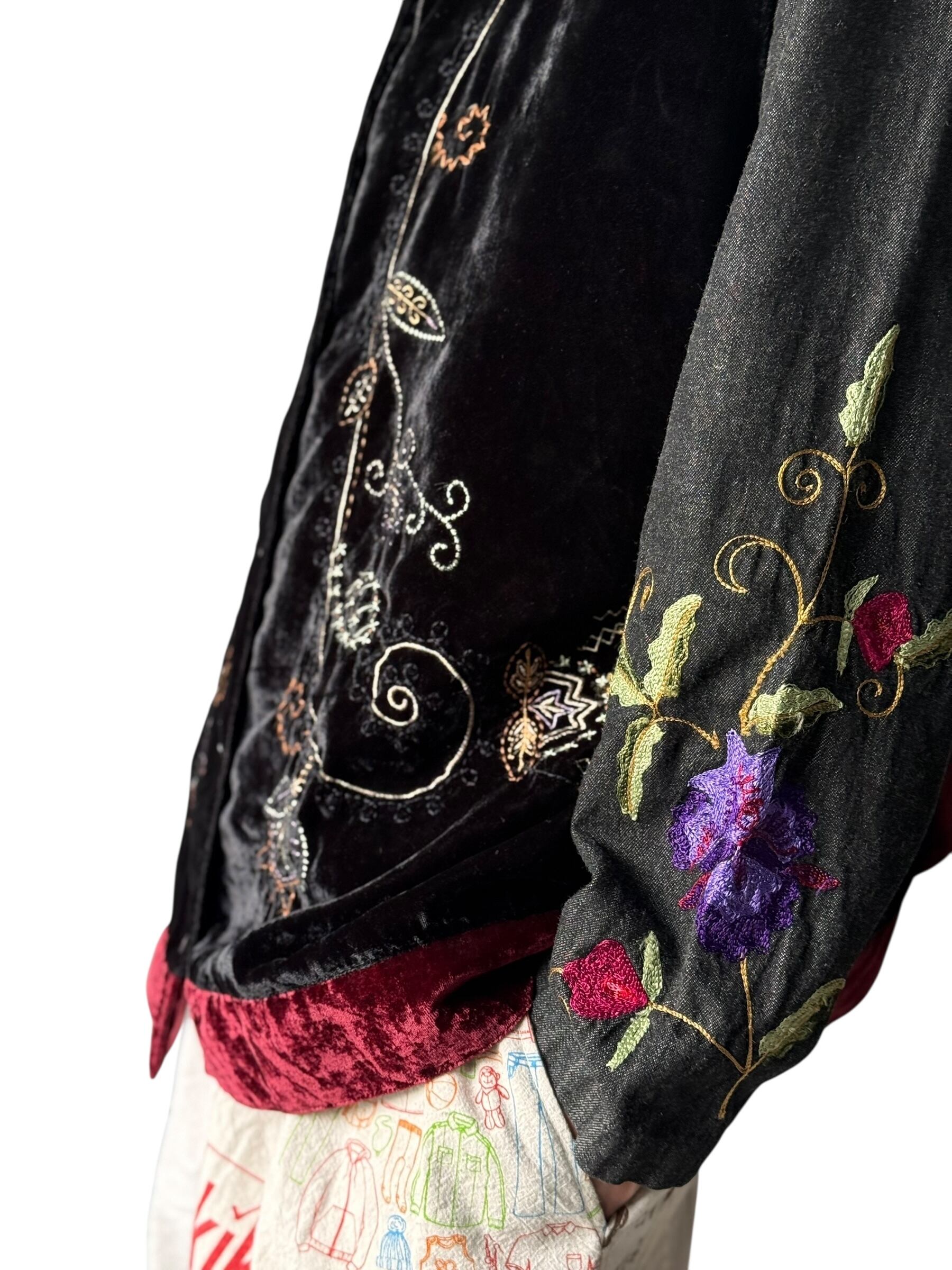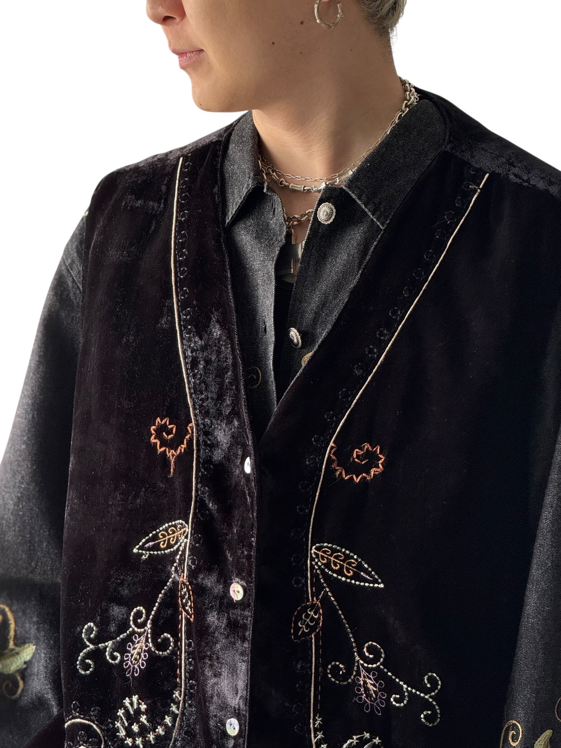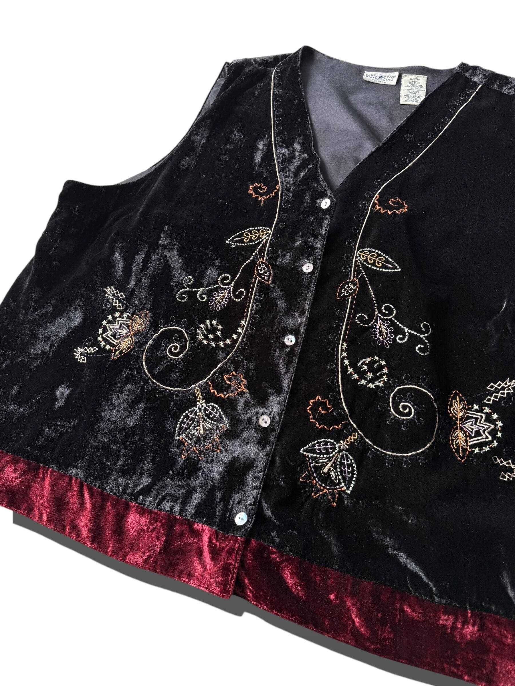 Floral embroidered velvet vest